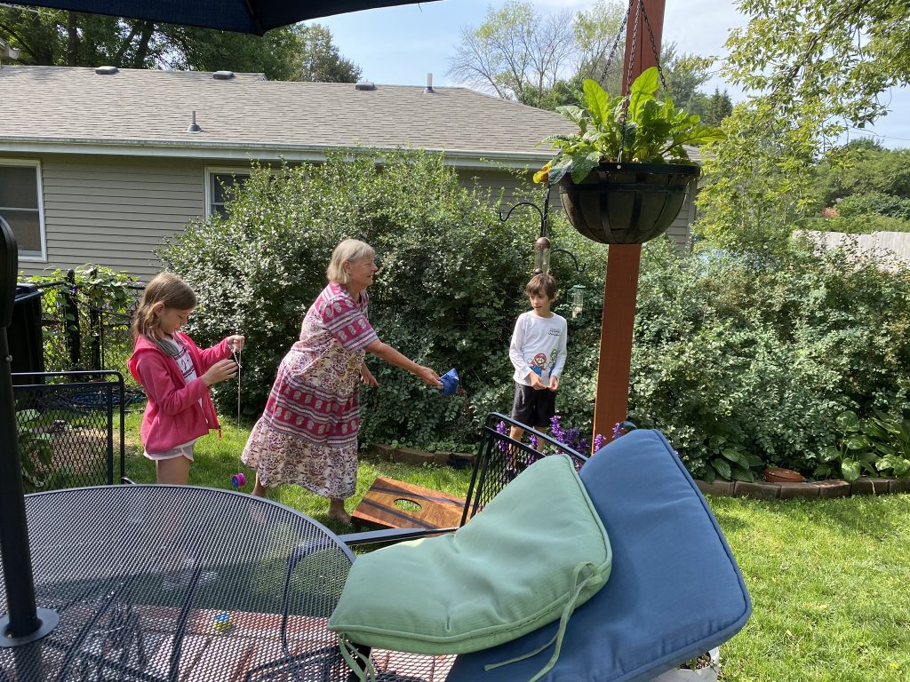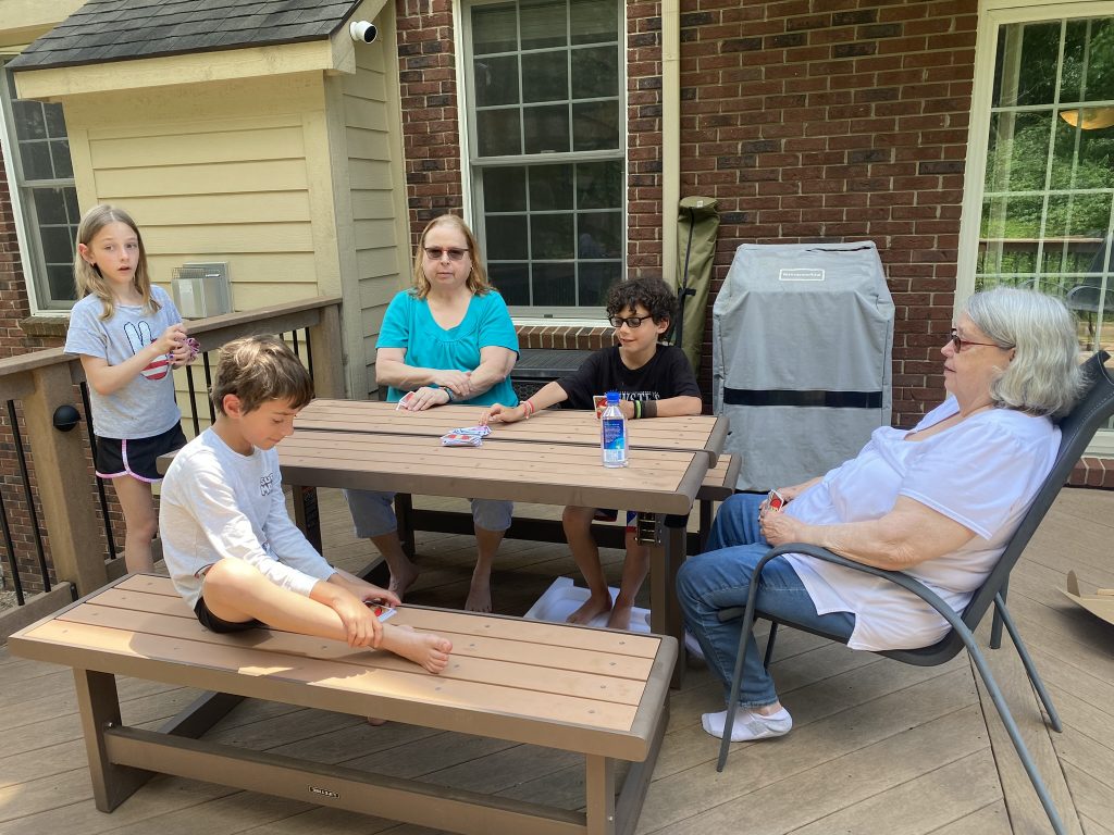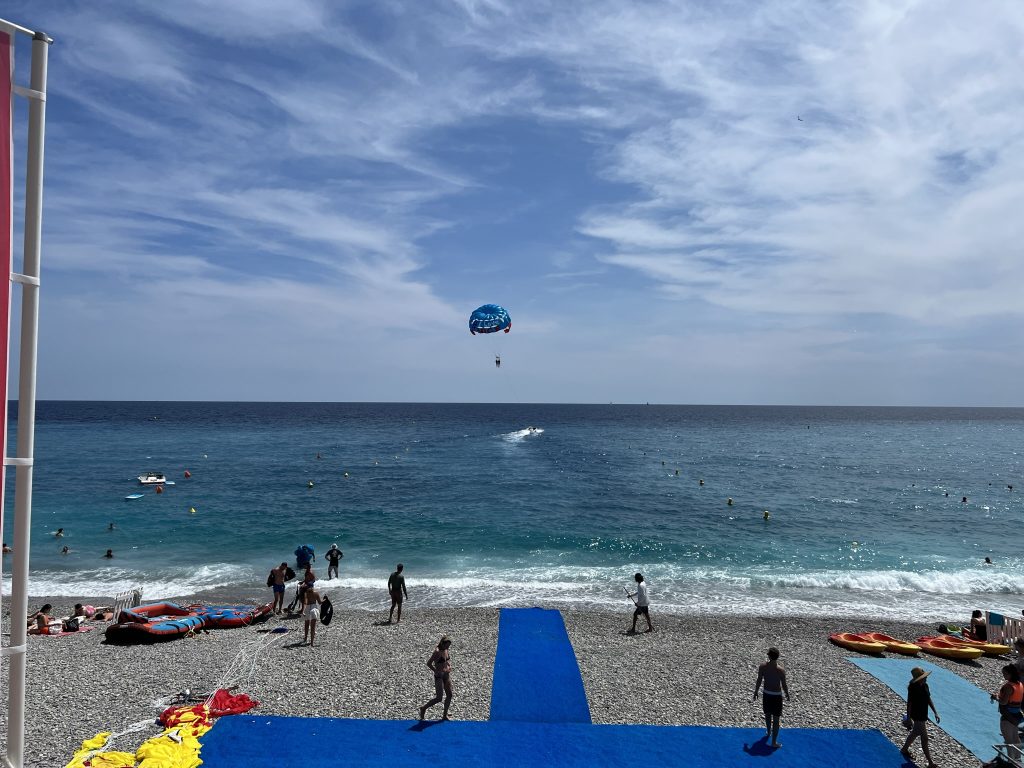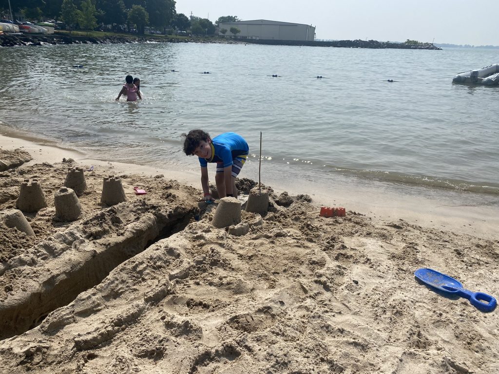 Back to the beach on Wednesday! Savta even made it down to the ocean… all that way. To help, she borrowed a sand wheelchair from the first aid cabana and had support from Auntie and Amaya on the way down, and Steven and Auntie on the way back.