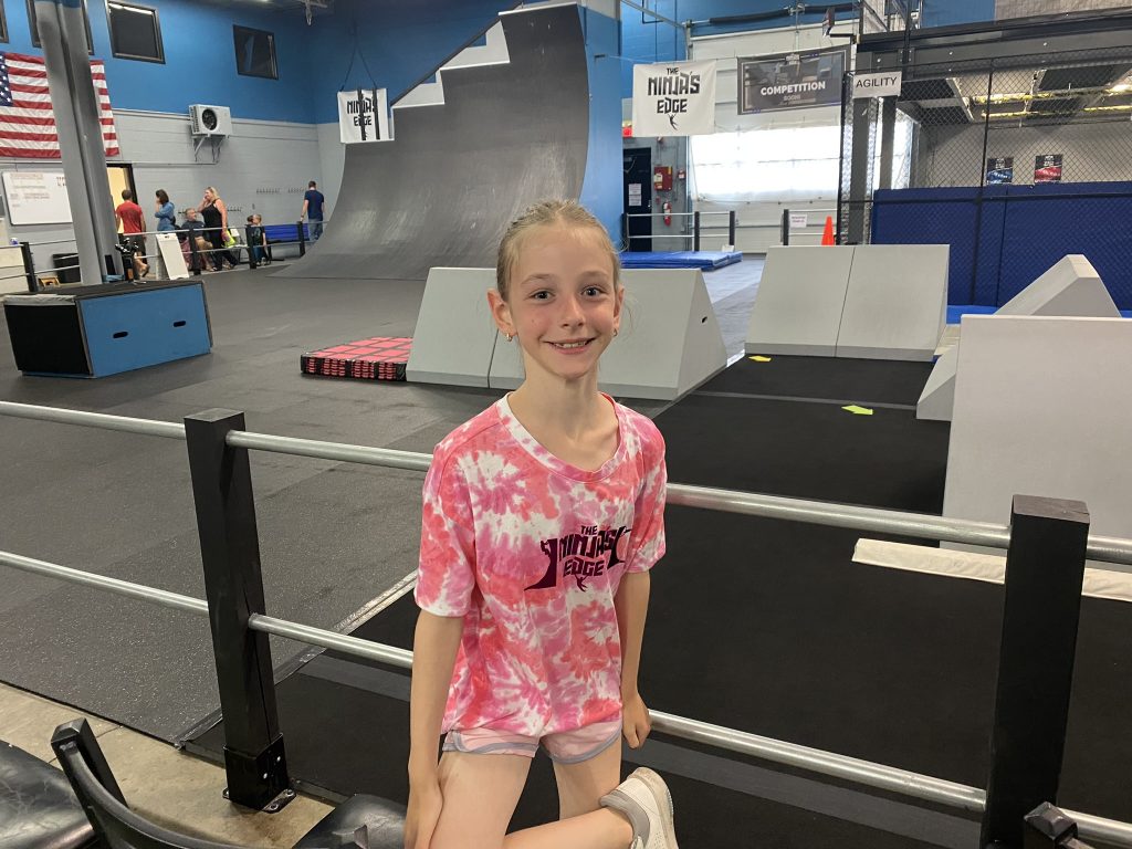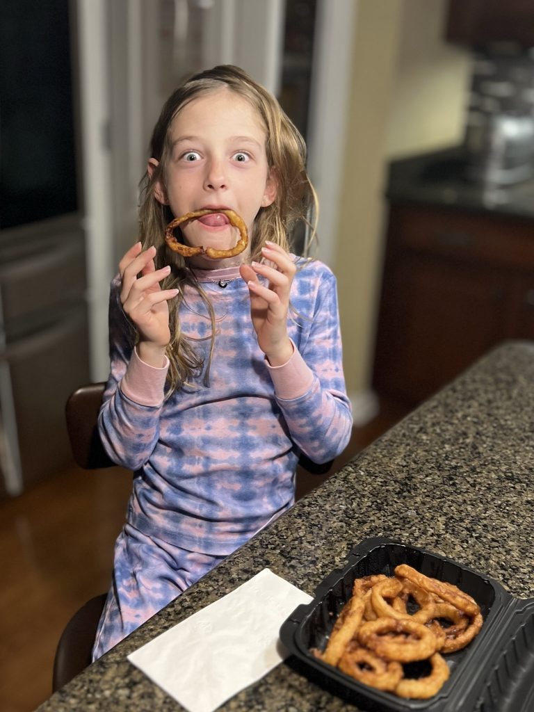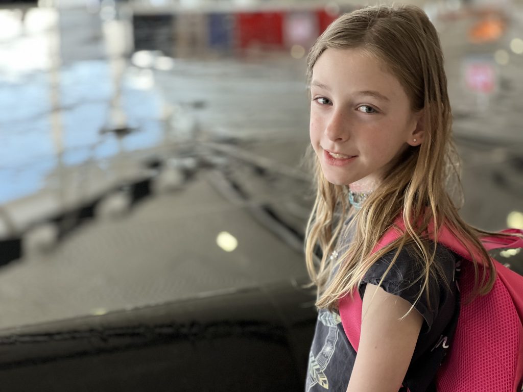 See that ride behind Amaya, middle right of the photo, that looks like it drops straight down? It does, and she rode it.