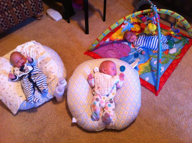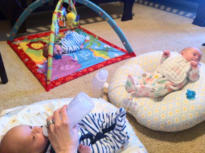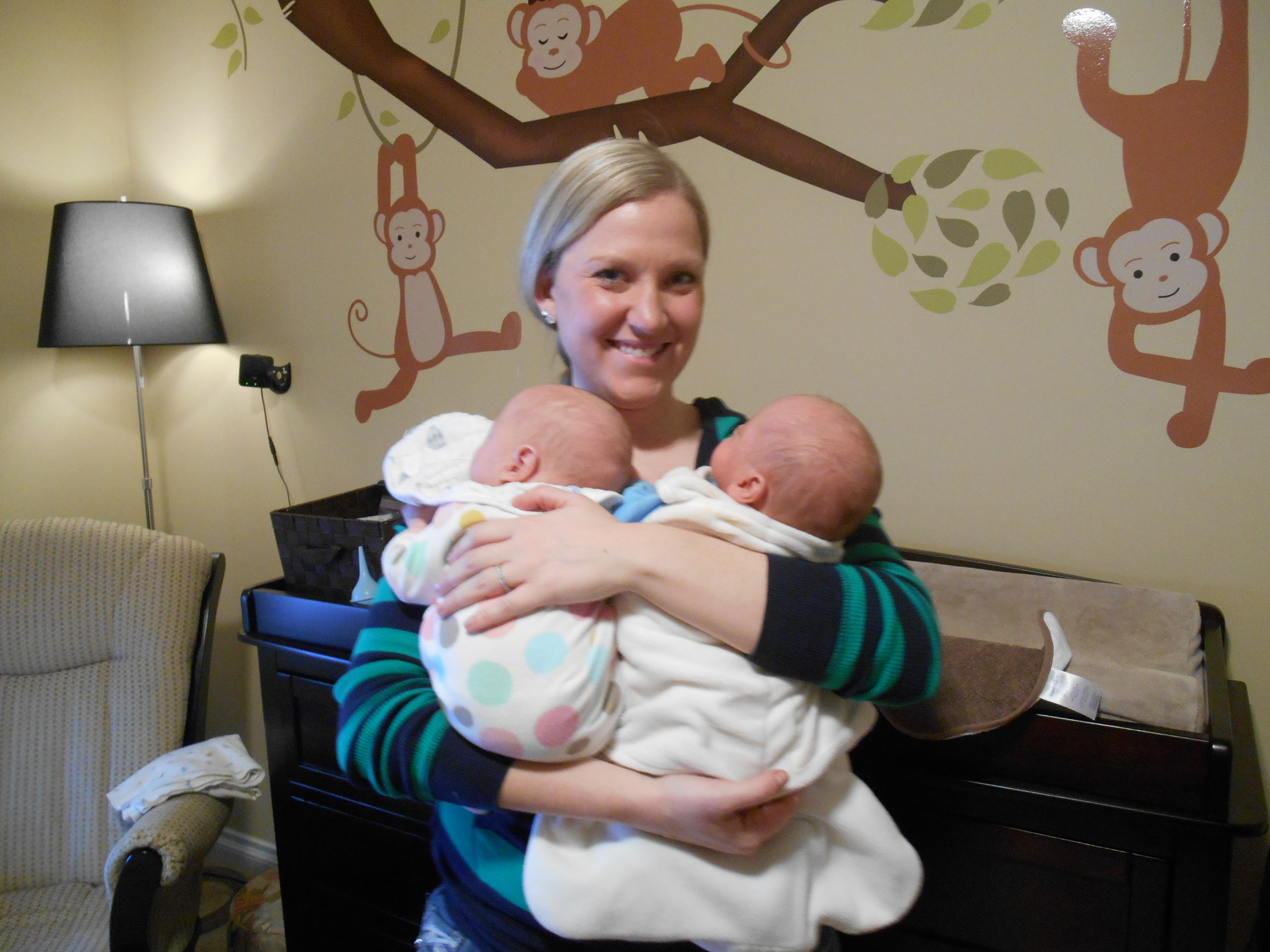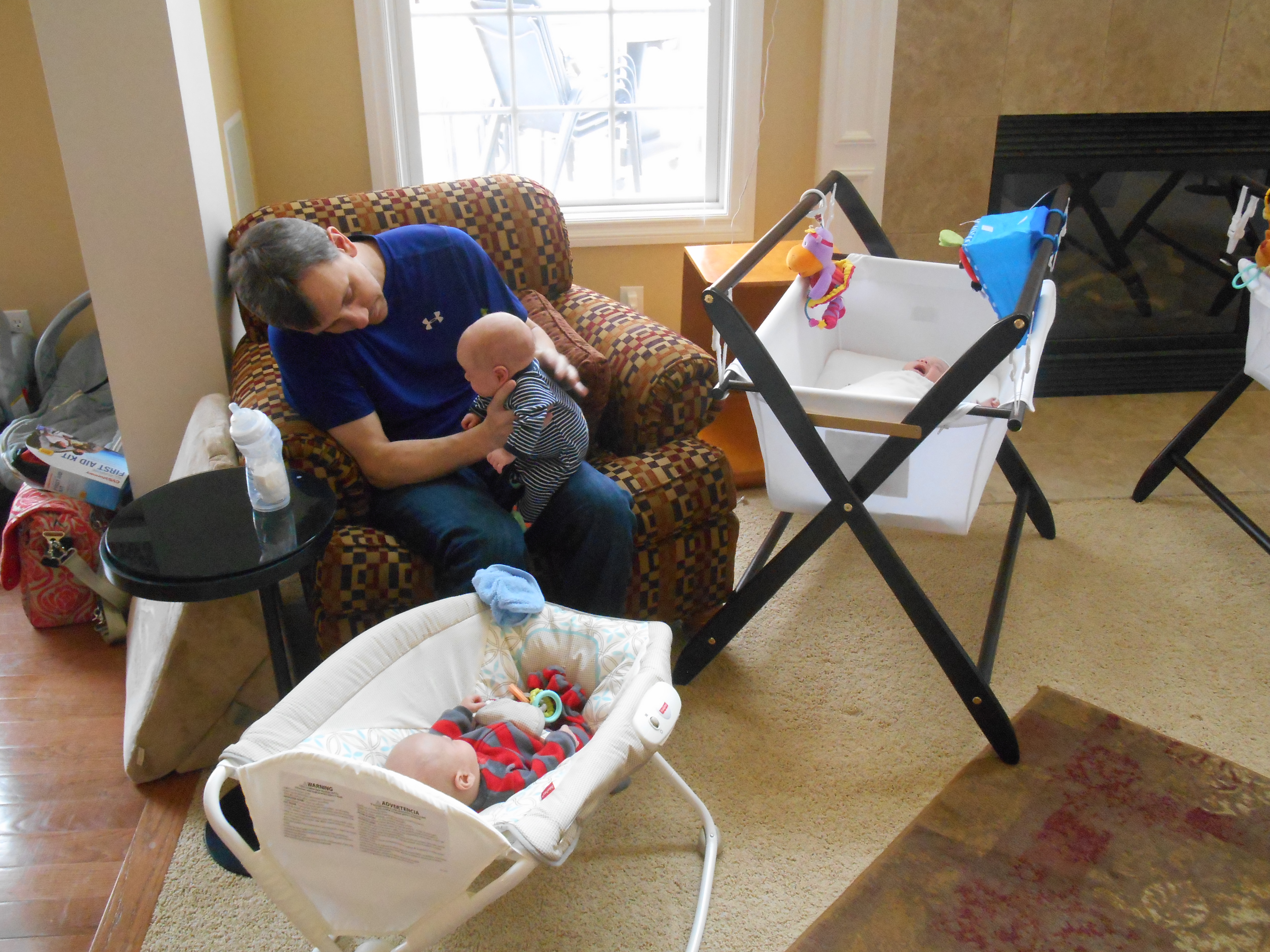 It’s been a busy week and a half, and a tiring one. Last Saturday (not the one that just passed, the one before), our night nanny let us know that she had some sort of stomach virus. Sad, sad, SAD. She works Sunday night through Thursday night and my hope that it was food poisoning was dashed when she was still sick on Sunday. I pulled an all-nighter on Sunday night and was prepared to do the same on Monday night when my mother-in-law swooped in from Lansing and came to the rescue. (Again, saved by family!) For the next four nights, I went to bed from 8:45pm – 11:45pm and then took the midnight- 4am shift with the babies. Sherry relieved me every night at 4am. I love you, Sherry! (And not just because you swooped in to rescue us!)