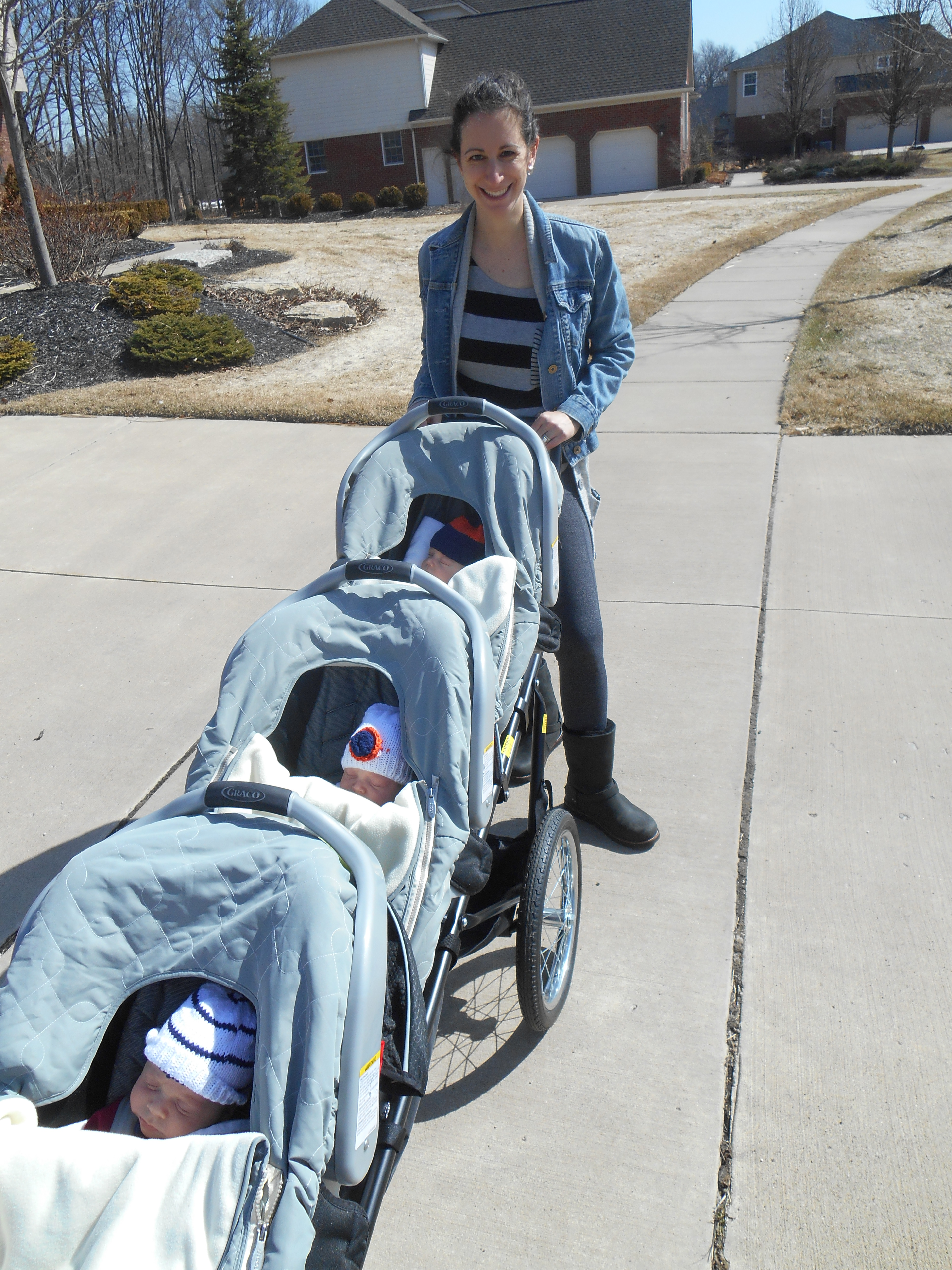 We went out for our first walk today! It was so nice to get outside with the babies for something other than a doctor appointment. The Triple Decker stroller is cumbersome, the front wheel doesn’t rotate and we have issues with the alignment but, other than that, it’s smooth sailing! 😉
