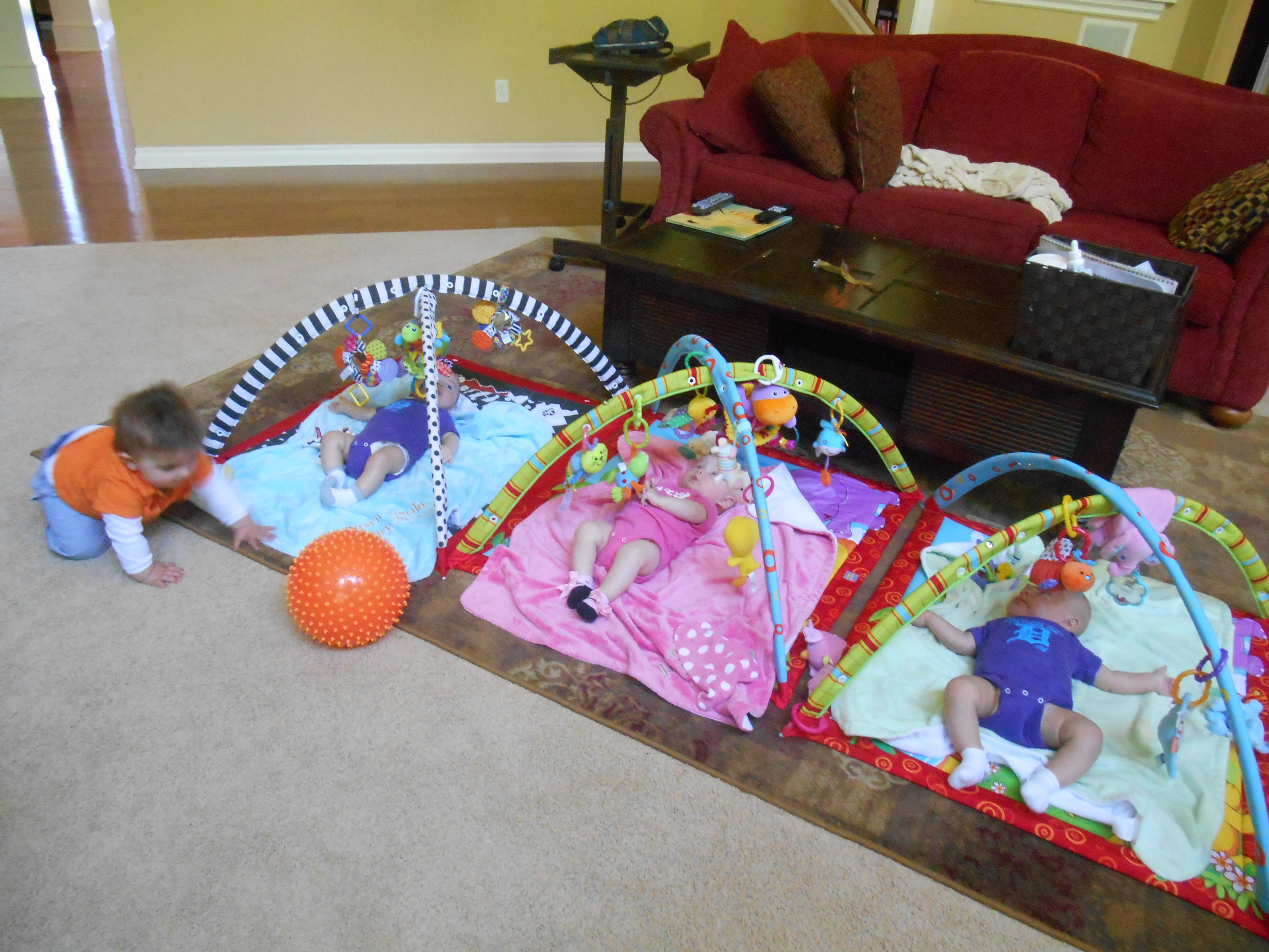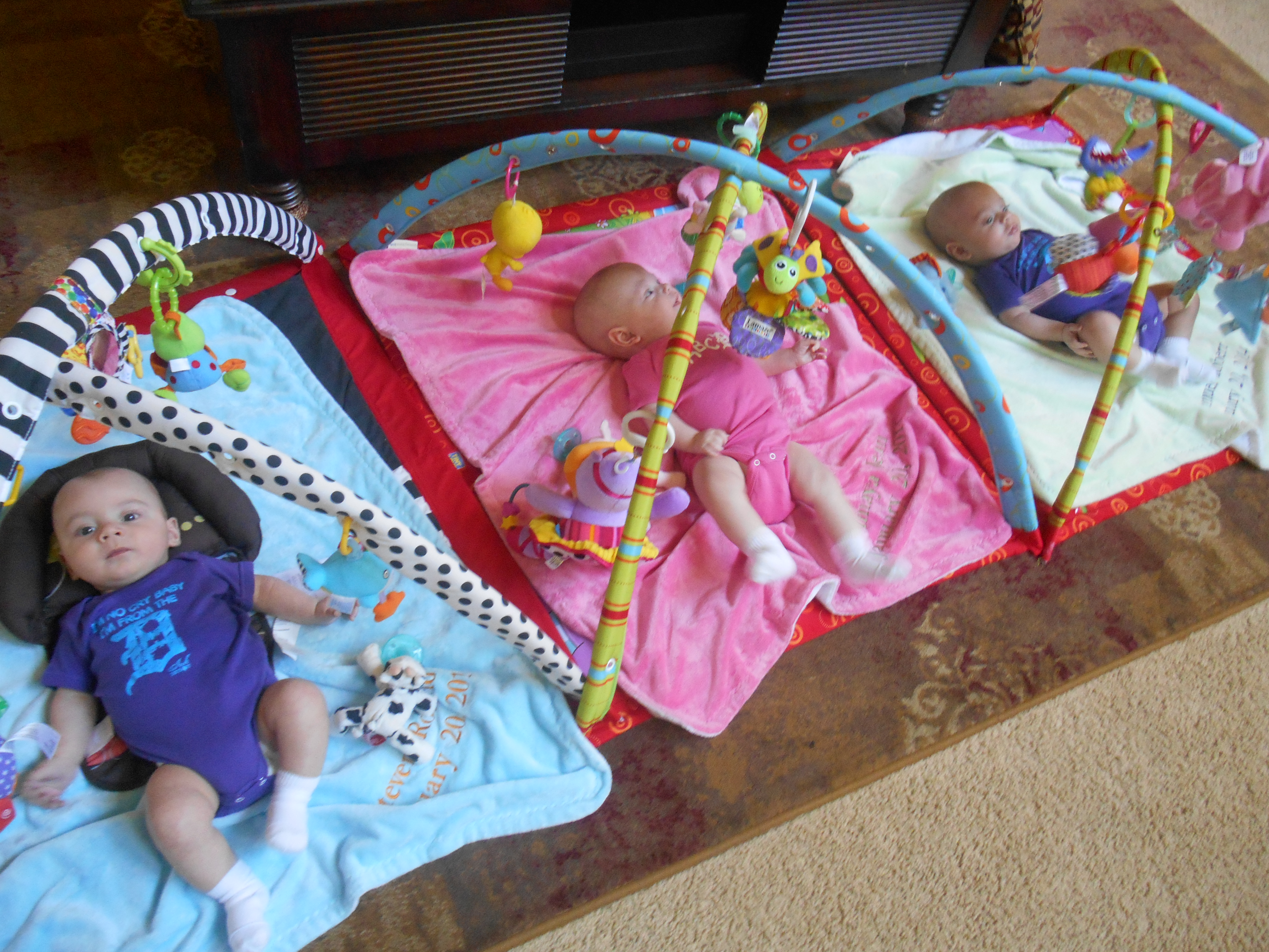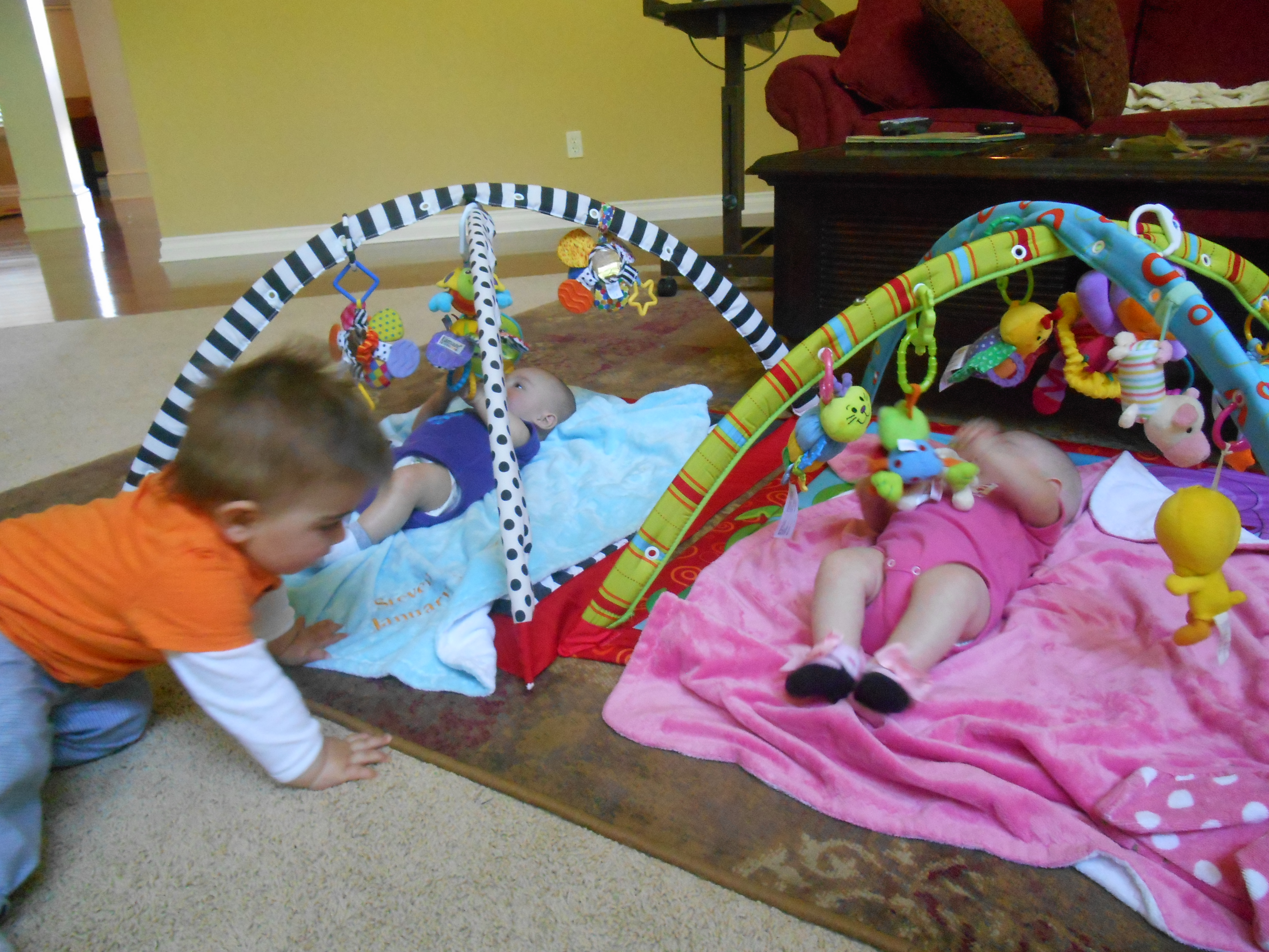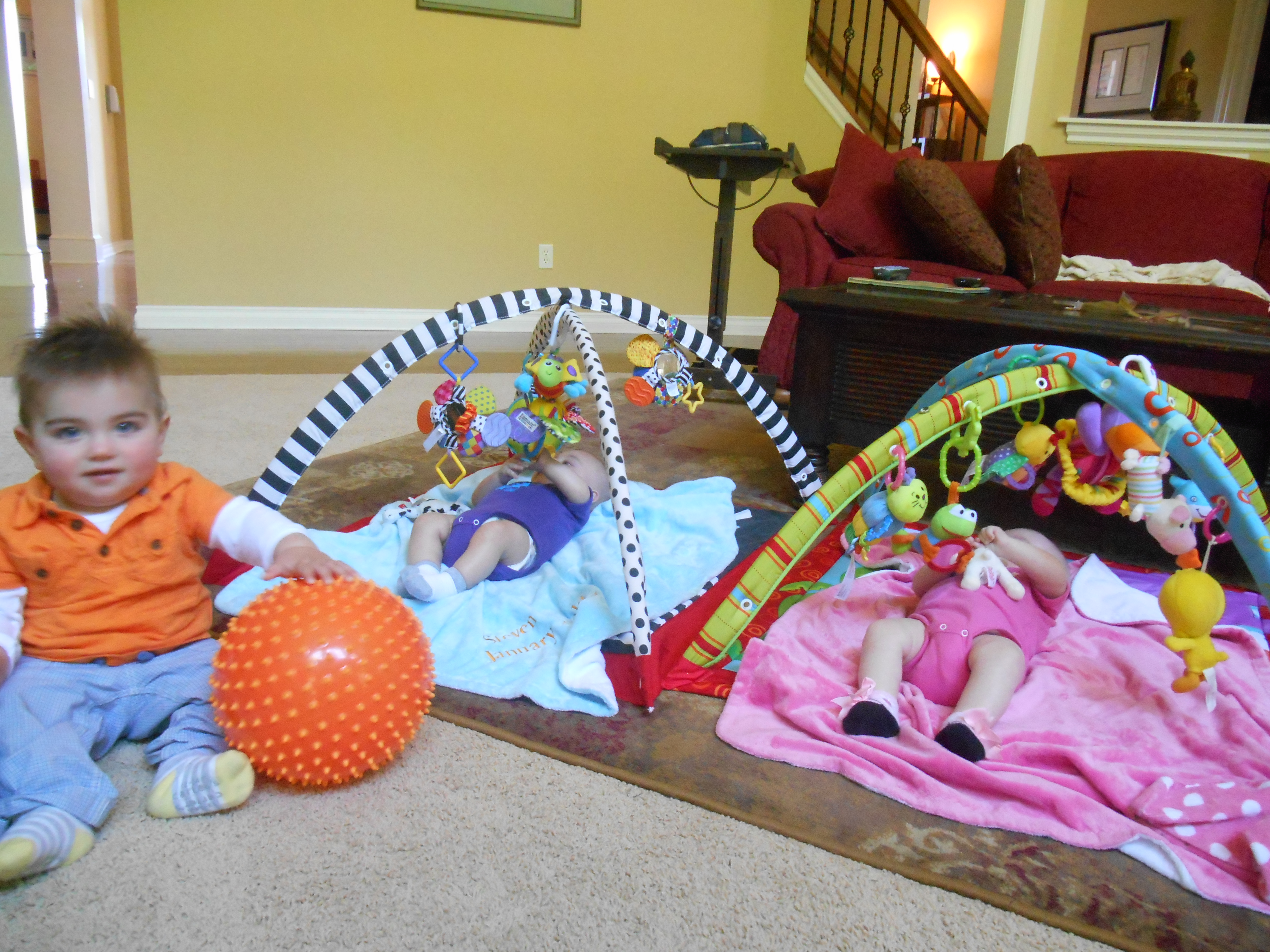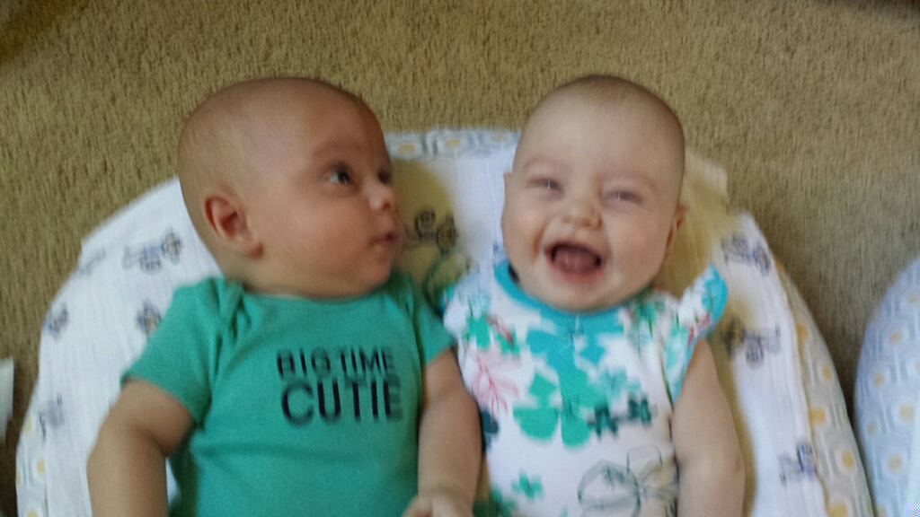 Gene got this photo of us during tummy time. Jason and I are cheering the babies on as they work that upper body strength and head control!