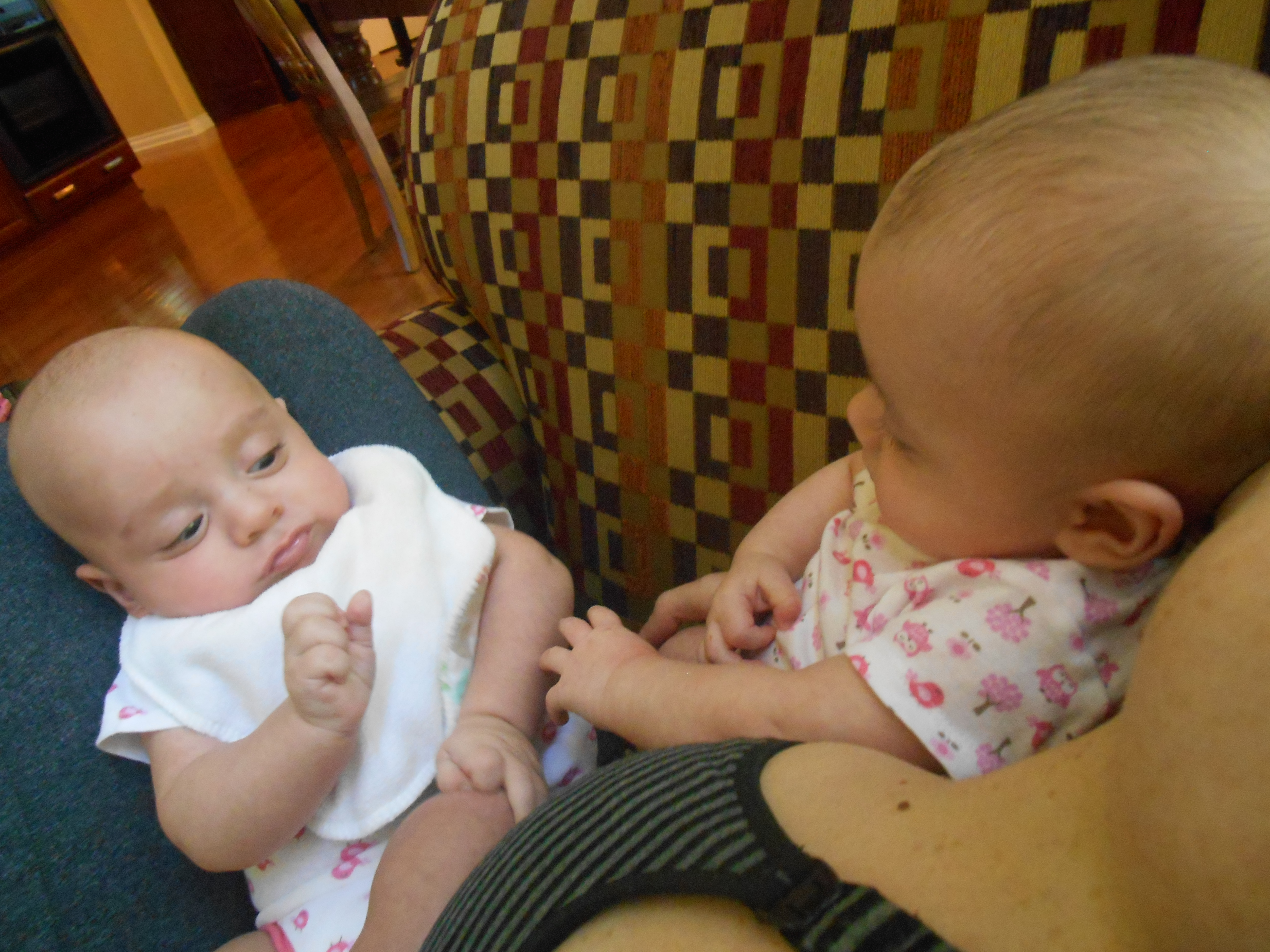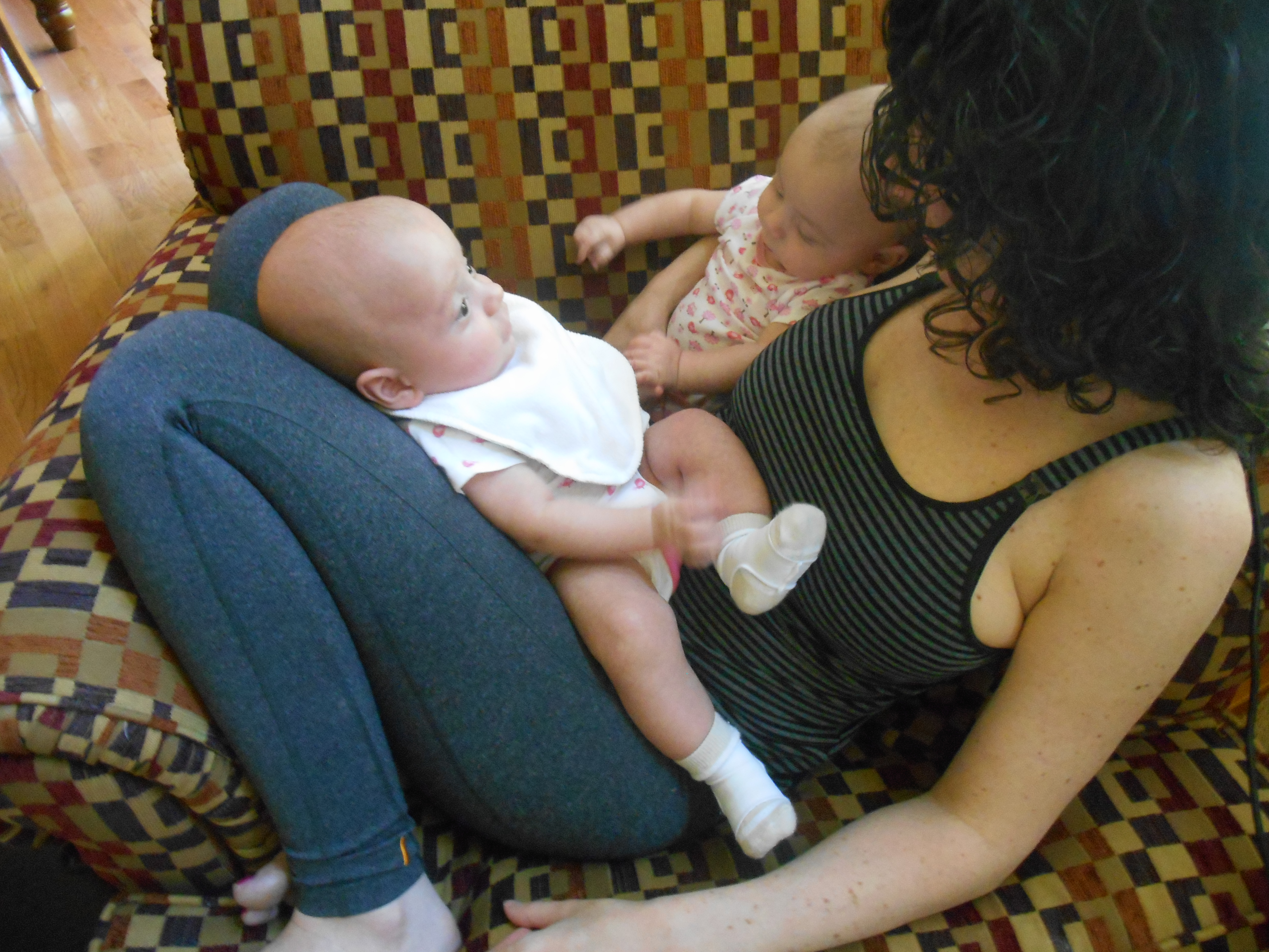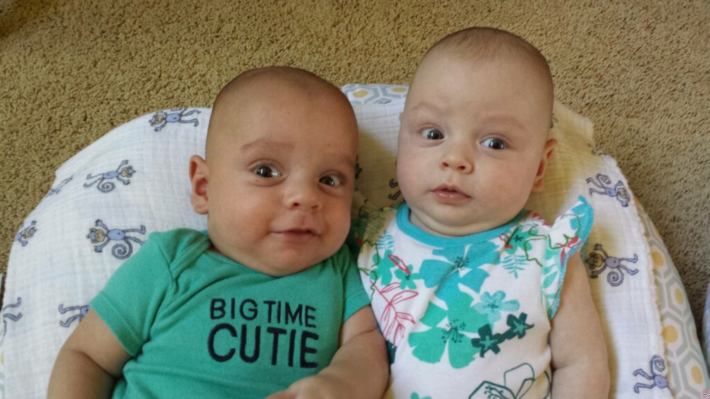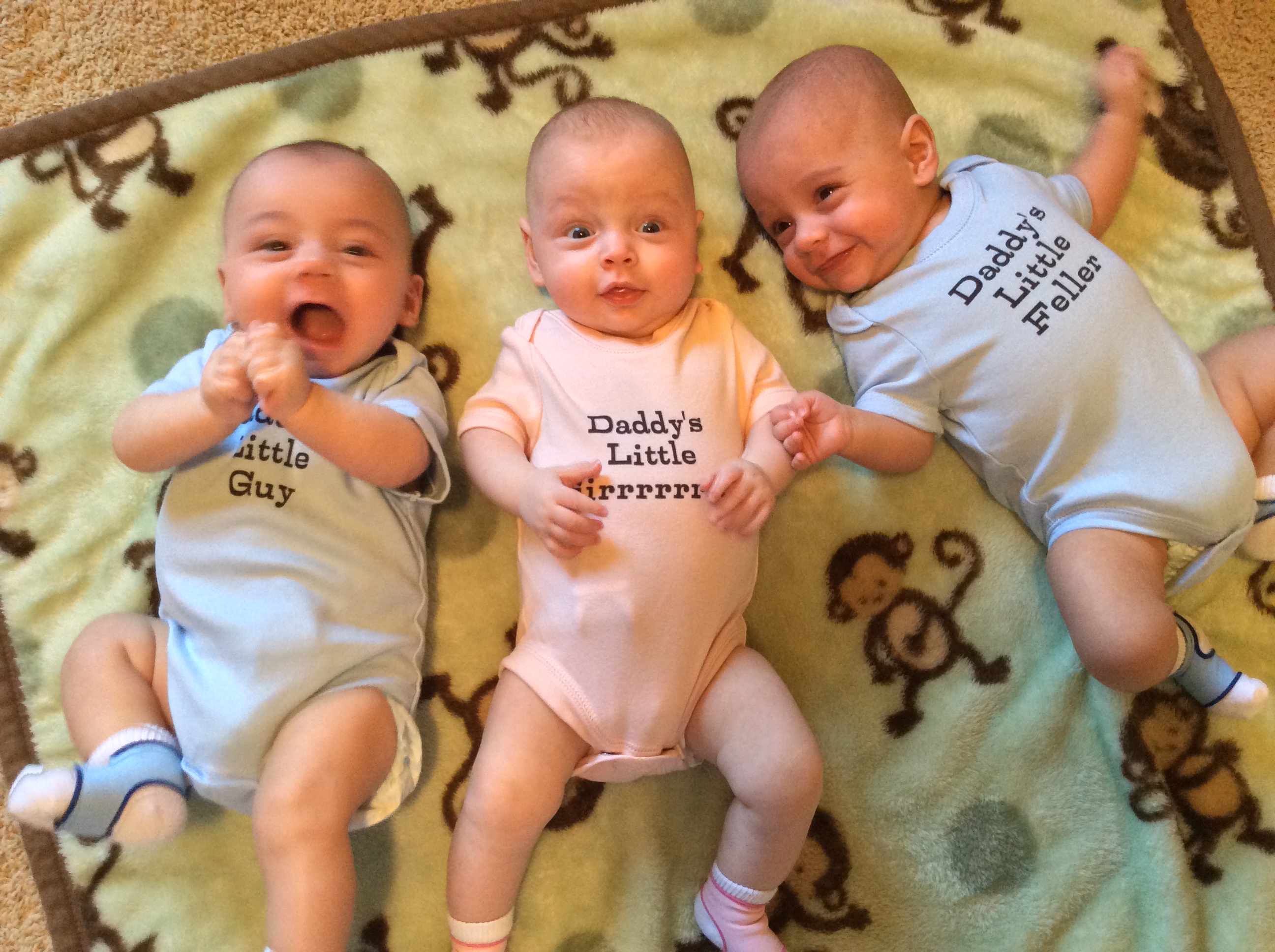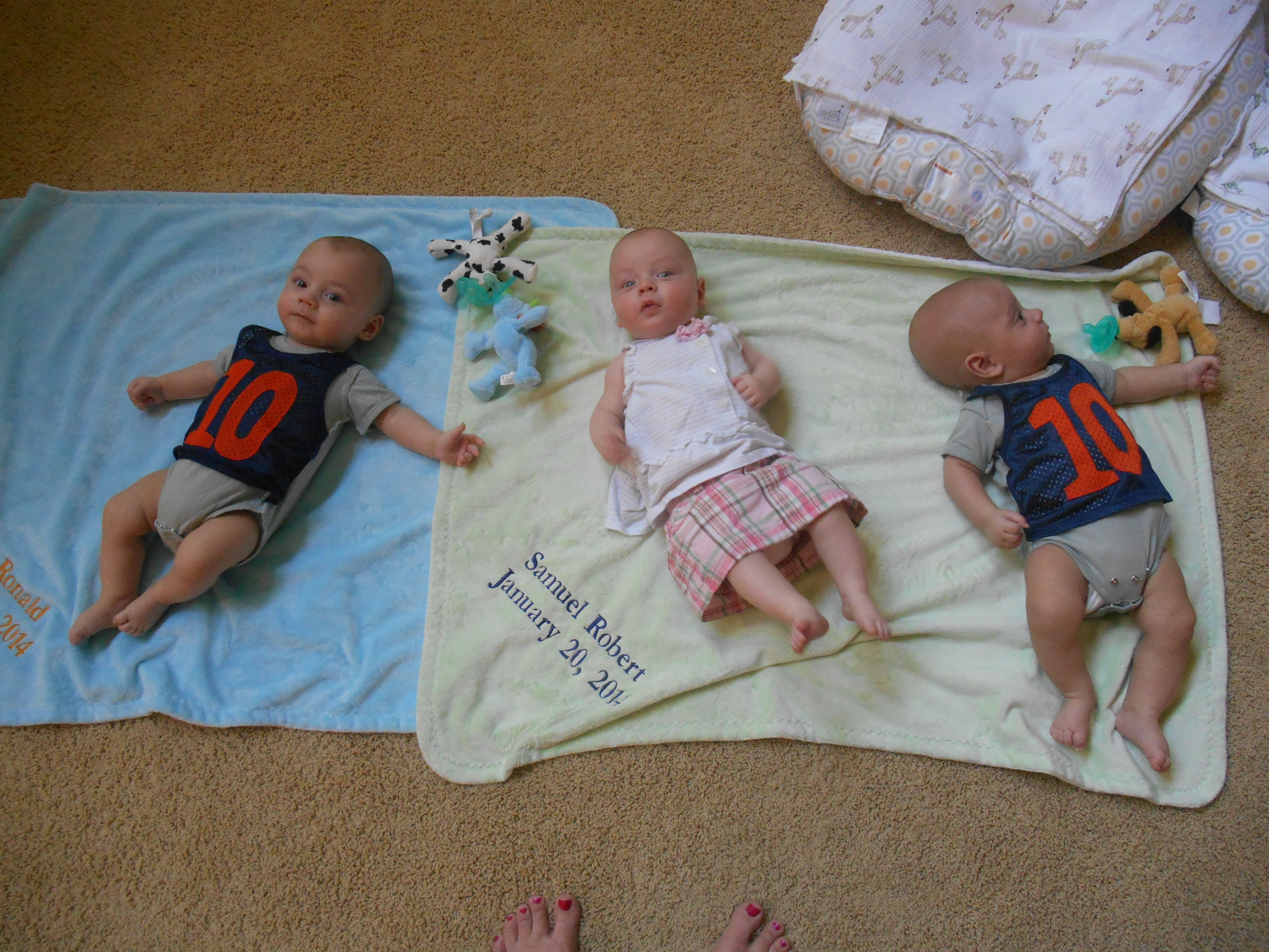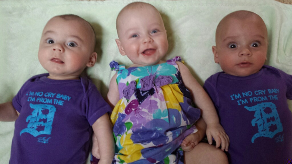 Gene got this photo of us during tummy time. Jason and I are cheering the babies on as they work that upper body strength and head control!