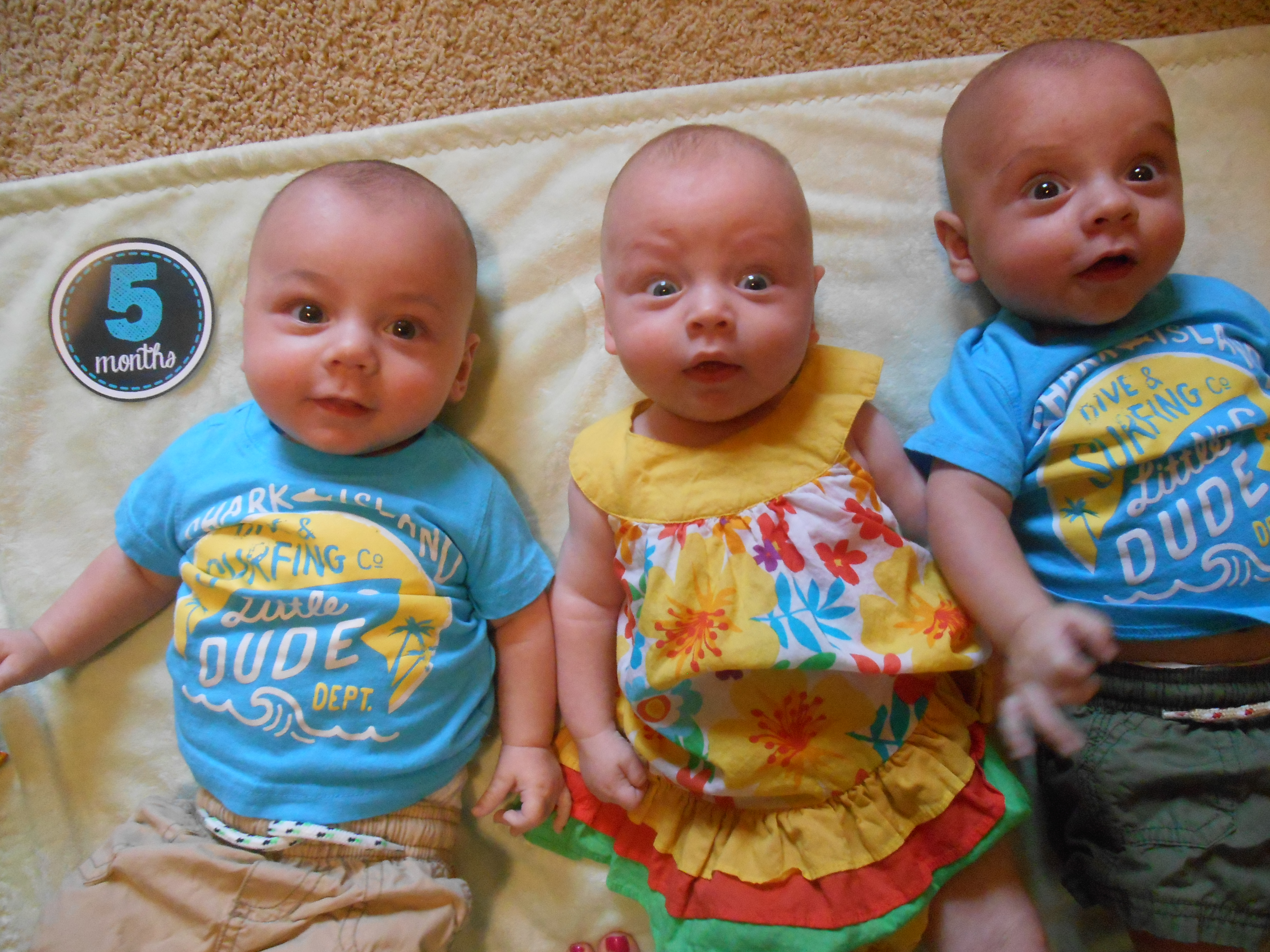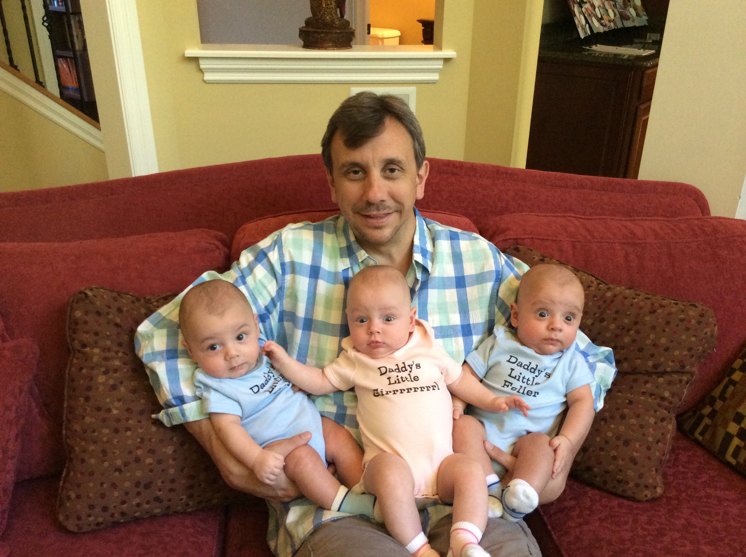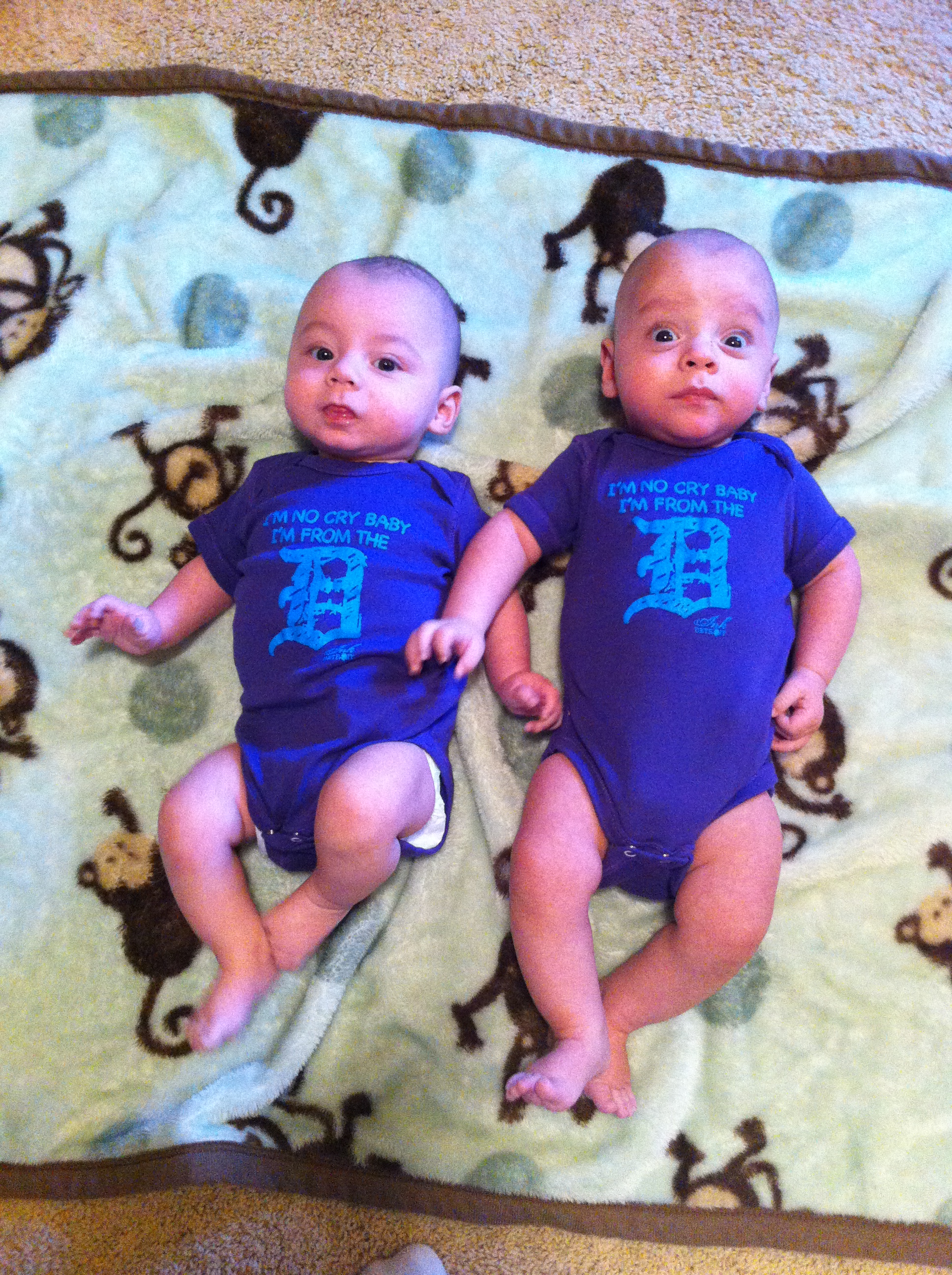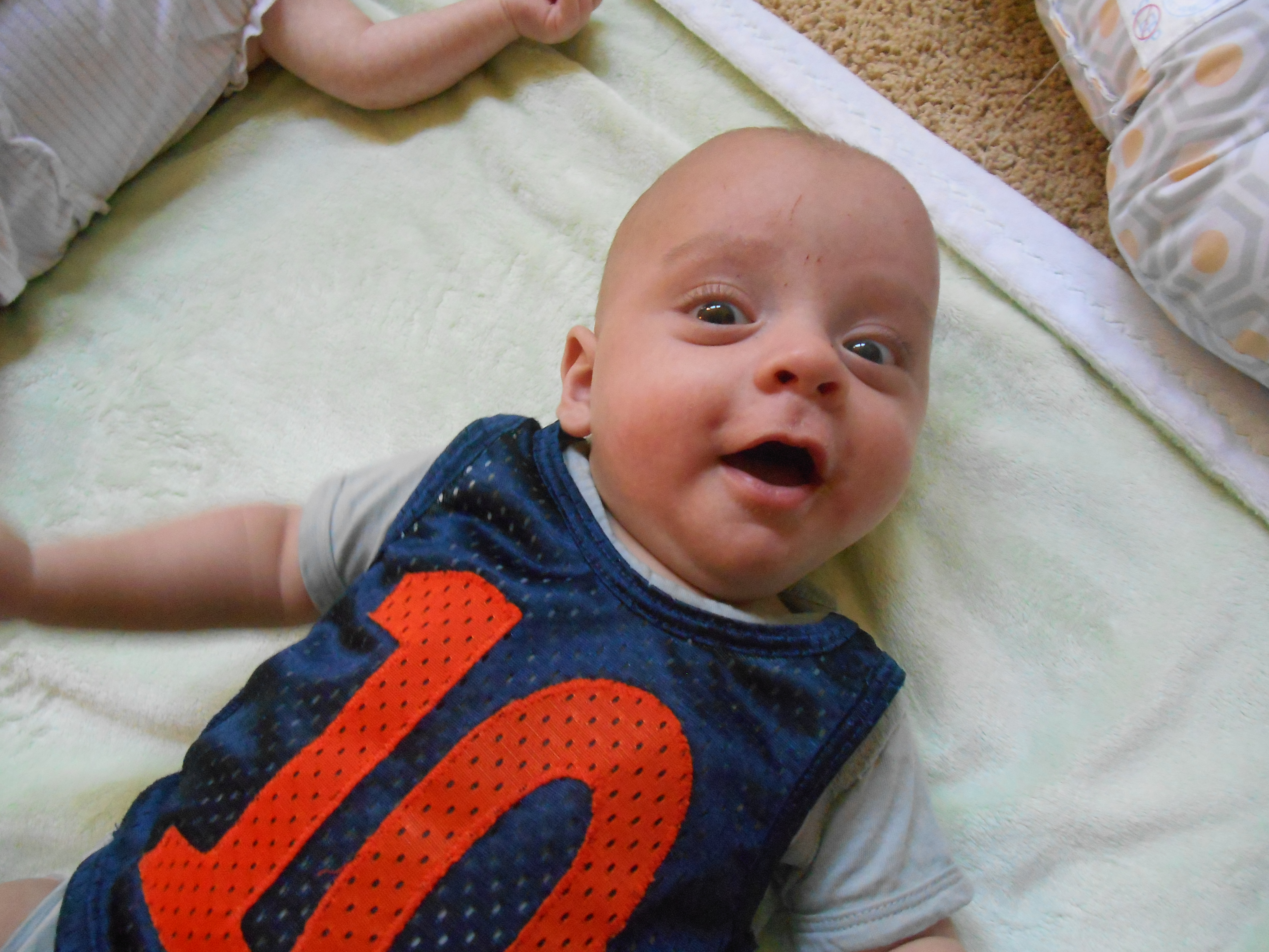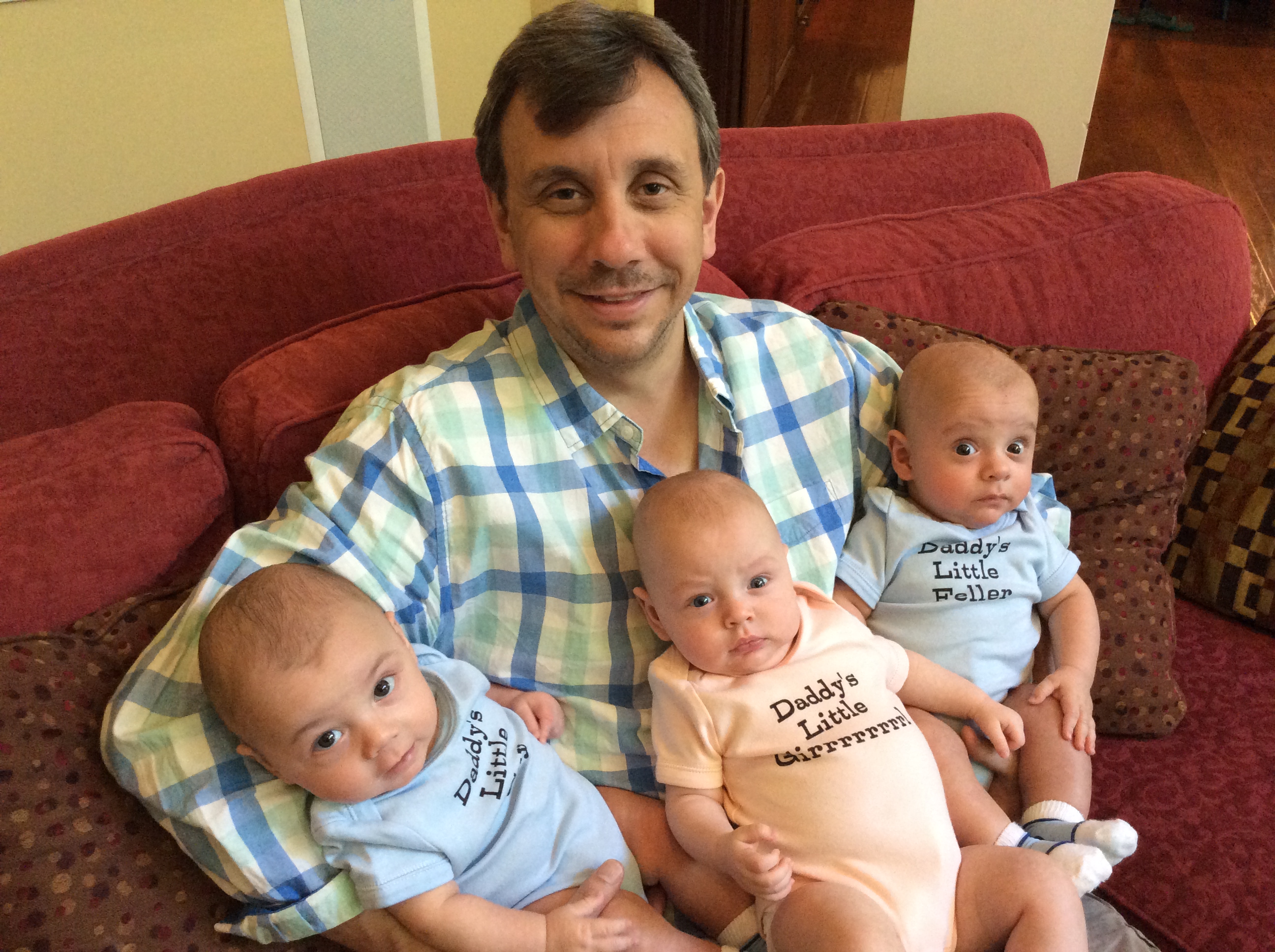 Gene got this photo of us during tummy time. Jason and I are cheering the babies on as they work that upper body strength and head control!