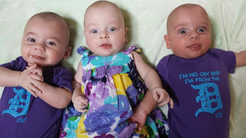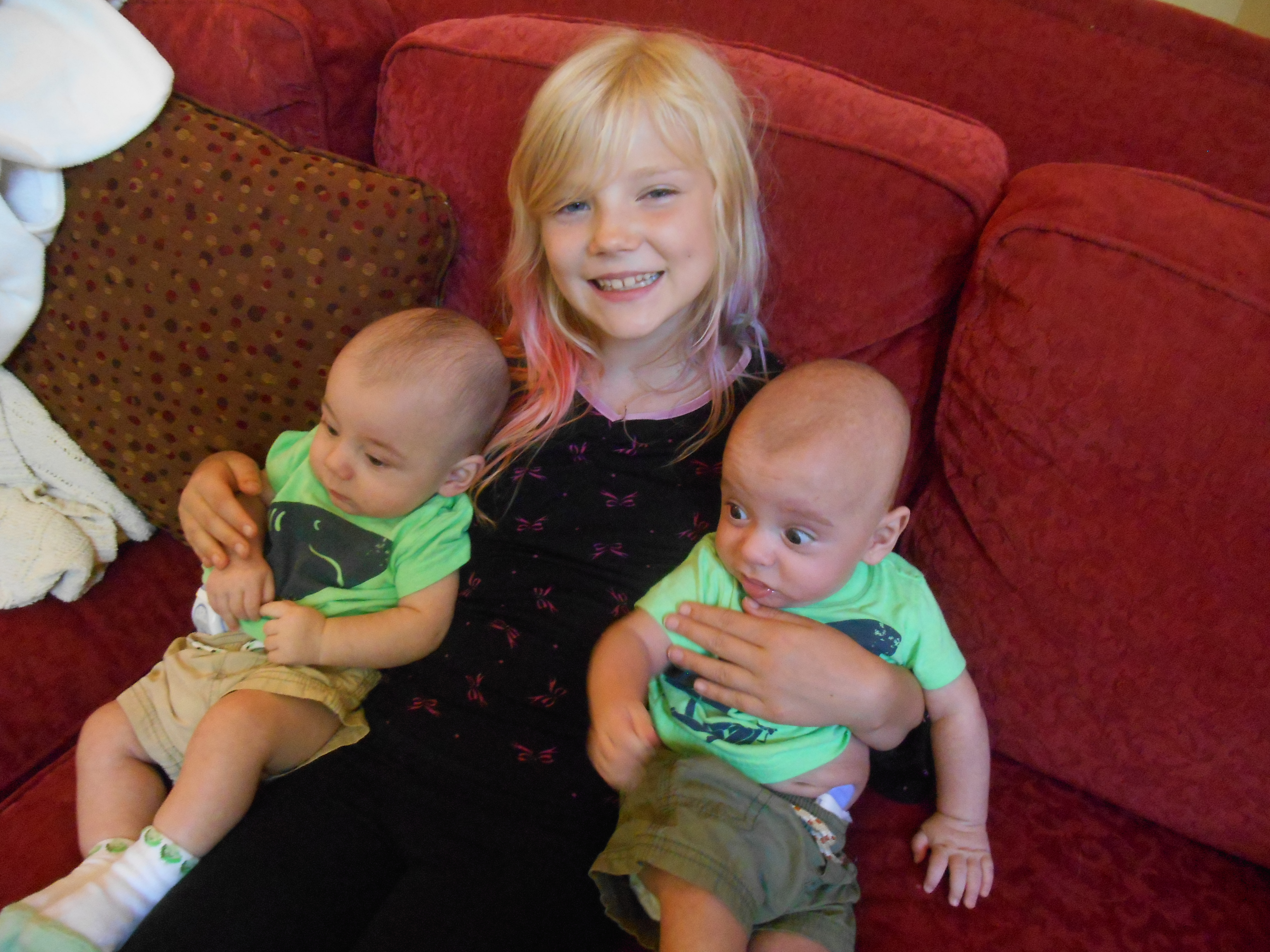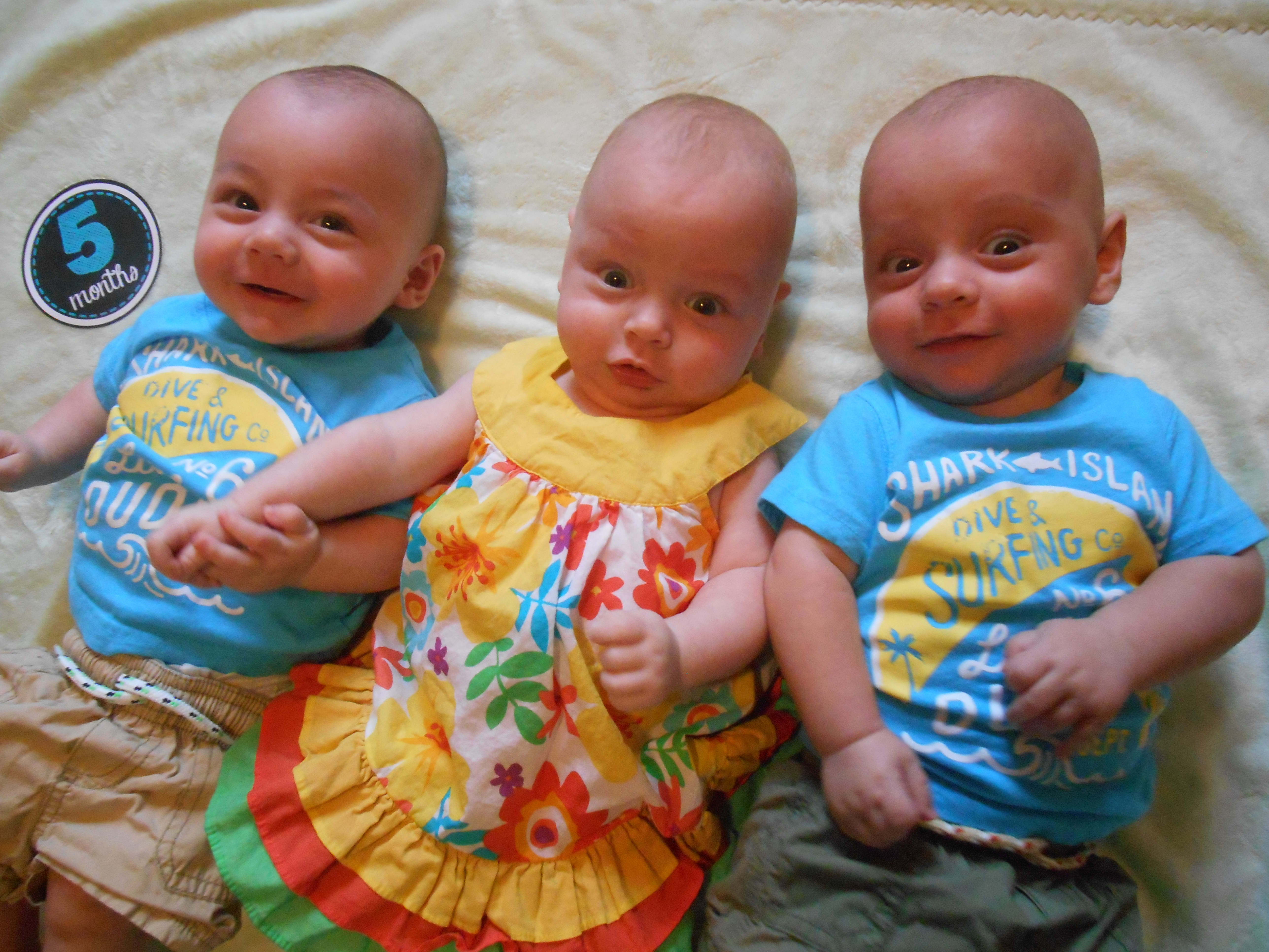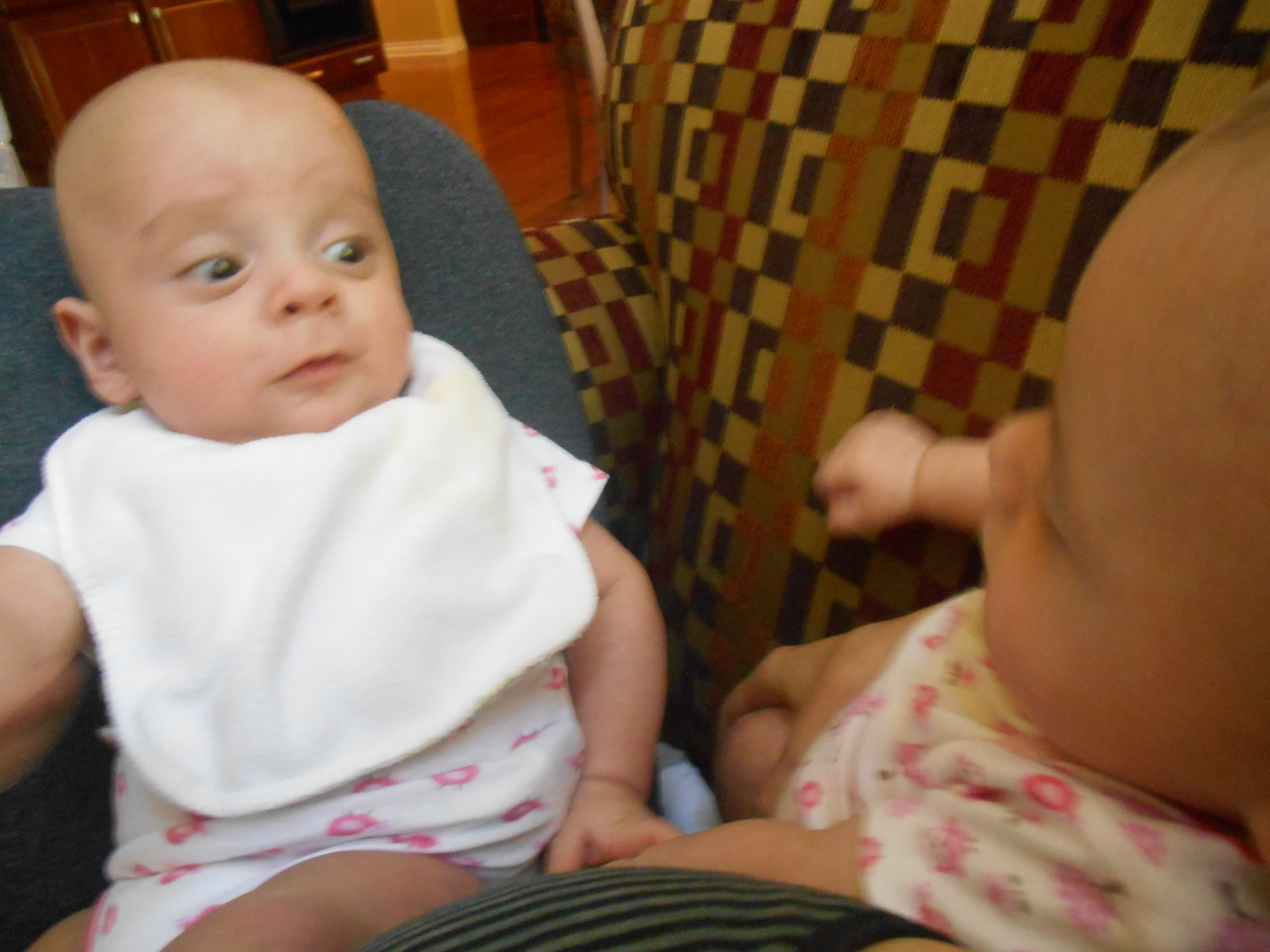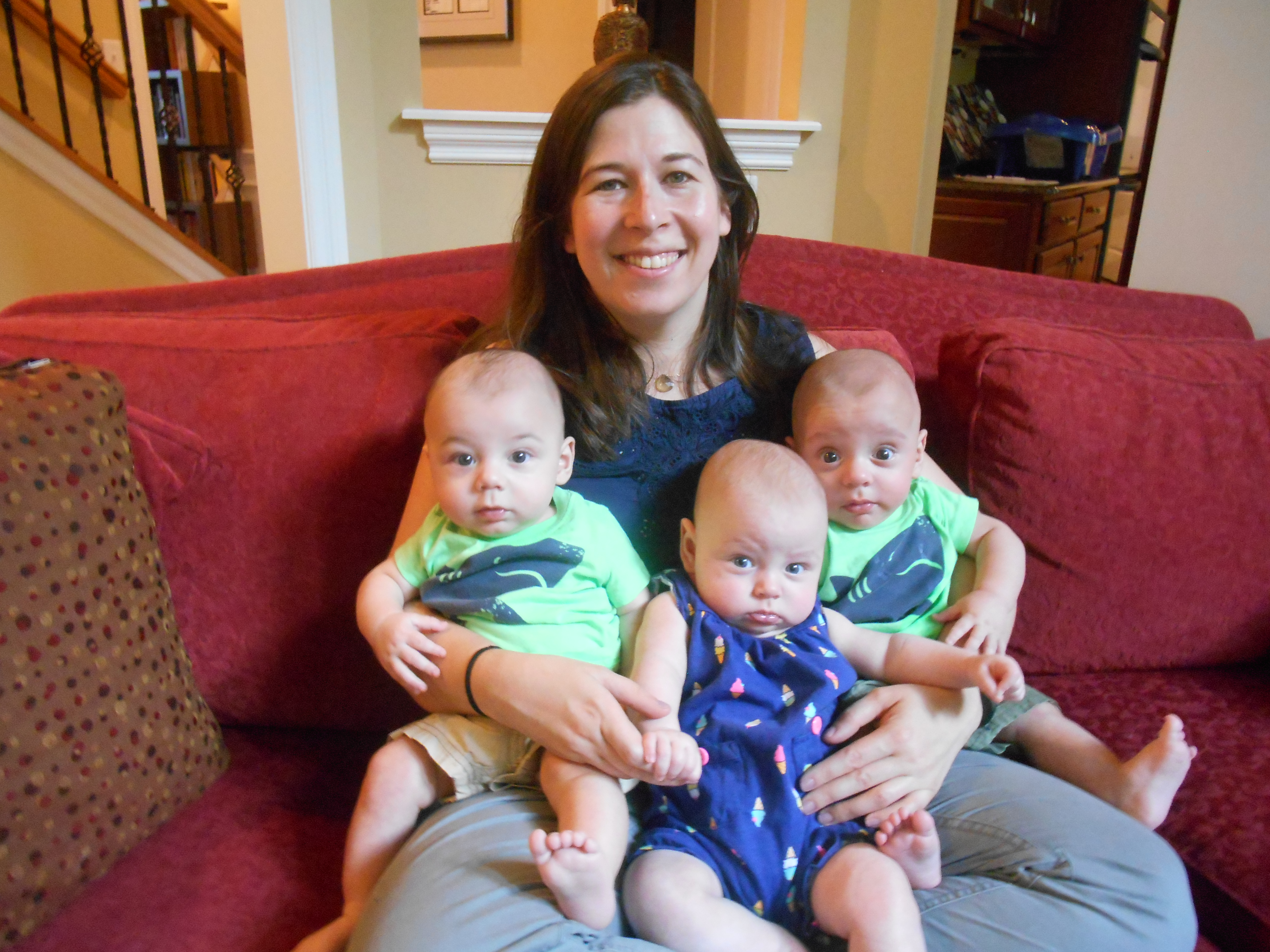 Gene got this photo of us during tummy time. Jason and I are cheering the babies on as they work that upper body strength and head control!