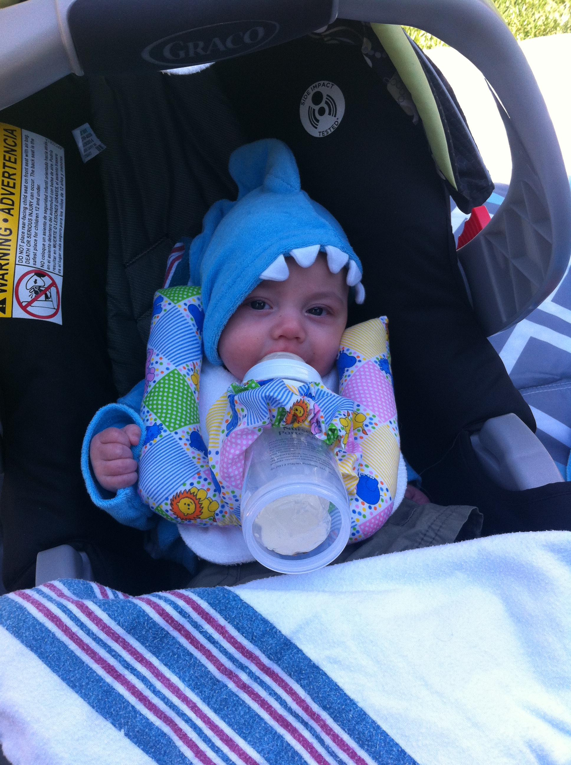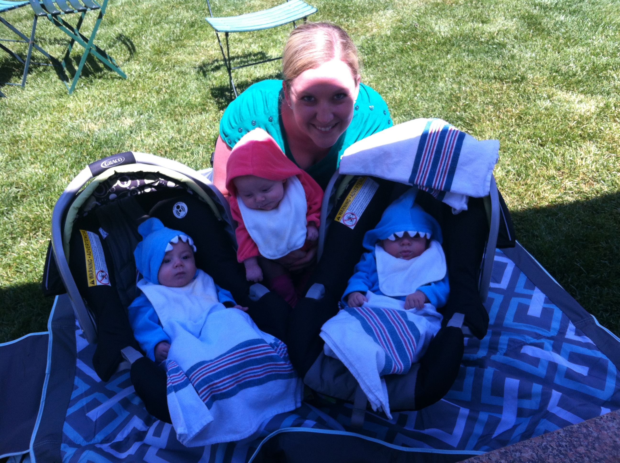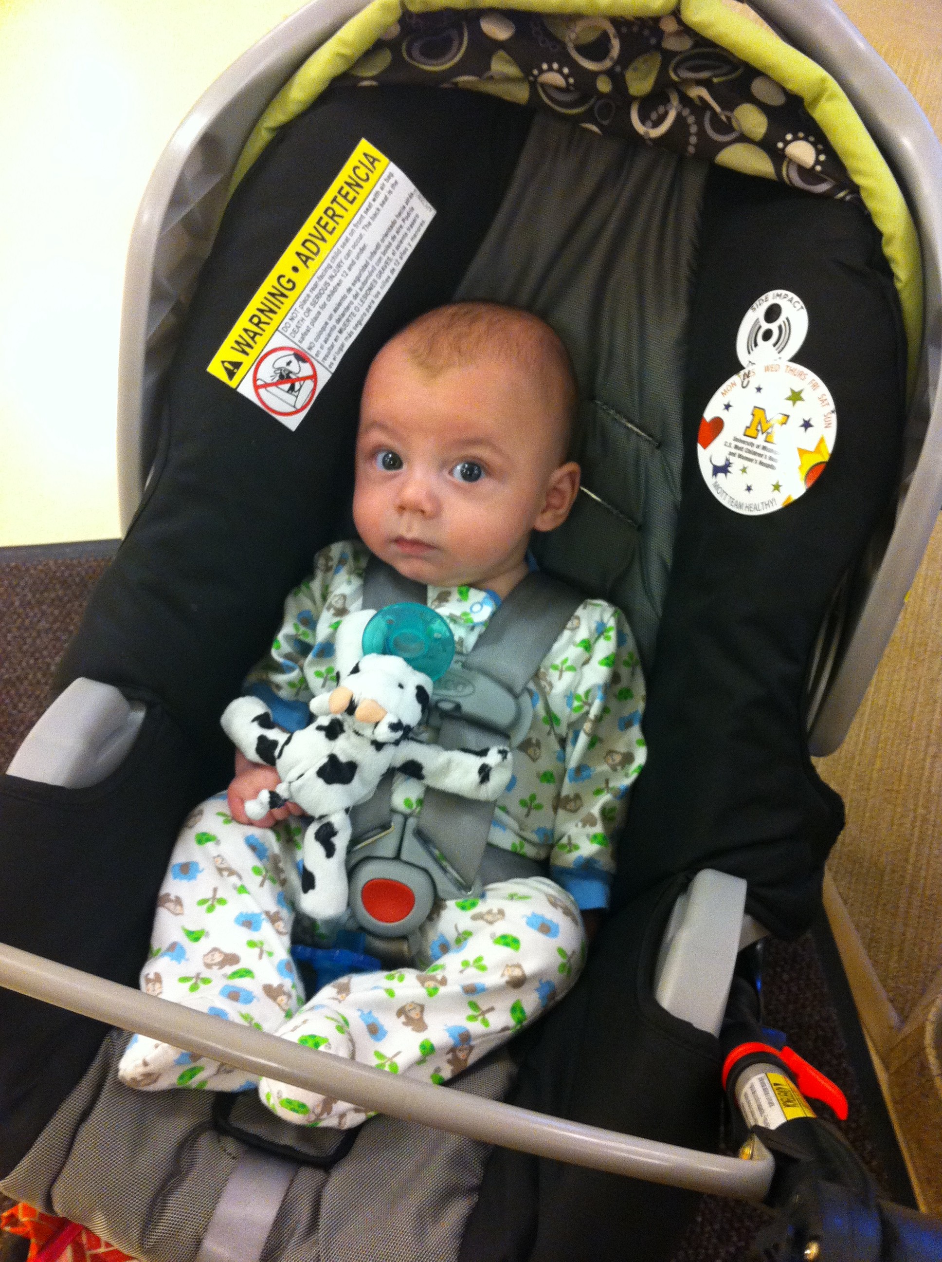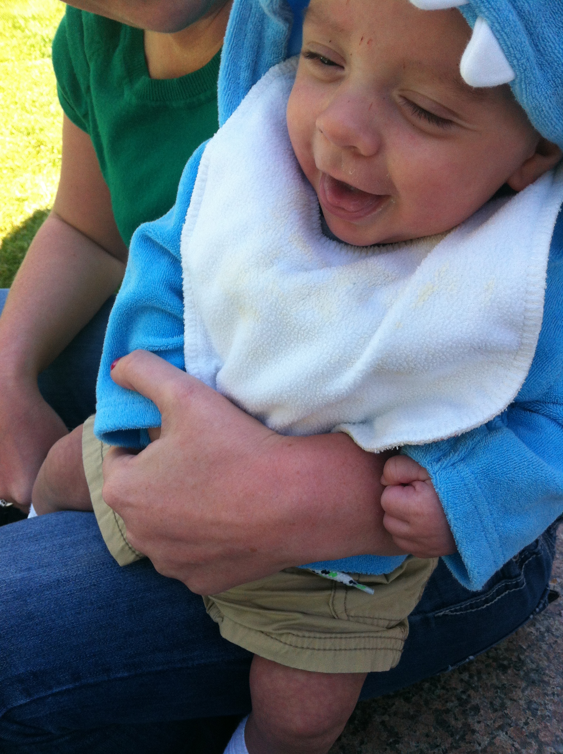 Soooooooo, Jason and I had Steven fitted for a helmet. You know, those helmets you sometimes see babies wear? He was our Baby A and he was down low, smushed against my pelvis with his brother and sister on top of him. We’re pretty sure he was born with his head misaligned (though I do wonder if his positioning in the nicu contributed to it because he could only see out if he looked in one specific direction). It’s purely cosmetic but we decided there’s no reason for him to have a lopsided head if there’s something we can do about it. Frankly, I’m not excited about the additional layer of attention/questions OR the maintenance OR the helmet itself but, as I understand it, the babies adapt really quickly so I’m going to get over it. I keep reminding myself that I’d have wanted my parents to do this for me and, if we don’t do it, there’s no going back later.