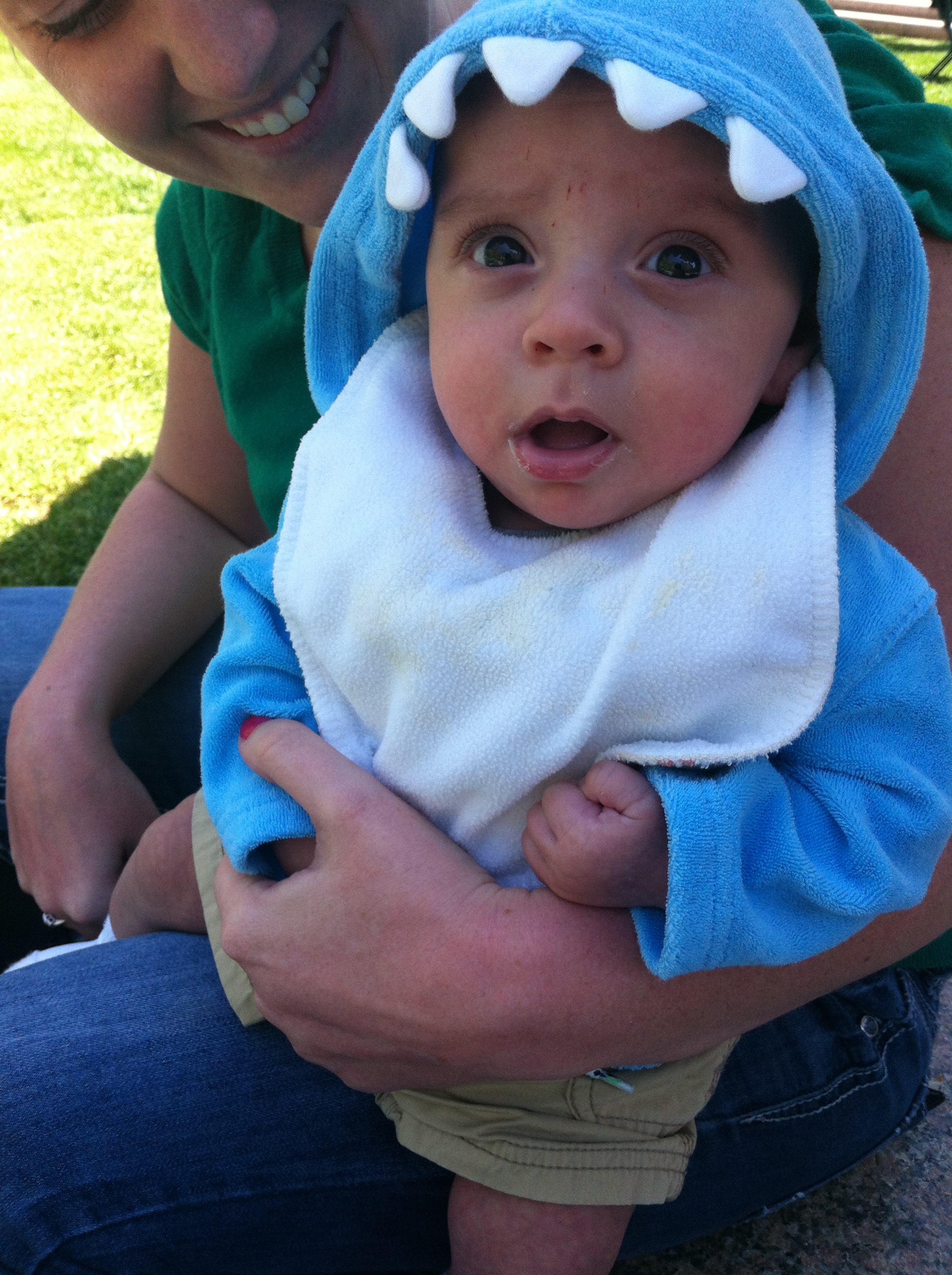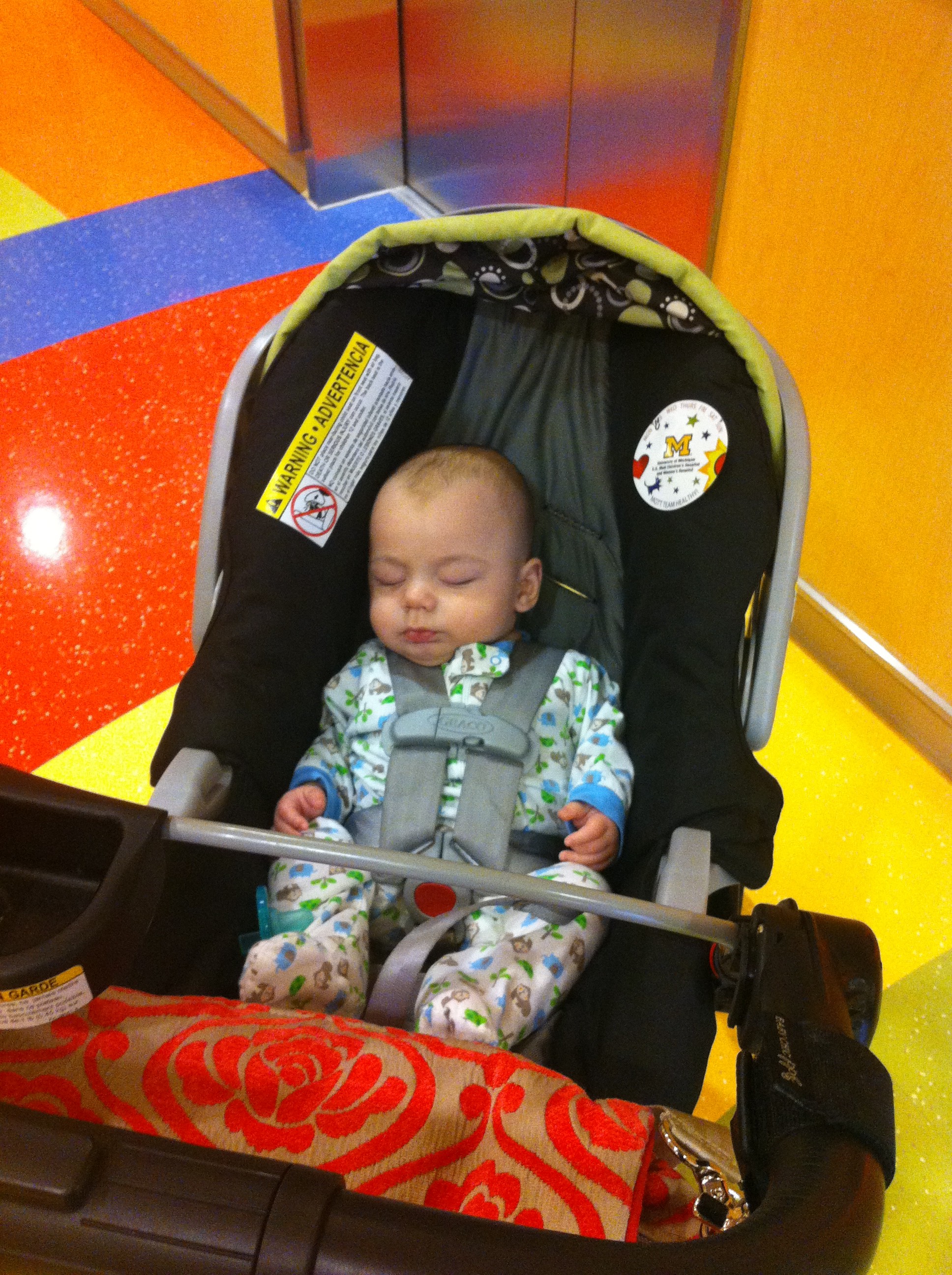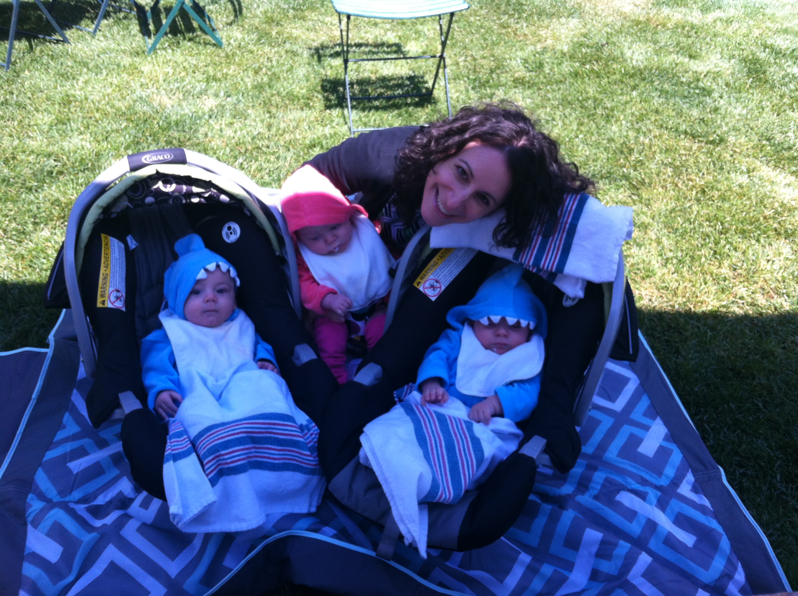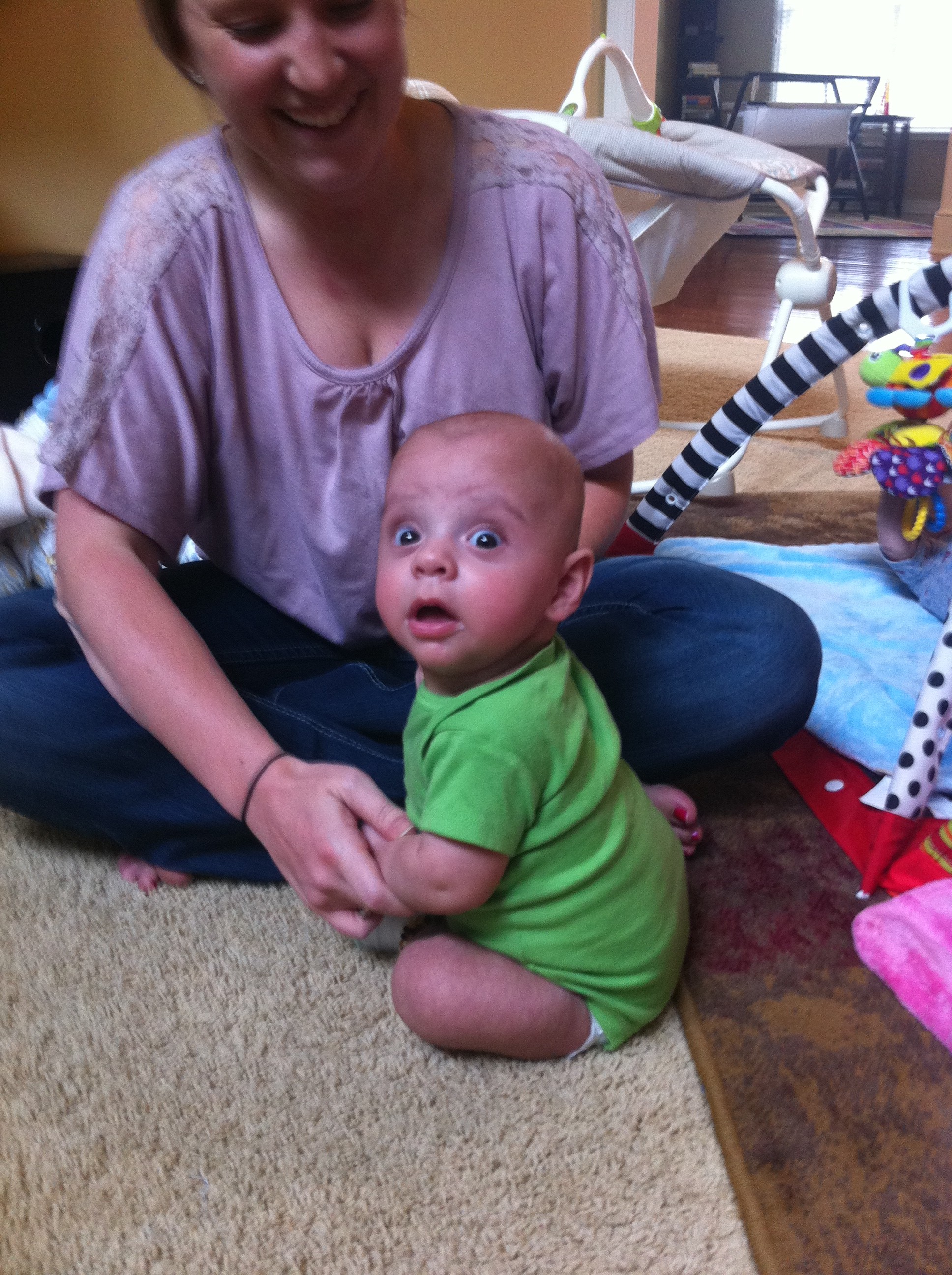 Soooooooo, Jason and I had Steven fitted for a helmet. You know, those helmets you sometimes see babies wear? He was our Baby A and he was down low, smushed against my pelvis with his brother and sister on top of him. We’re pretty sure he was born with his head misaligned (though I do wonder if his positioning in the nicu contributed to it because he could only see out if he looked in one specific direction). It’s purely cosmetic but we decided there’s no reason for him to have a lopsided head if there’s something we can do about it. Frankly, I’m not excited about the additional layer of attention/questions OR the maintenance OR the helmet itself but, as I understand it, the babies adapt really quickly so I’m going to get over it. I keep reminding myself that I’d have wanted my parents to do this for me and, if we don’t do it, there’s no going back later.