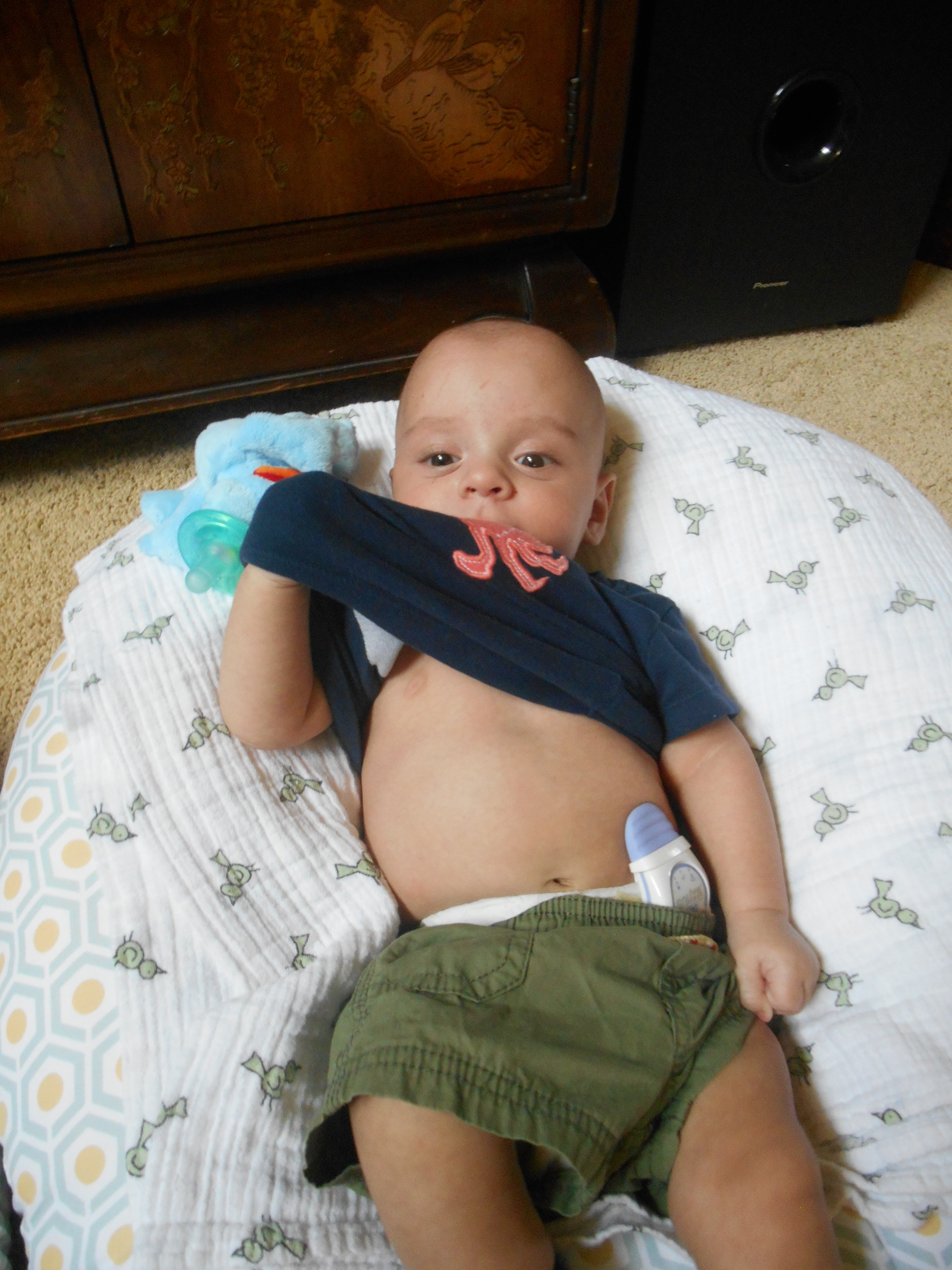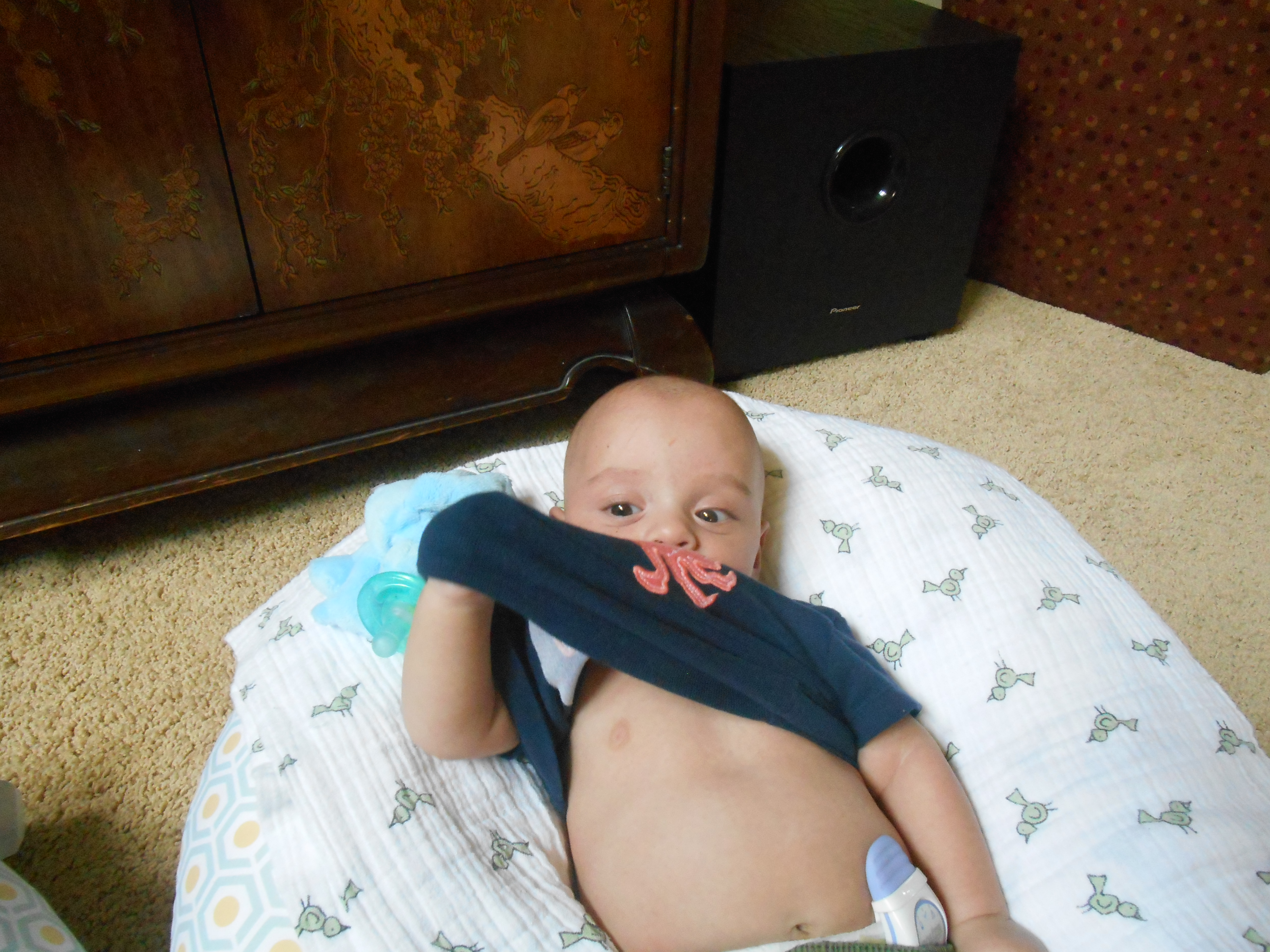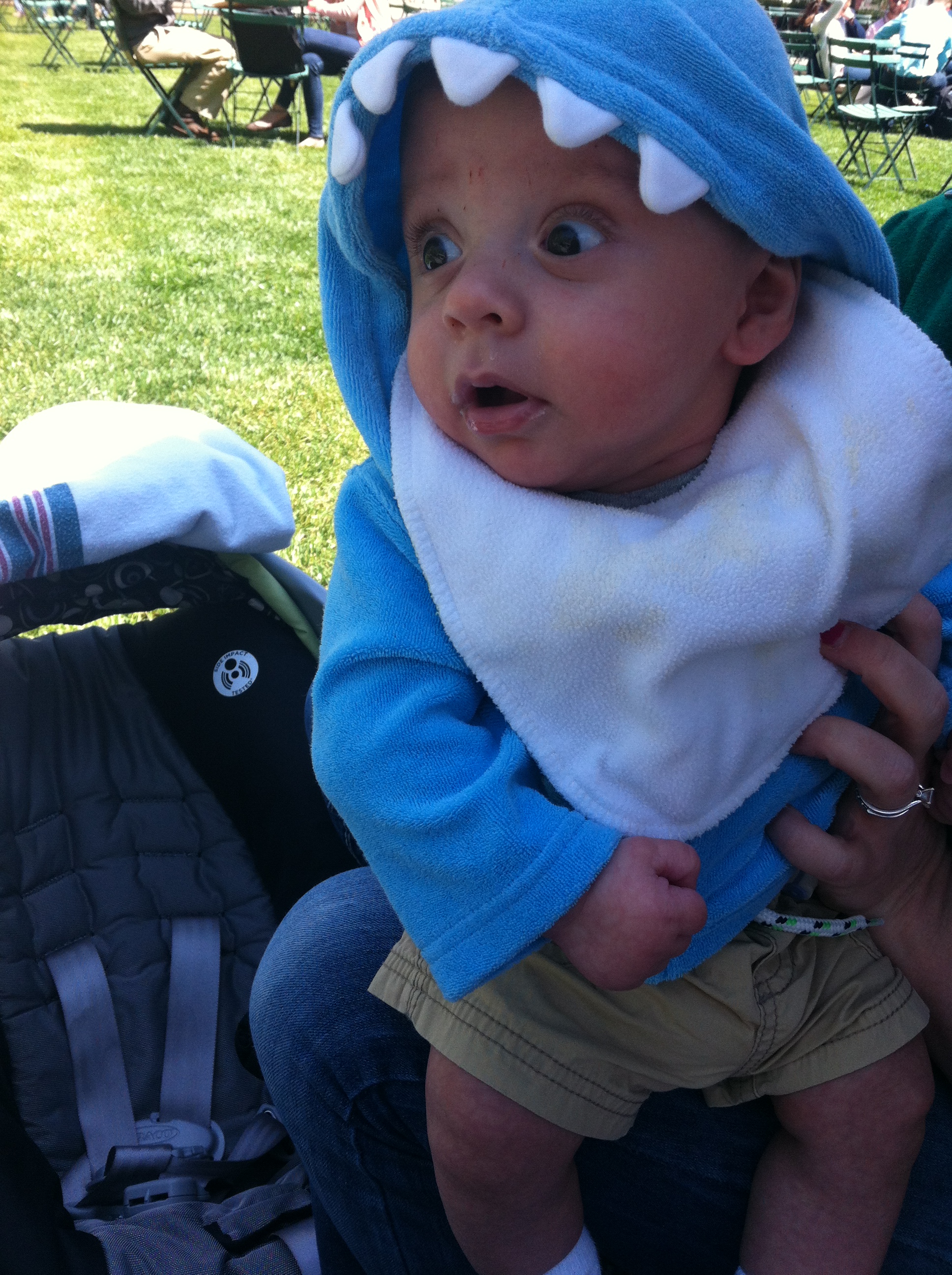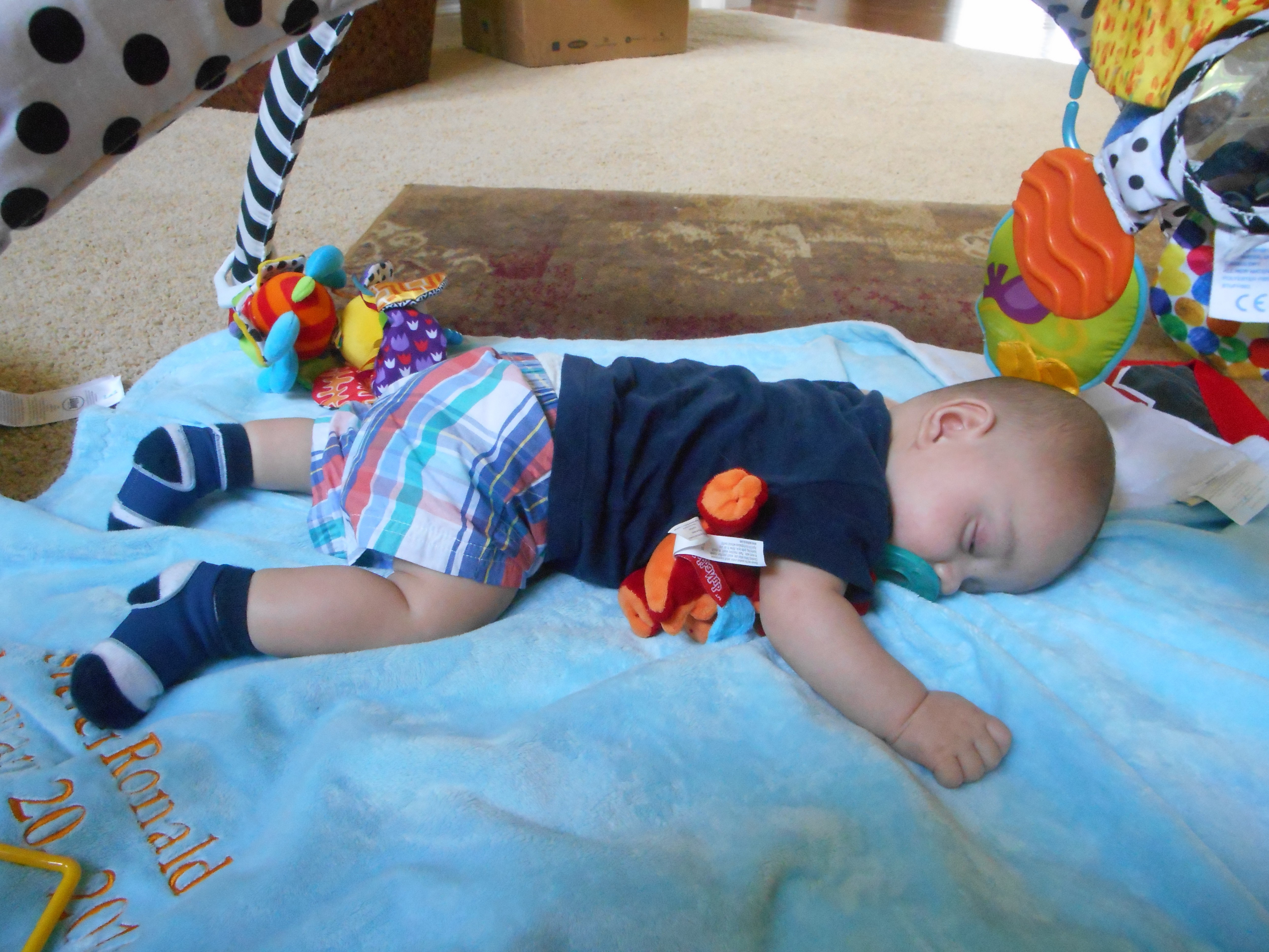 Soooooooo, Jason and I had Steven fitted for a helmet. You know, those helmets you sometimes see babies wear? He was our Baby A and he was down low, smushed against my pelvis with his brother and sister on top of him. We’re pretty sure he was born with his head misaligned (though I do wonder if his positioning in the nicu contributed to it because he could only see out if he looked in one specific direction). It’s purely cosmetic but we decided there’s no reason for him to have a lopsided head if there’s something we can do about it. Frankly, I’m not excited about the additional layer of attention/questions OR the maintenance OR the helmet itself but, as I understand it, the babies adapt really quickly so I’m going to get over it. I keep reminding myself that I’d have wanted my parents to do this for me and, if we don’t do it, there’s no going back later.