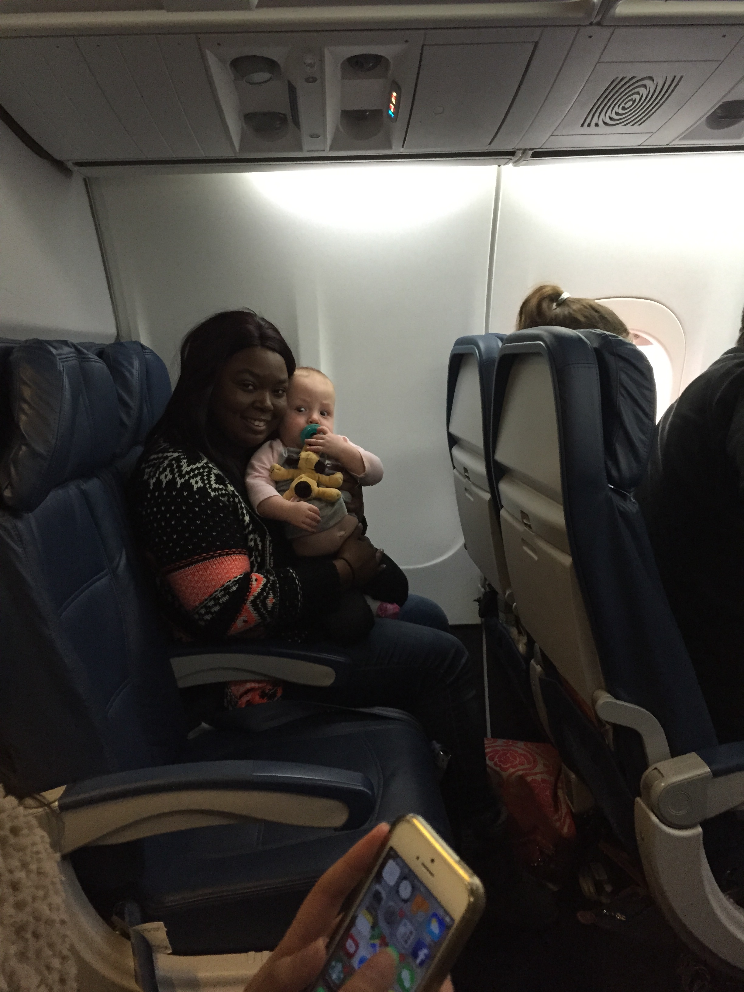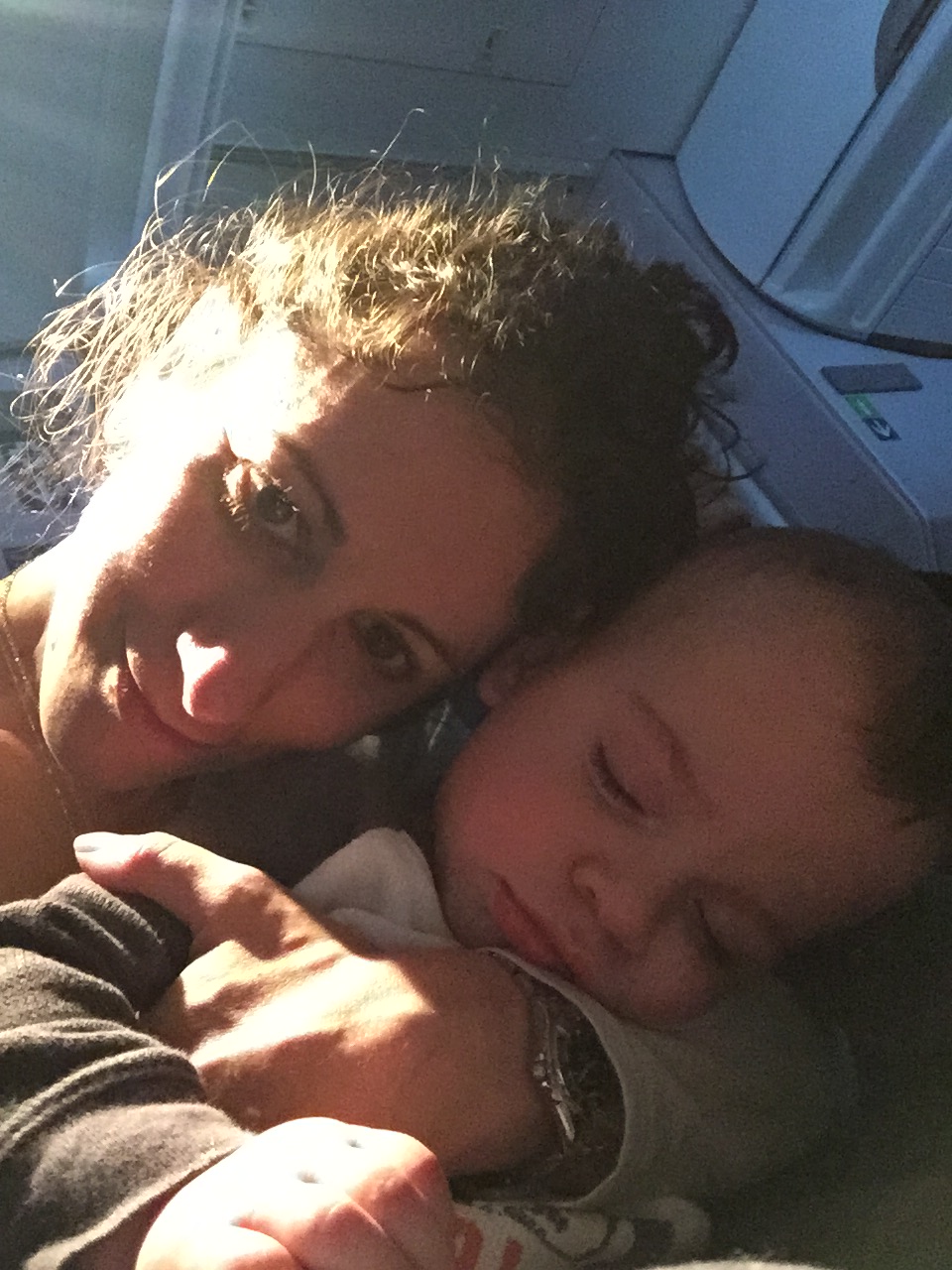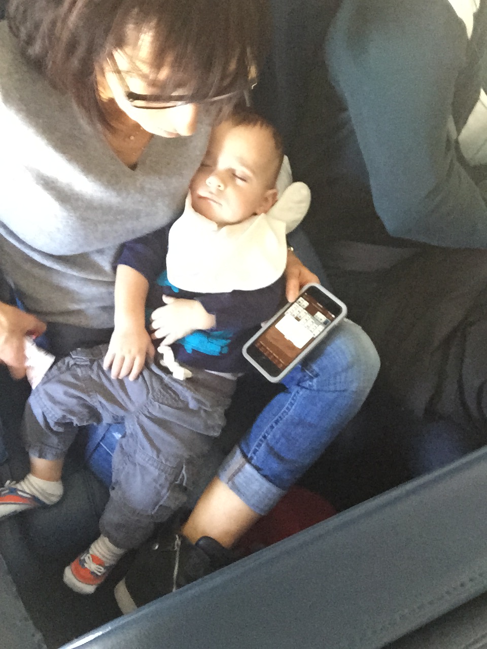 Nana and Sammy on the plane (taken over my shoulder to the row behind me).