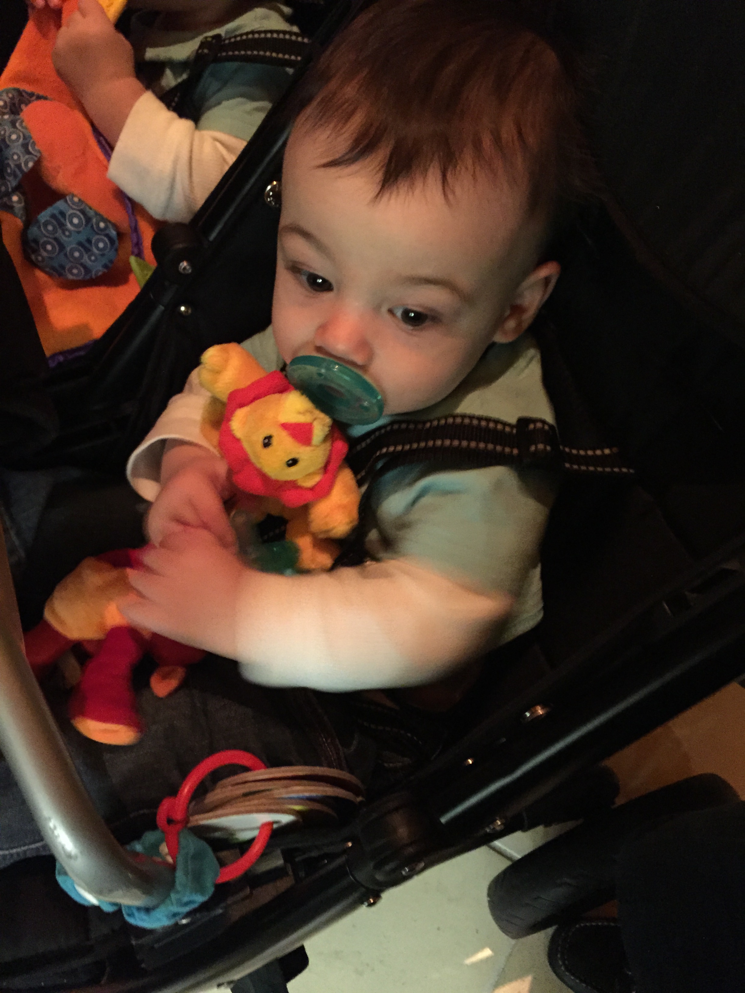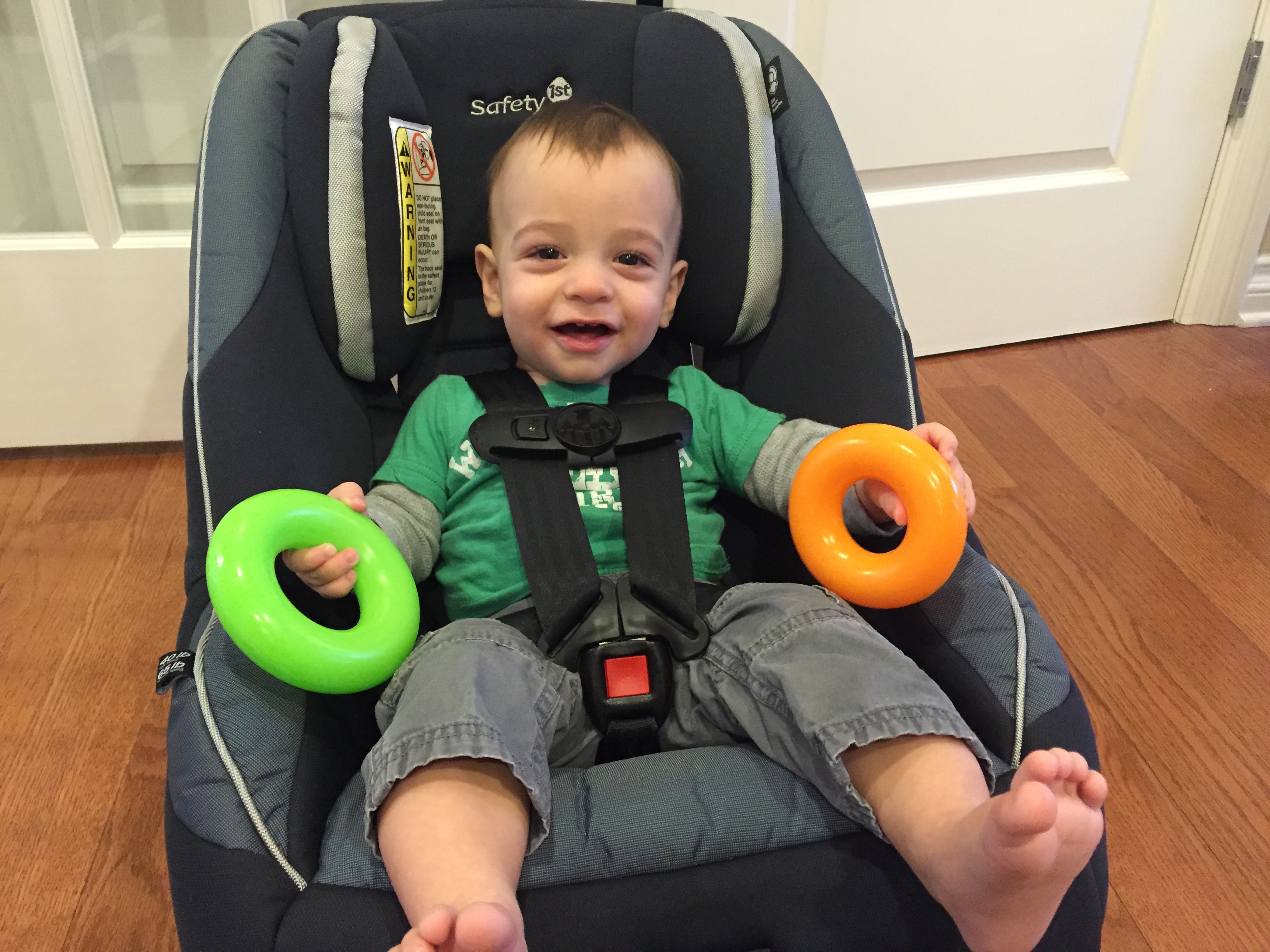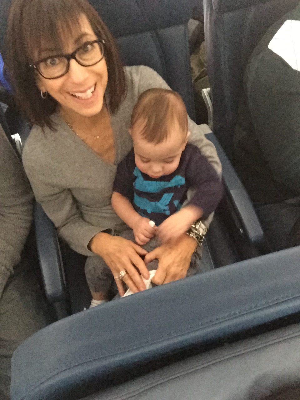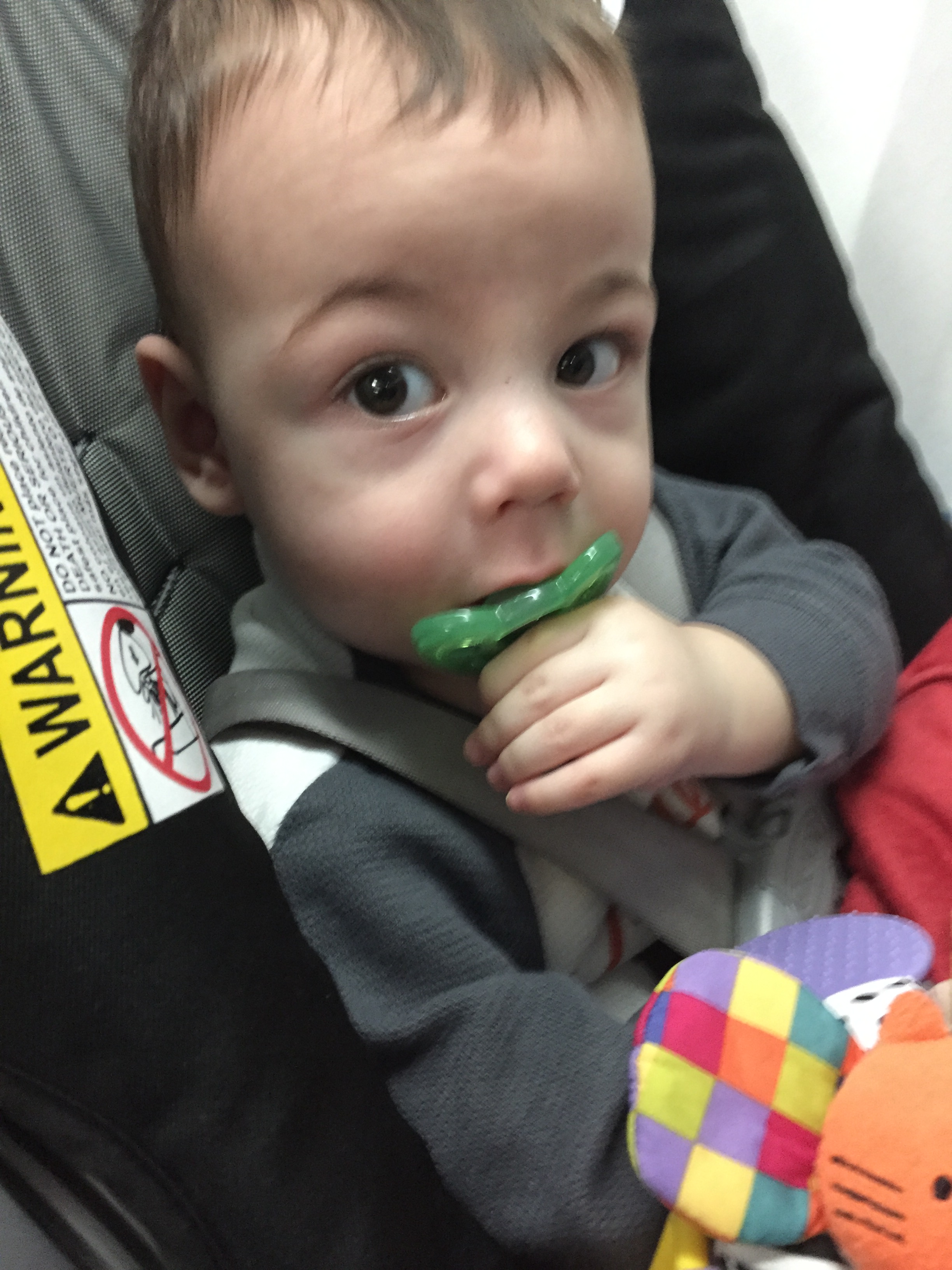 Here, Sammy and I are trying out the car seat we’ll use on the plan on Friday when we go to NY together. We’re not doing lap babies anymore so, somehow, with a lot of planning, I’m going to fly alone with Sammy and get him on the plan and in the car seat in the seat next to me.