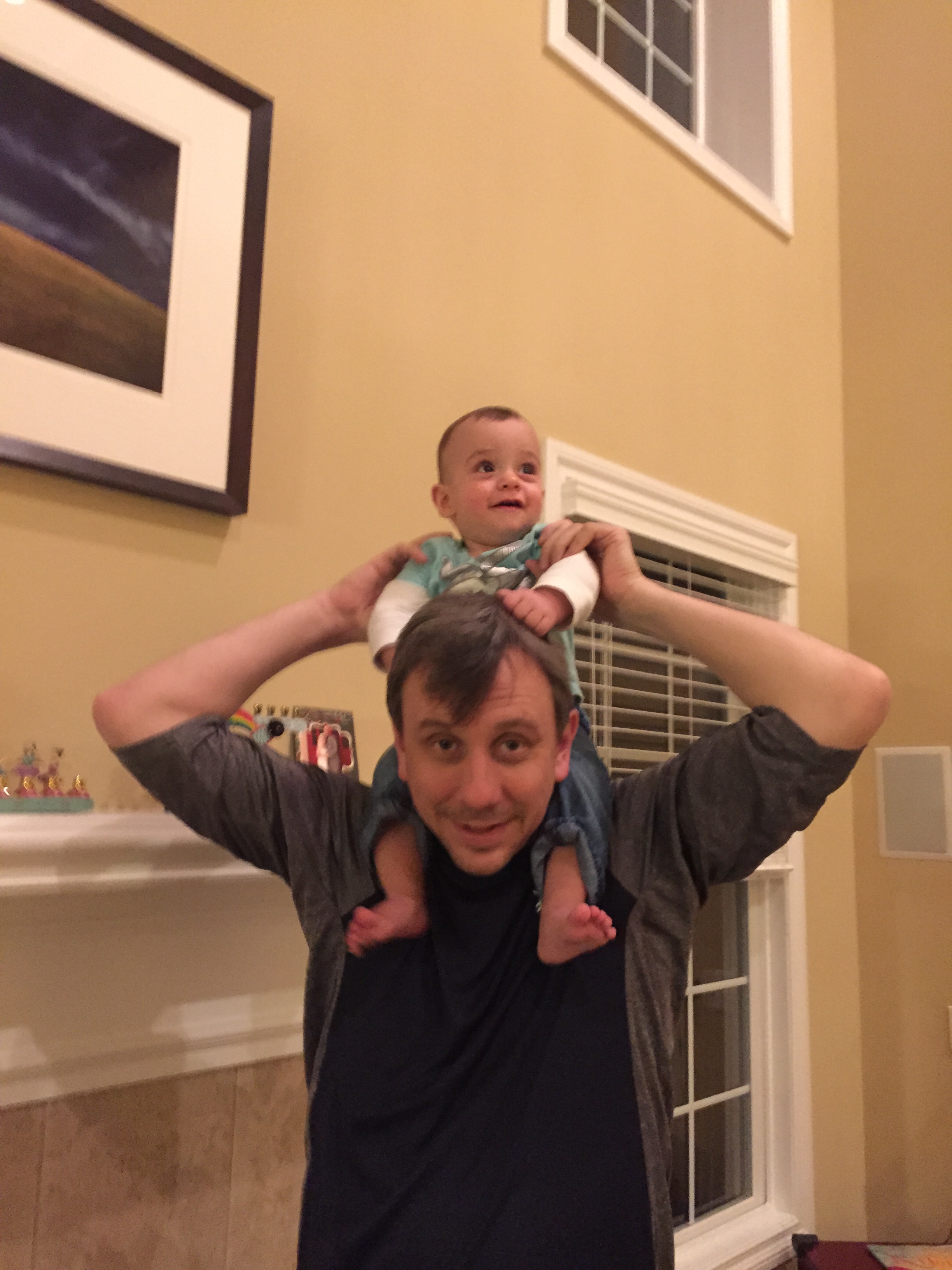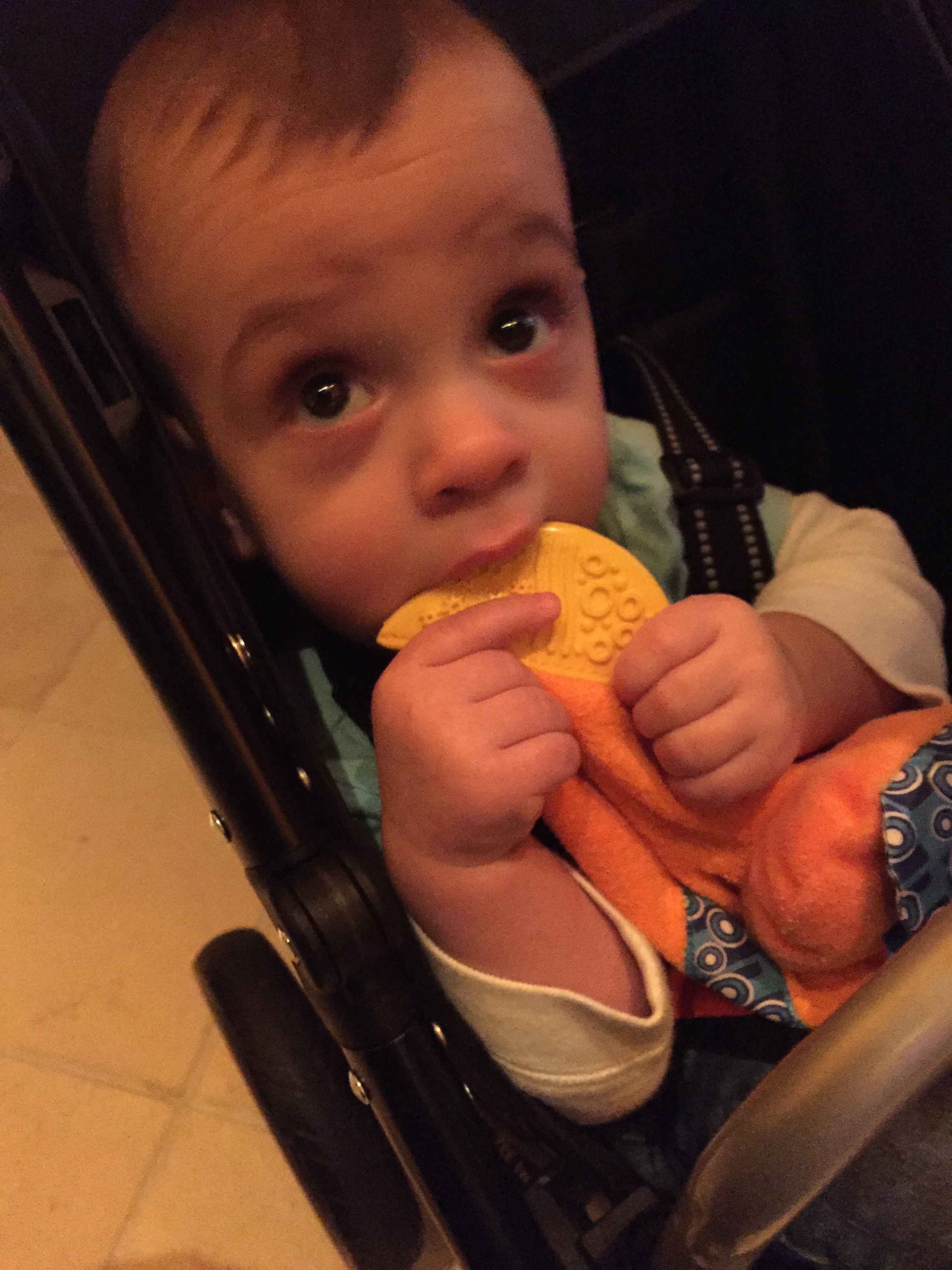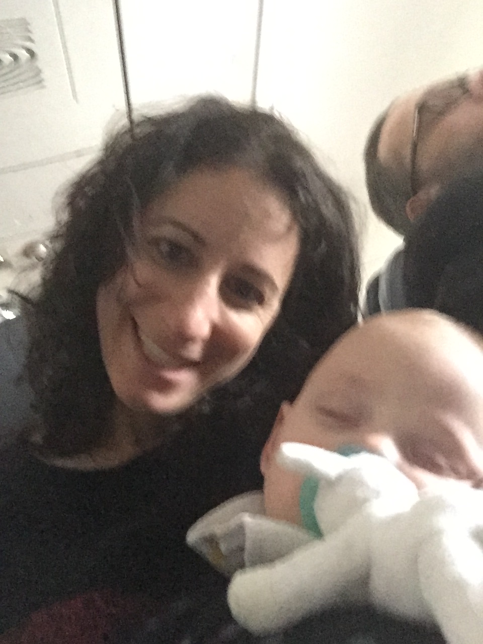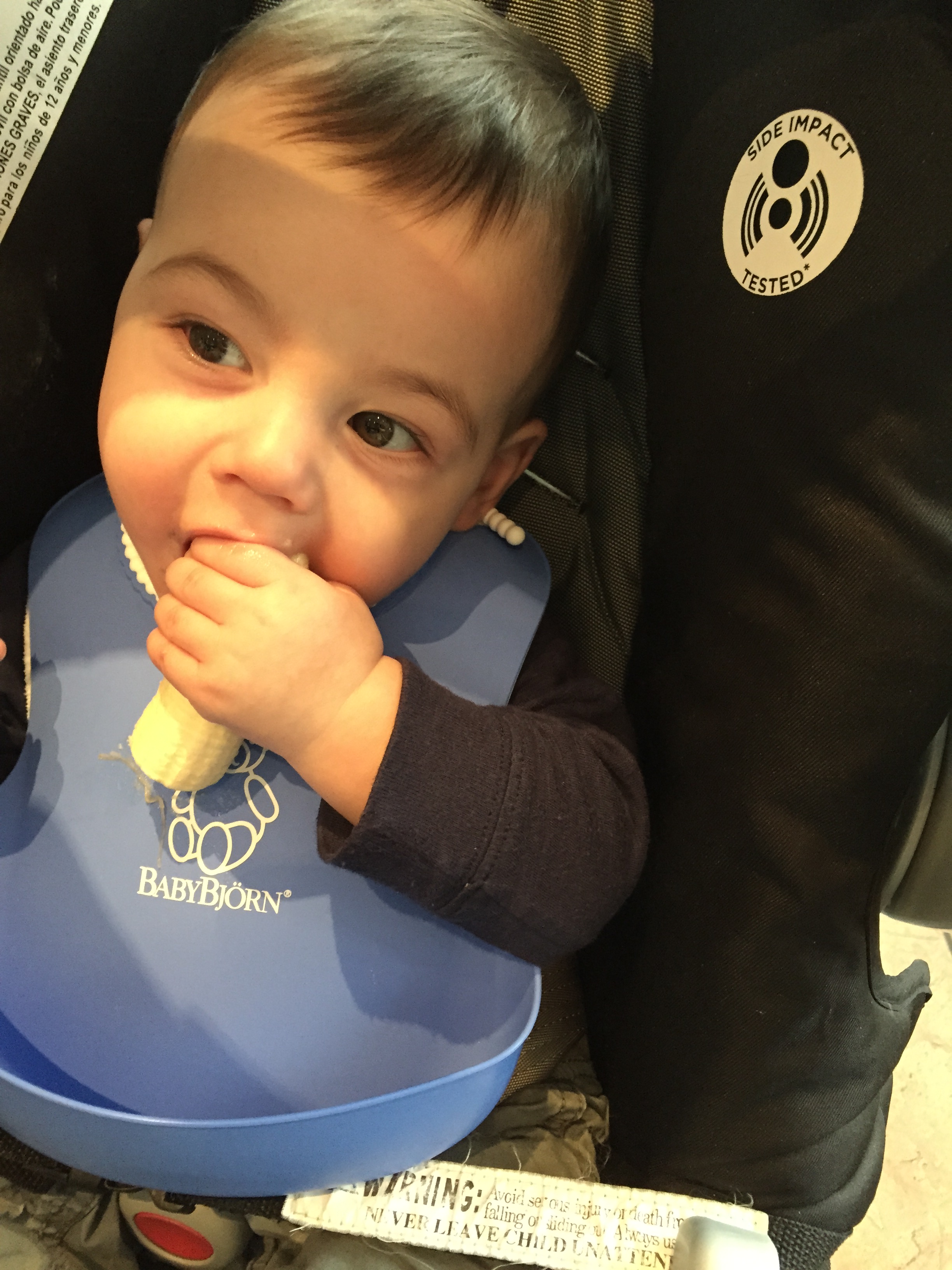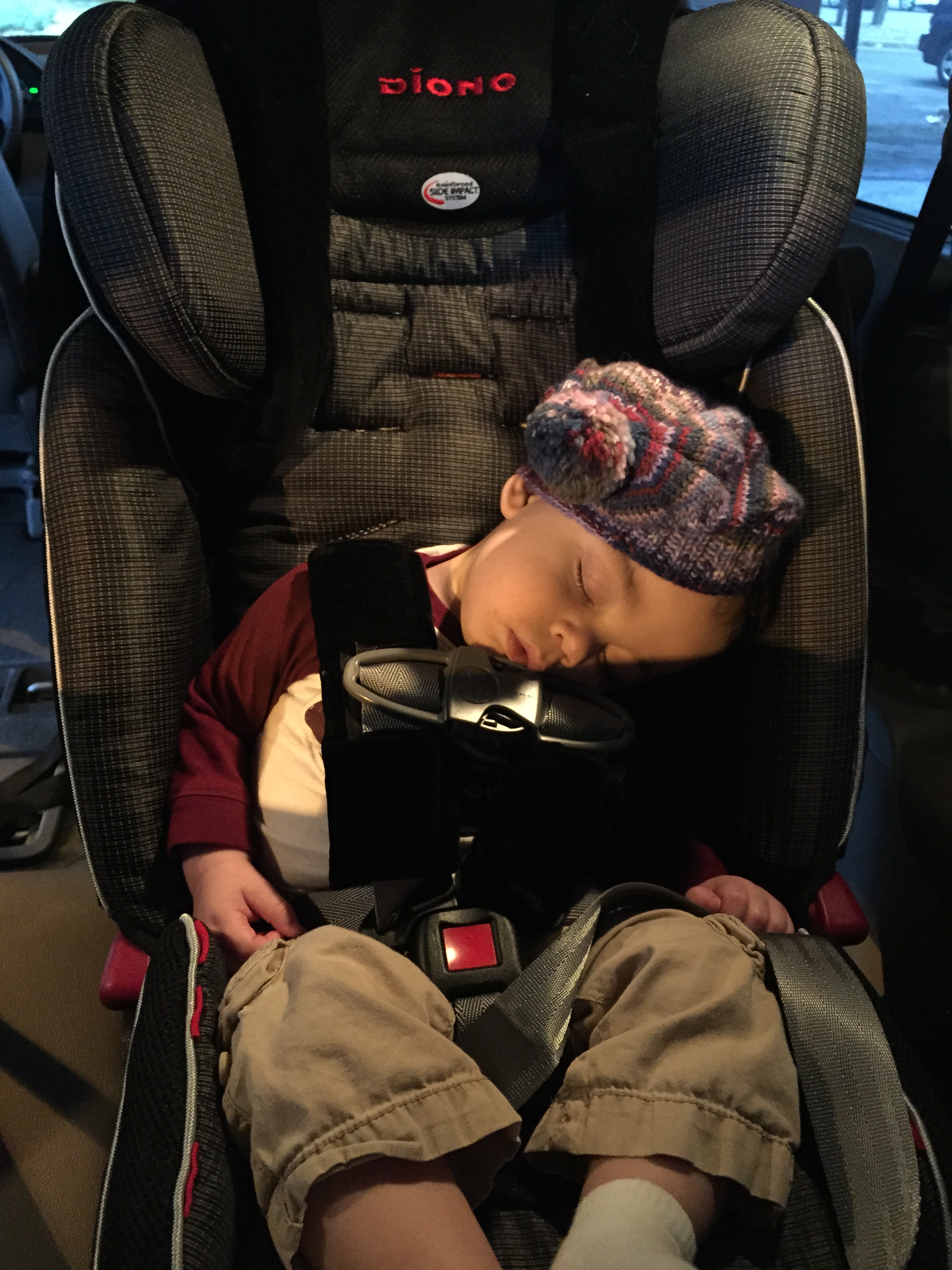 Here, Sammy and I are trying out the car seat we’ll use on the plan on Friday when we go to NY together. We’re not doing lap babies anymore so, somehow, with a lot of planning, I’m going to fly alone with Sammy and get him on the plan and in the car seat in the seat next to me.