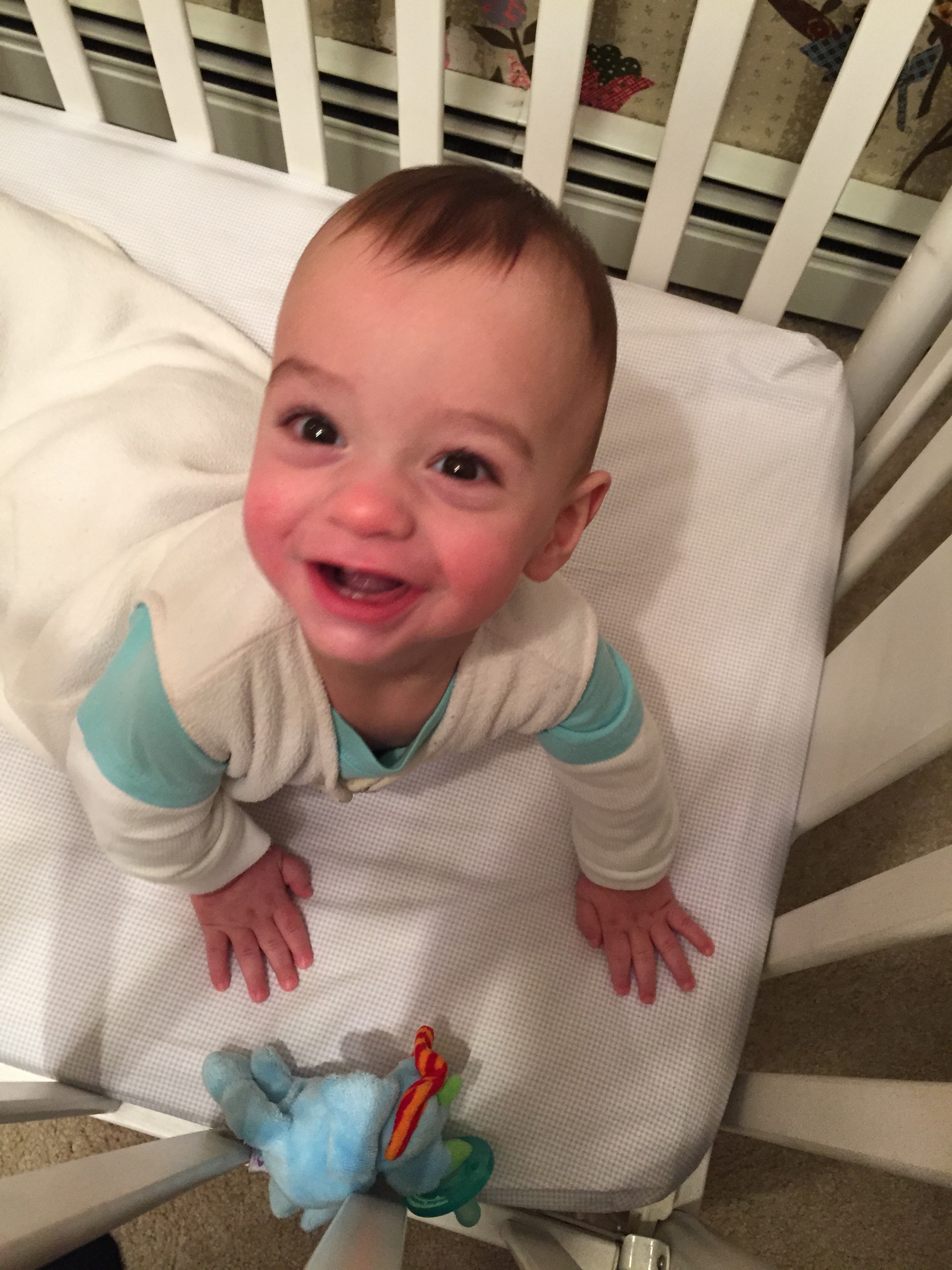 Amaya has now figured out that, if she pulls a sleep sack to the edge of the crib, she can get the suckie. And she gets the biggest kick out of it!