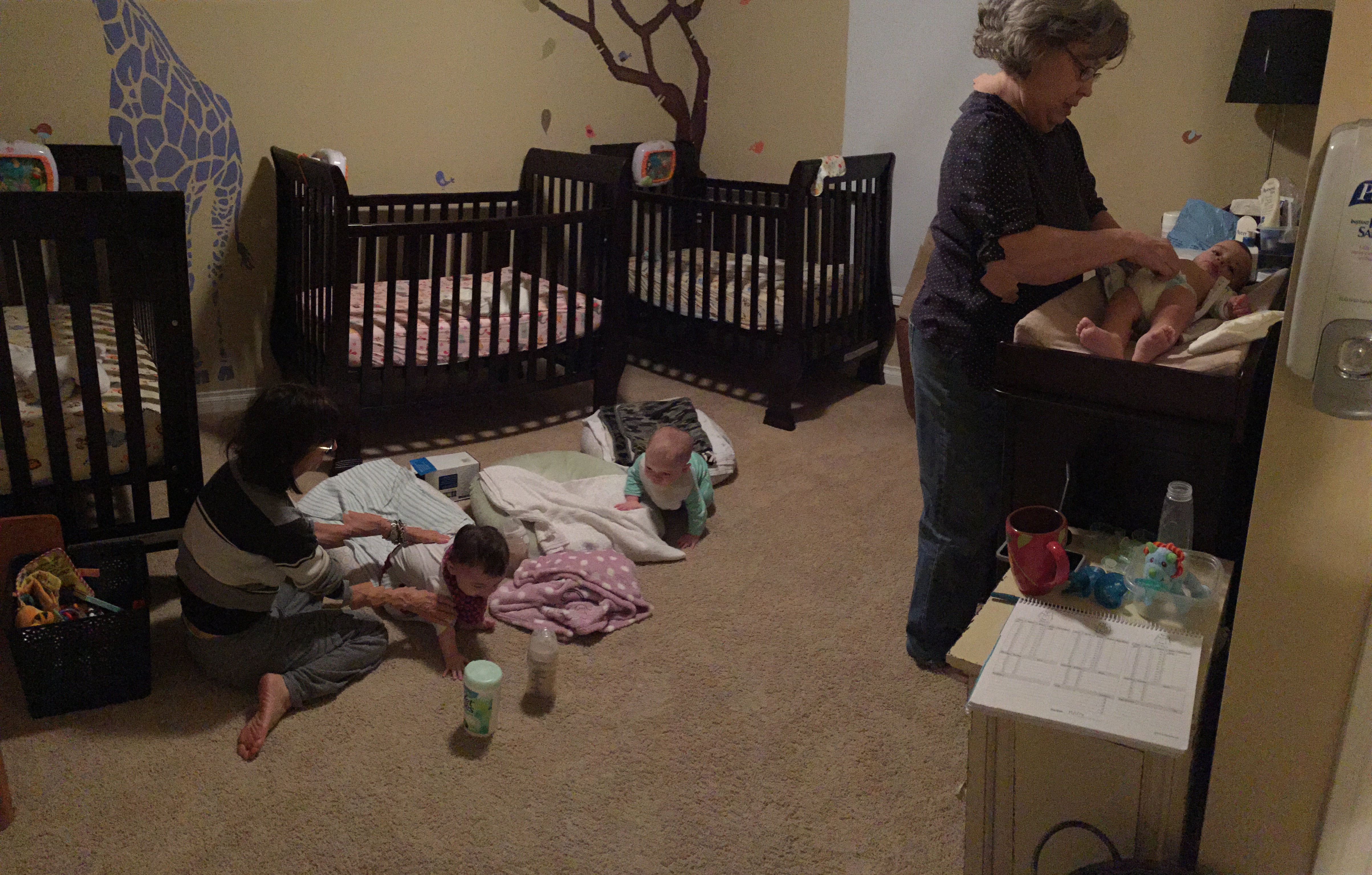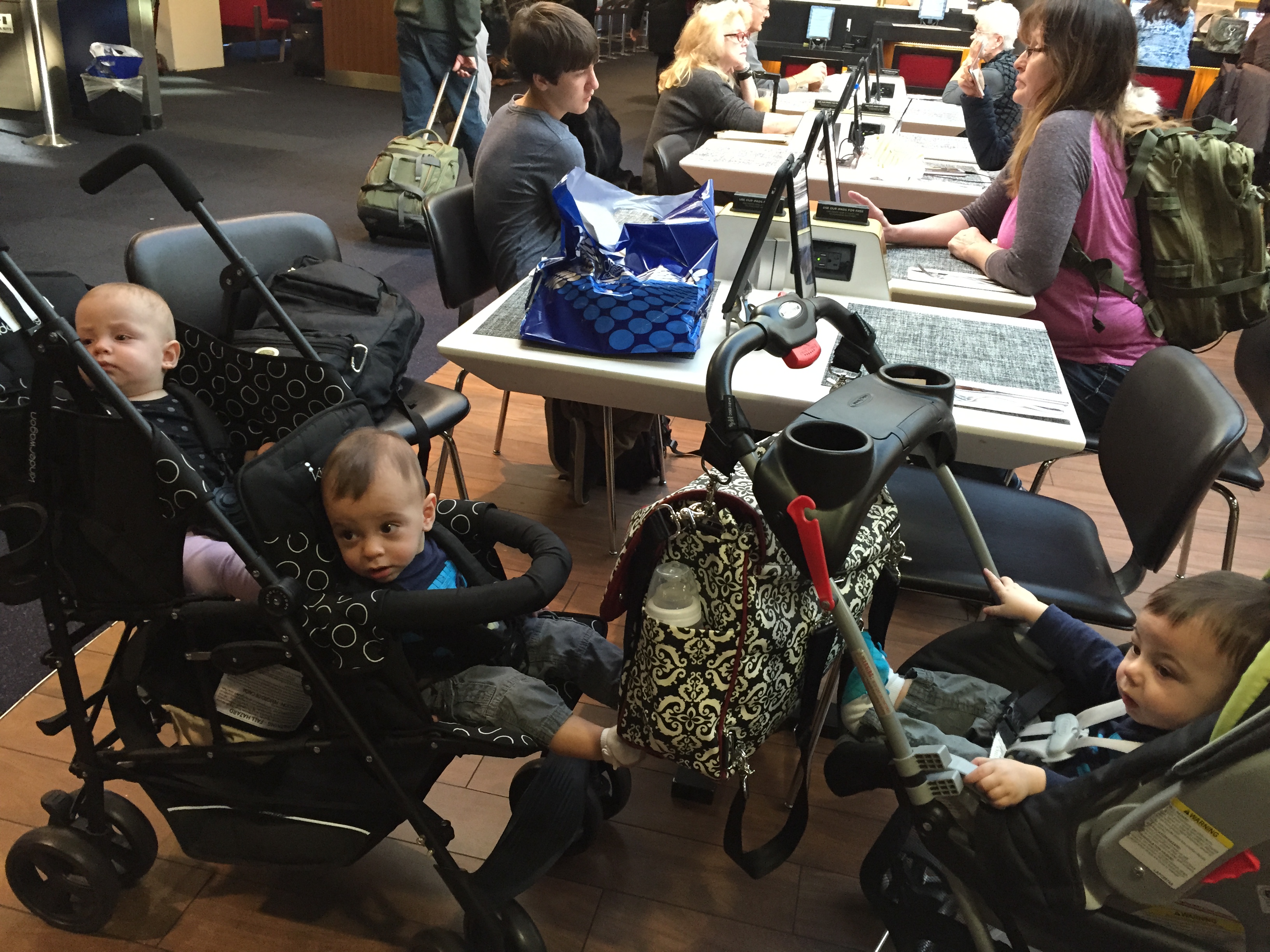 Anna, who helps us on weekend nights, traveled with me. I’m ambitious but definitely not ambitious enough to try to fly with three 10 month olds by myself.
