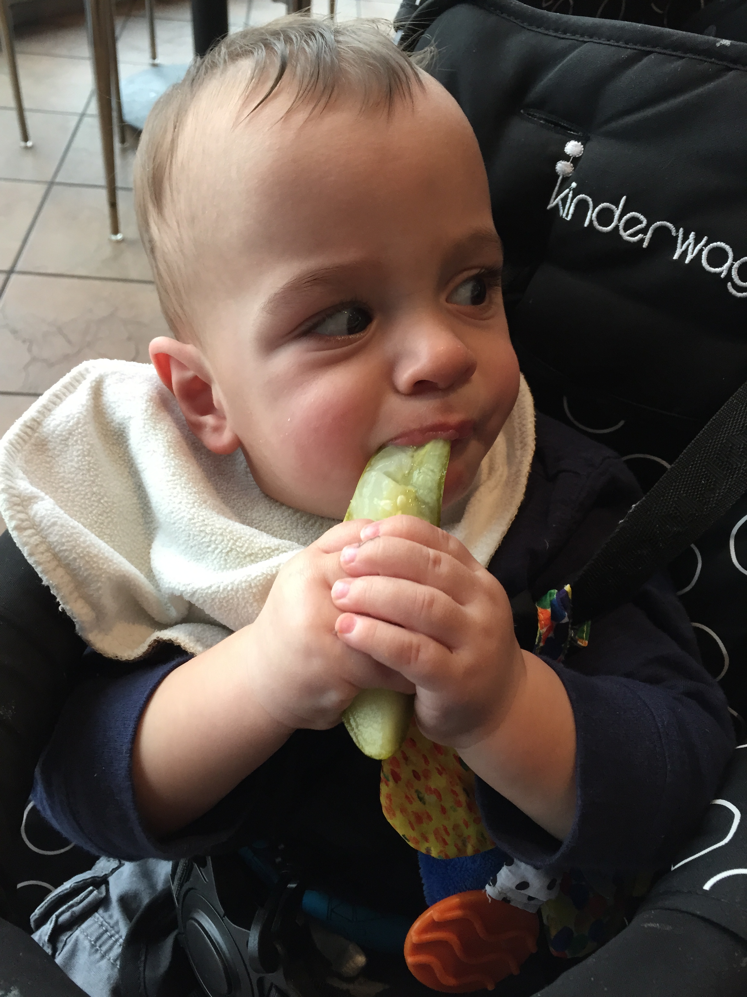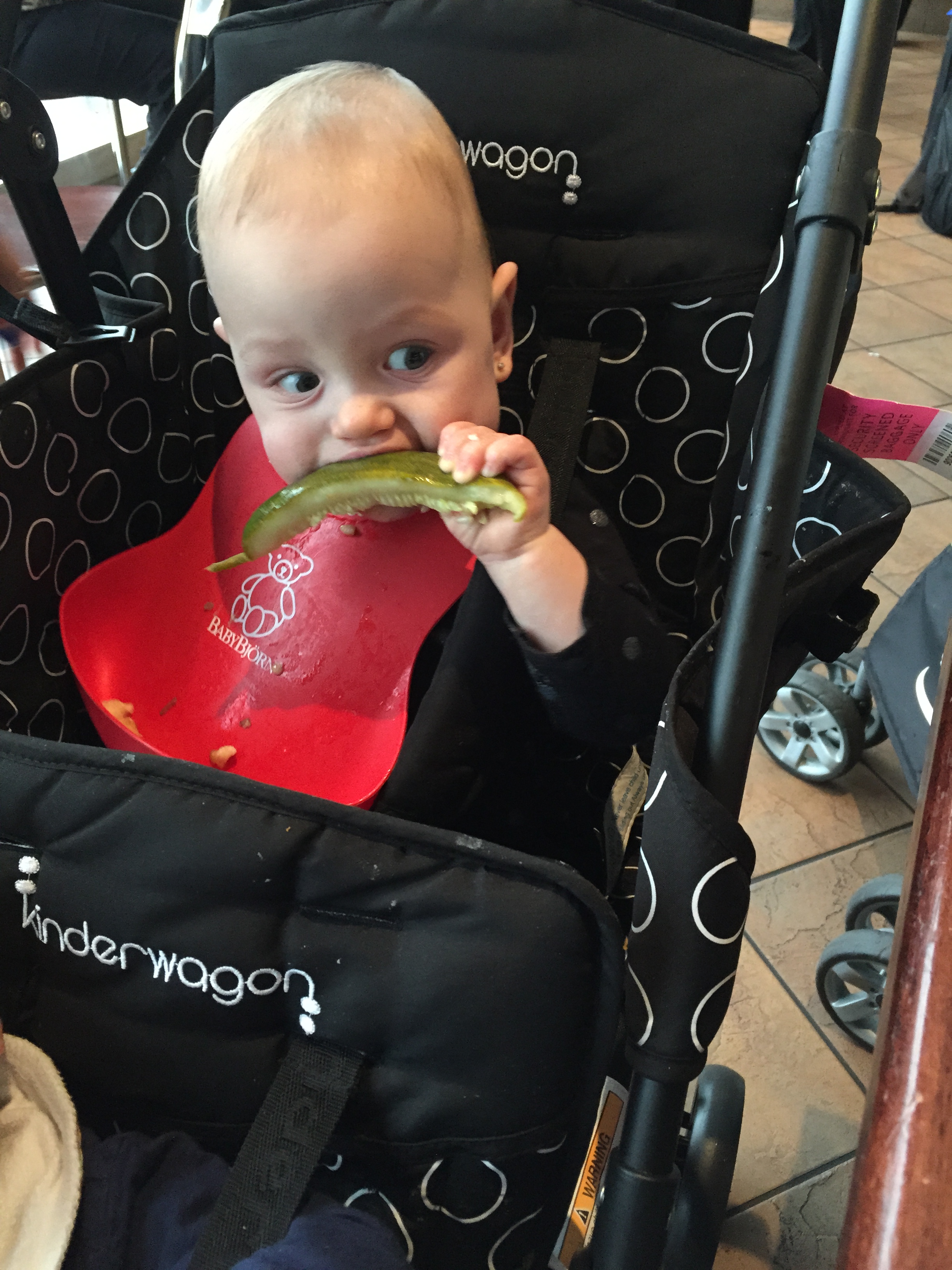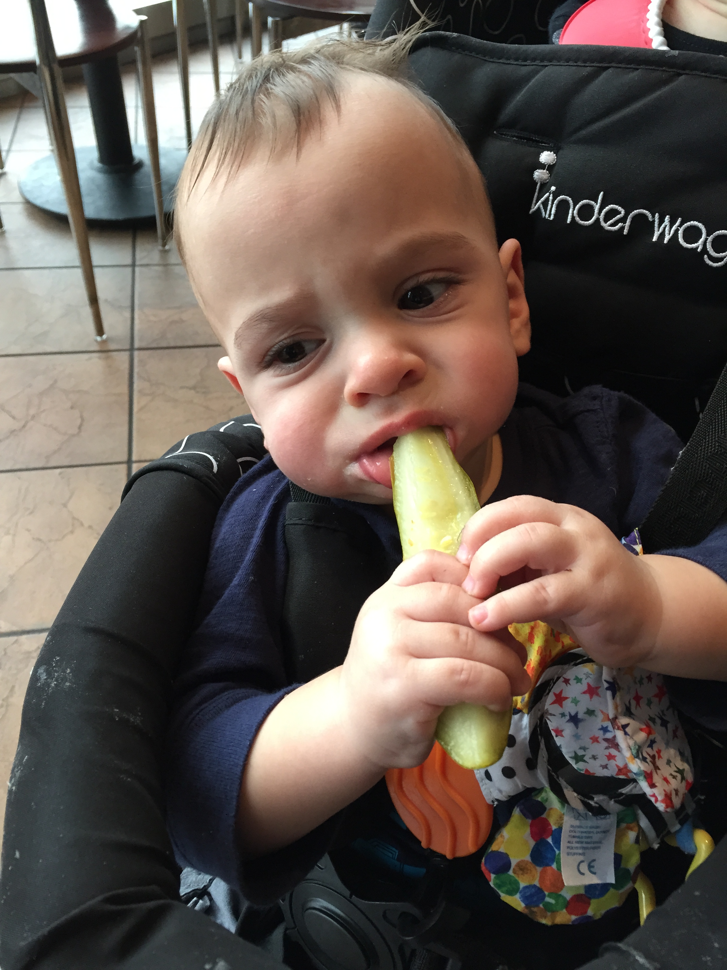 Sammy tried his first pickle. Hahahaha. He wasn’t sure at first but then he dove in and finished most of the pickle. A boy after my own heart!