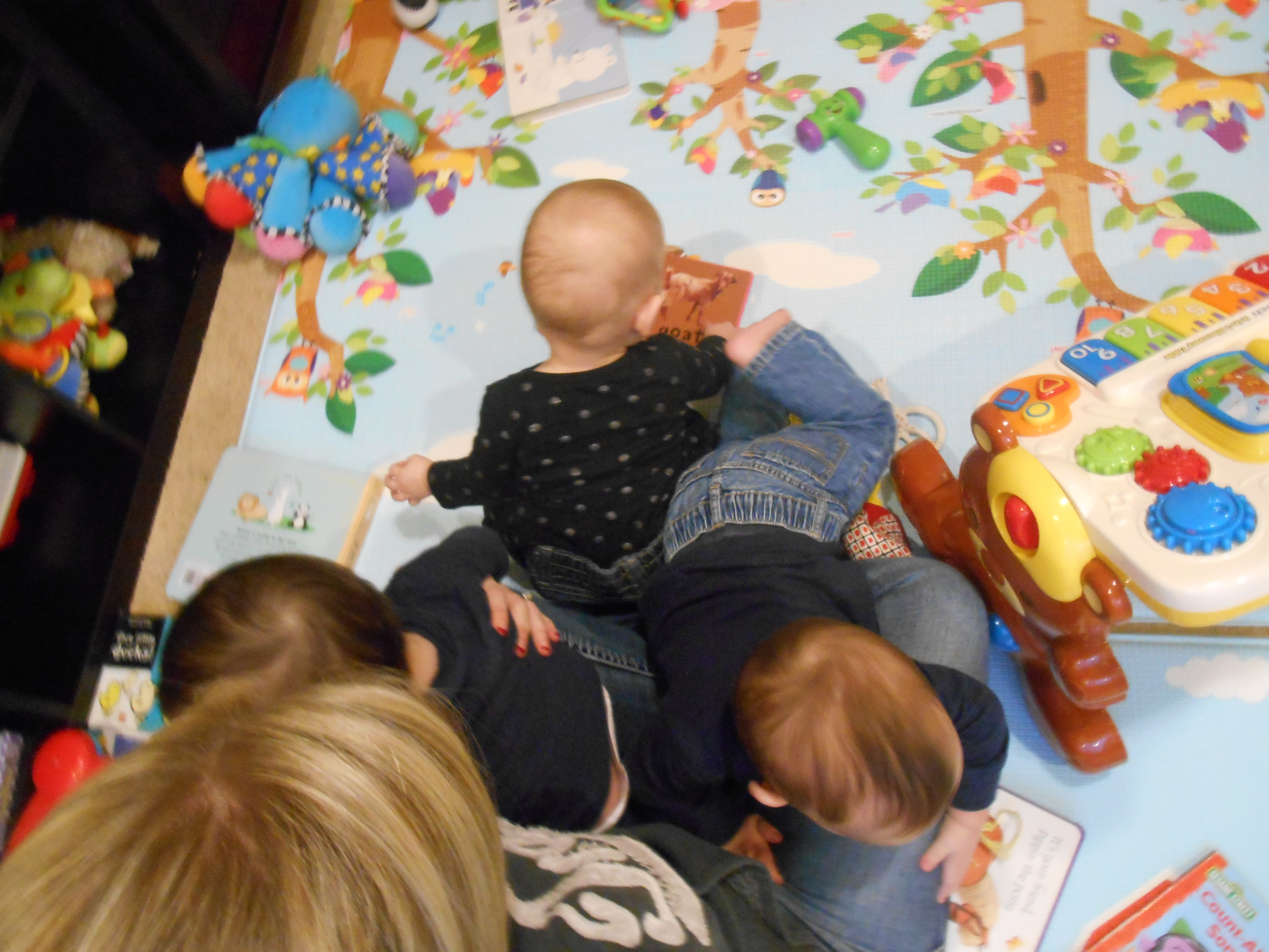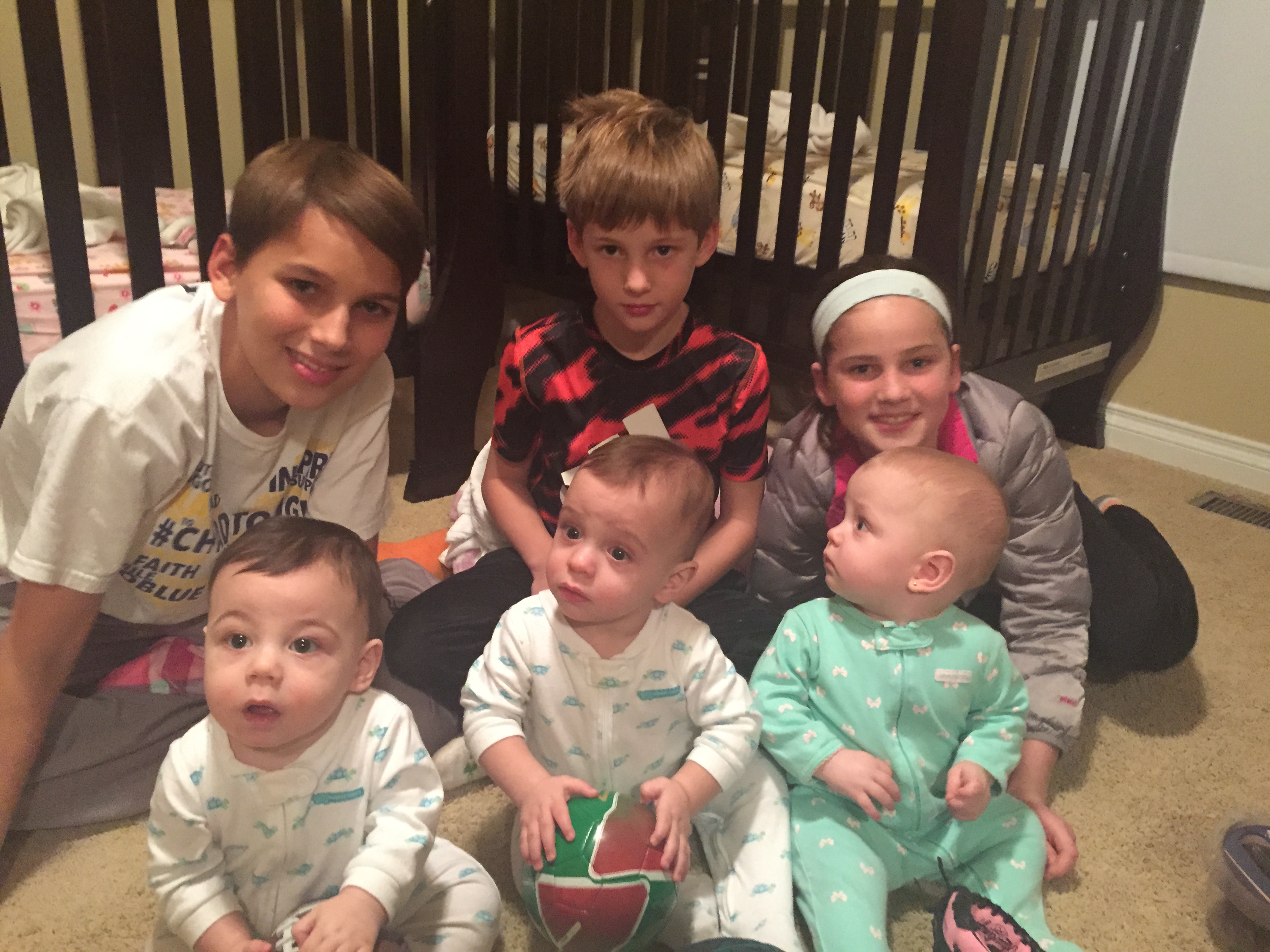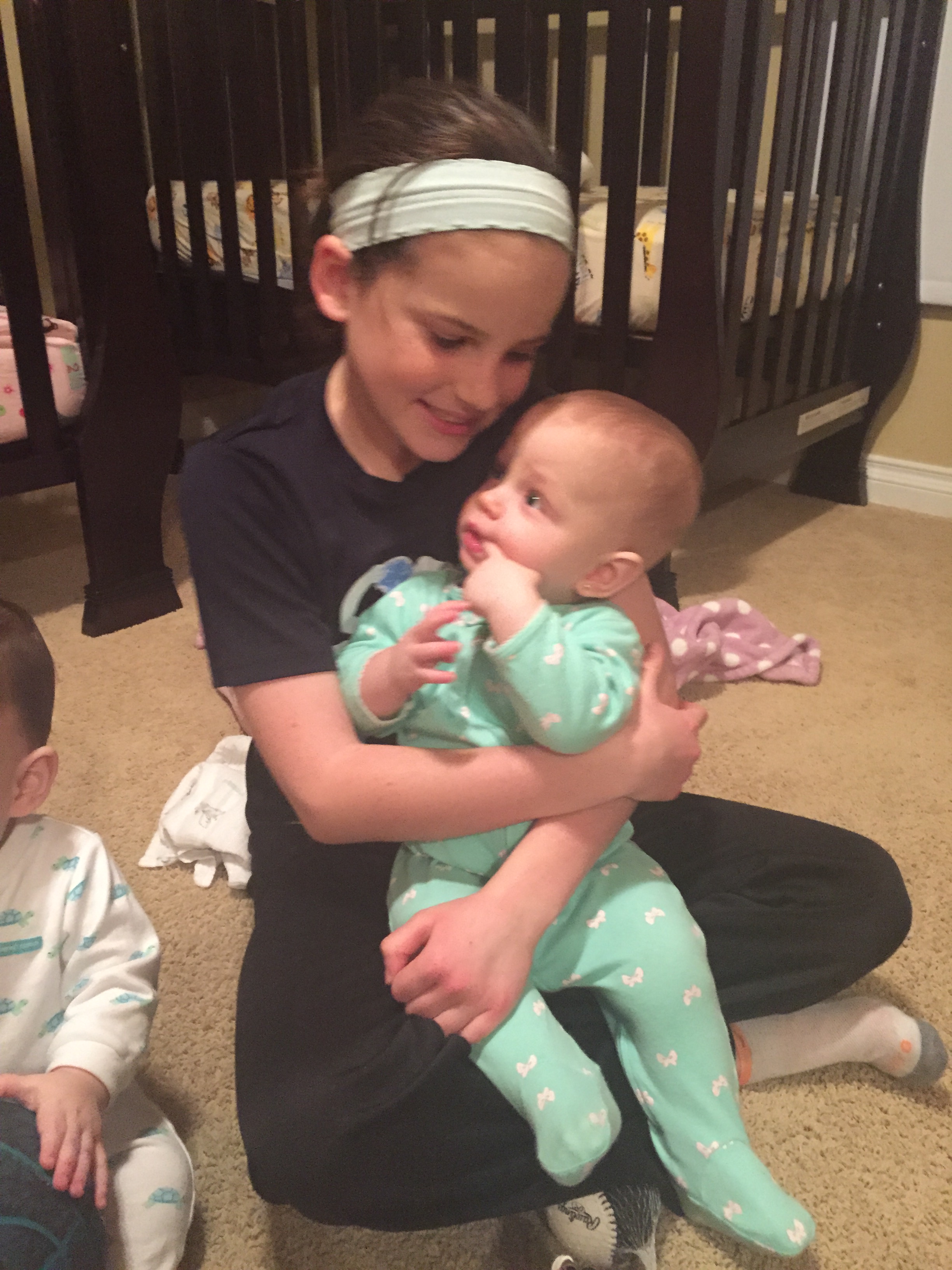 Megan took this picture during the week and I think it’s perfect. She’s buried in babies! :