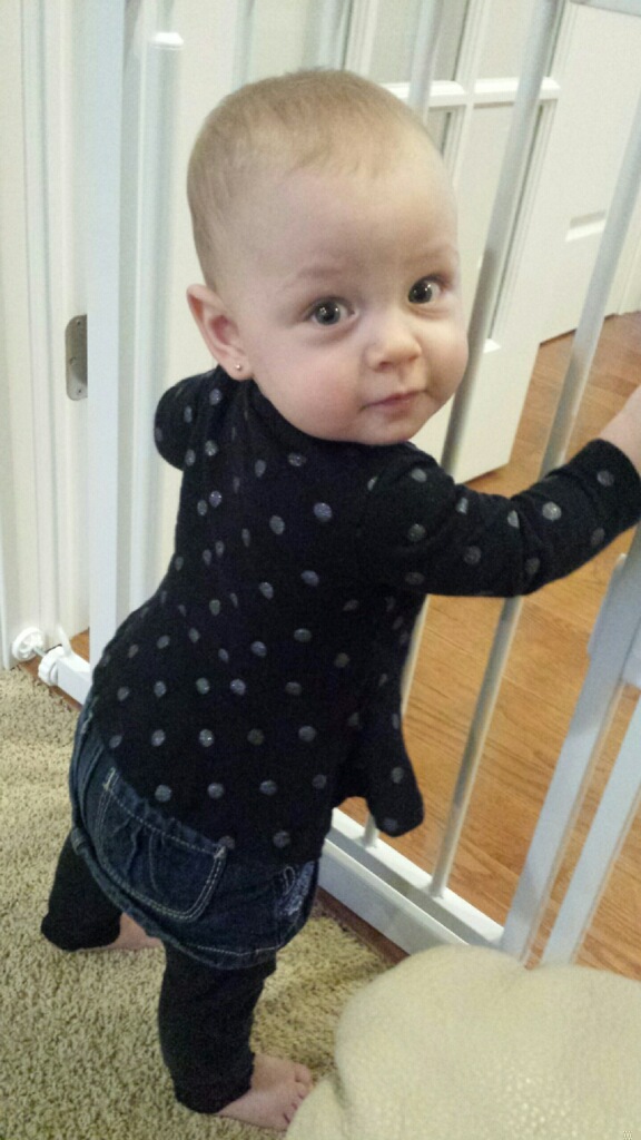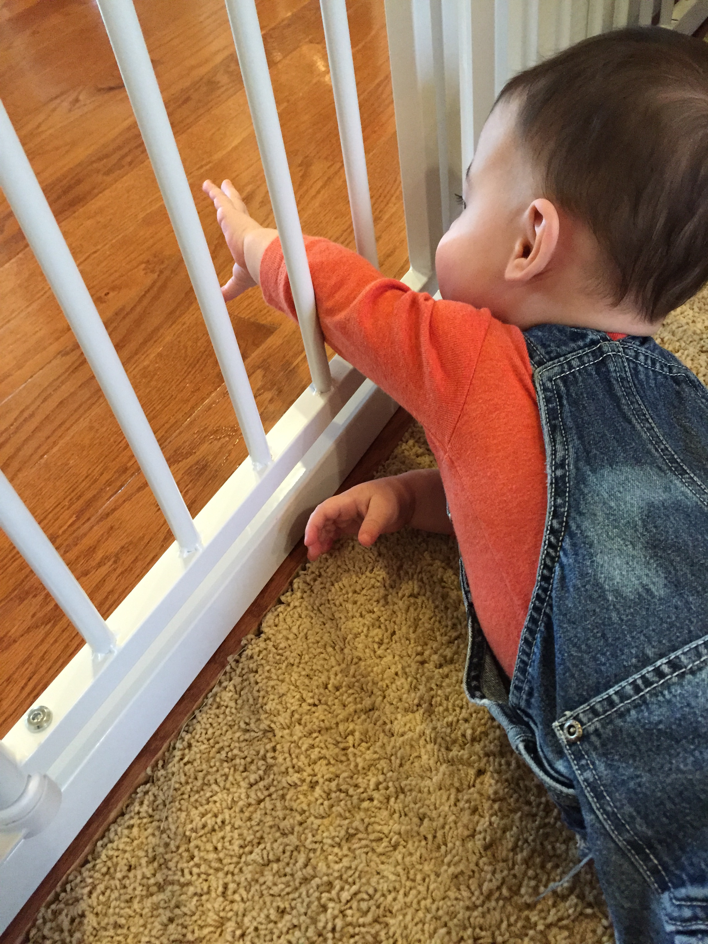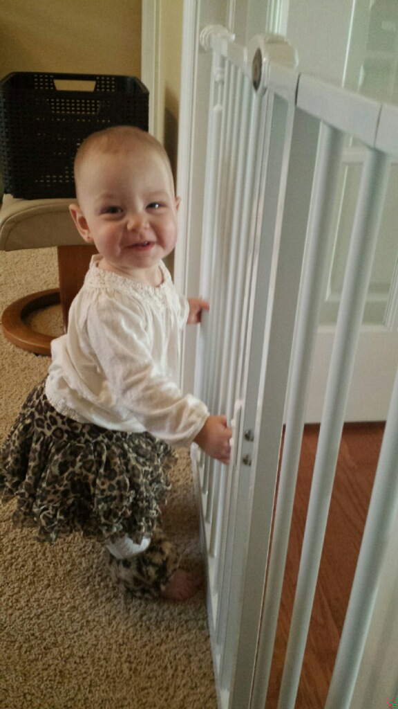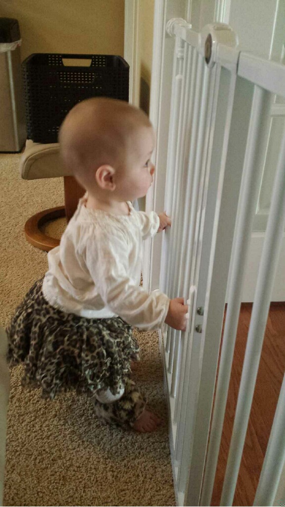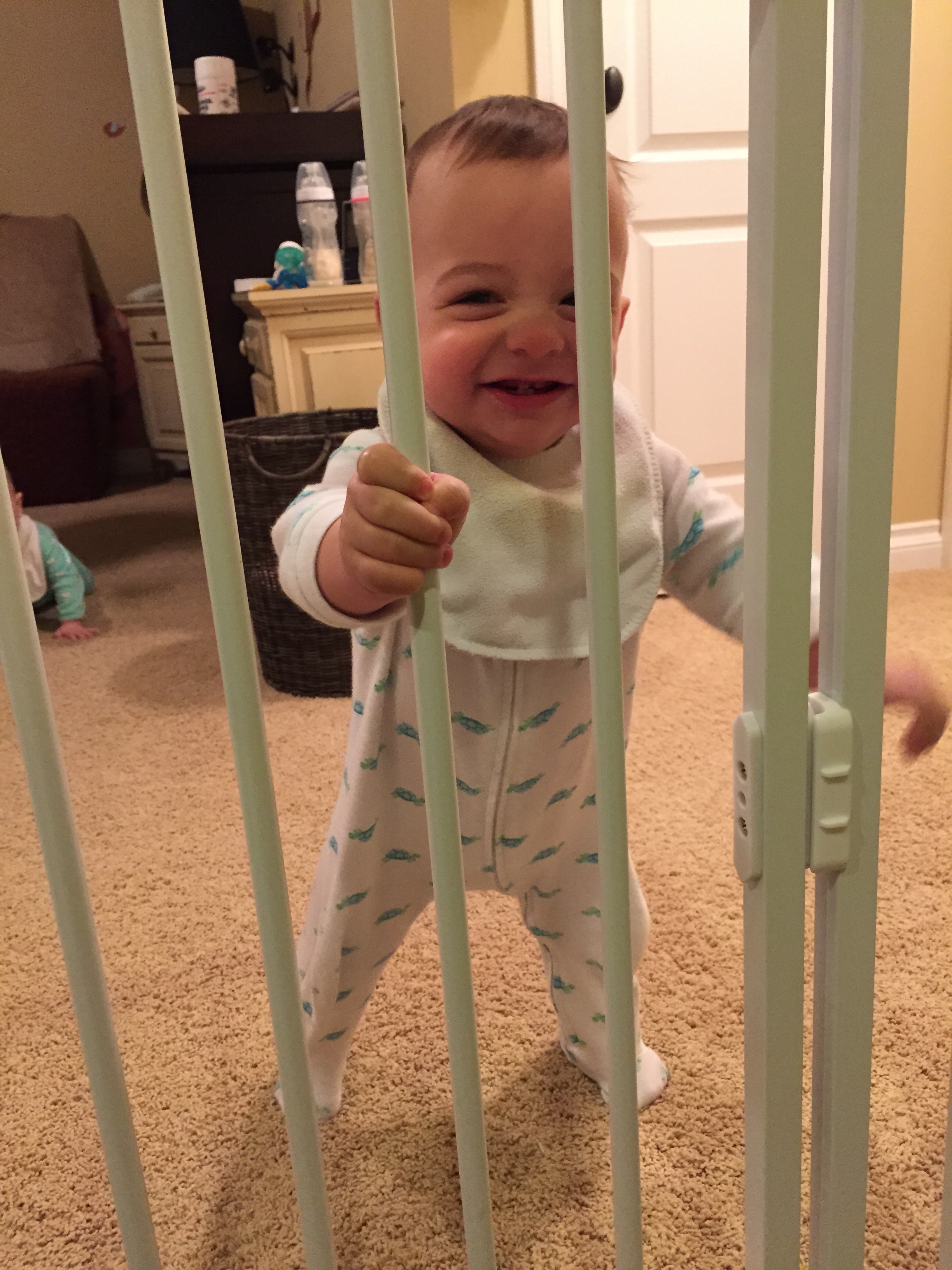 Here is trying to escape the playroom. I wonder who’s going to be first to try to scale the gate. (Kidding. We all know it will be Amaya.)