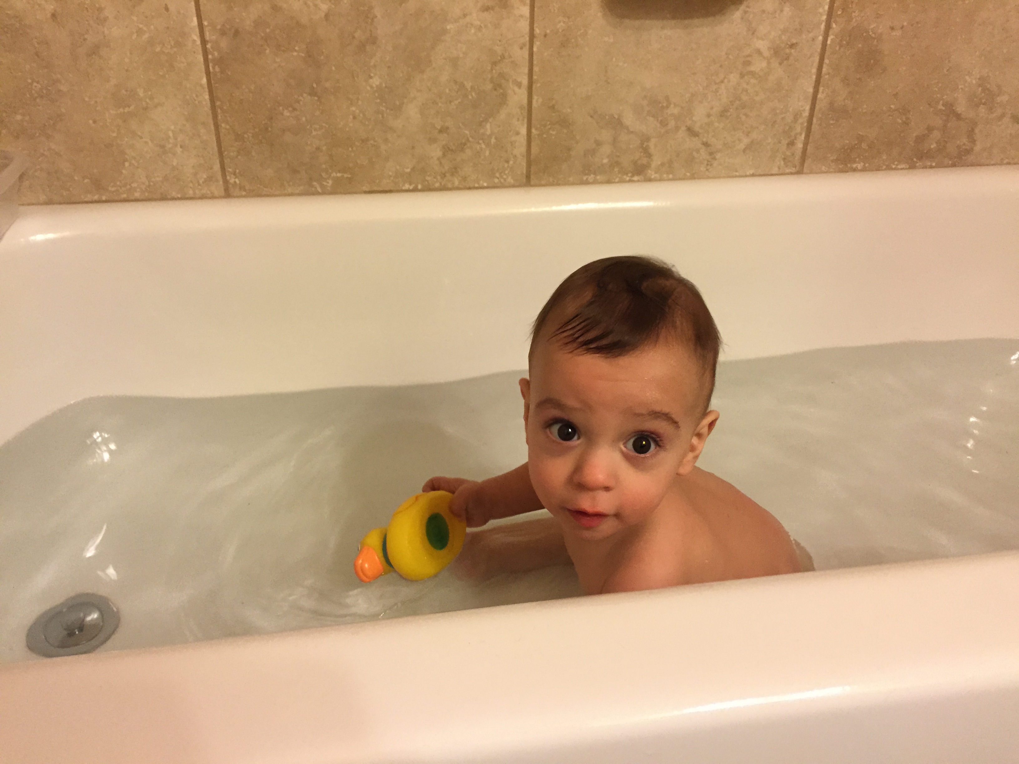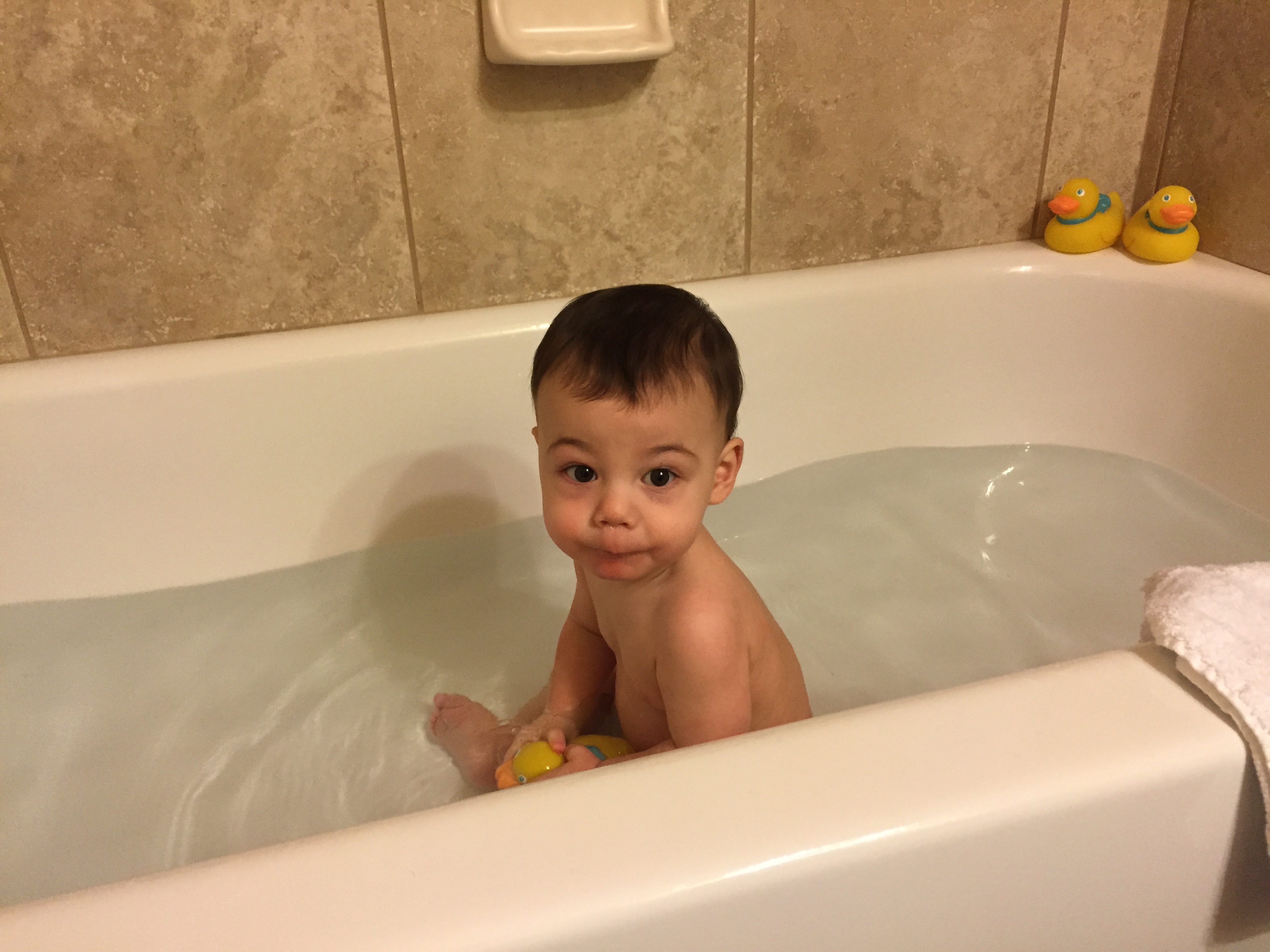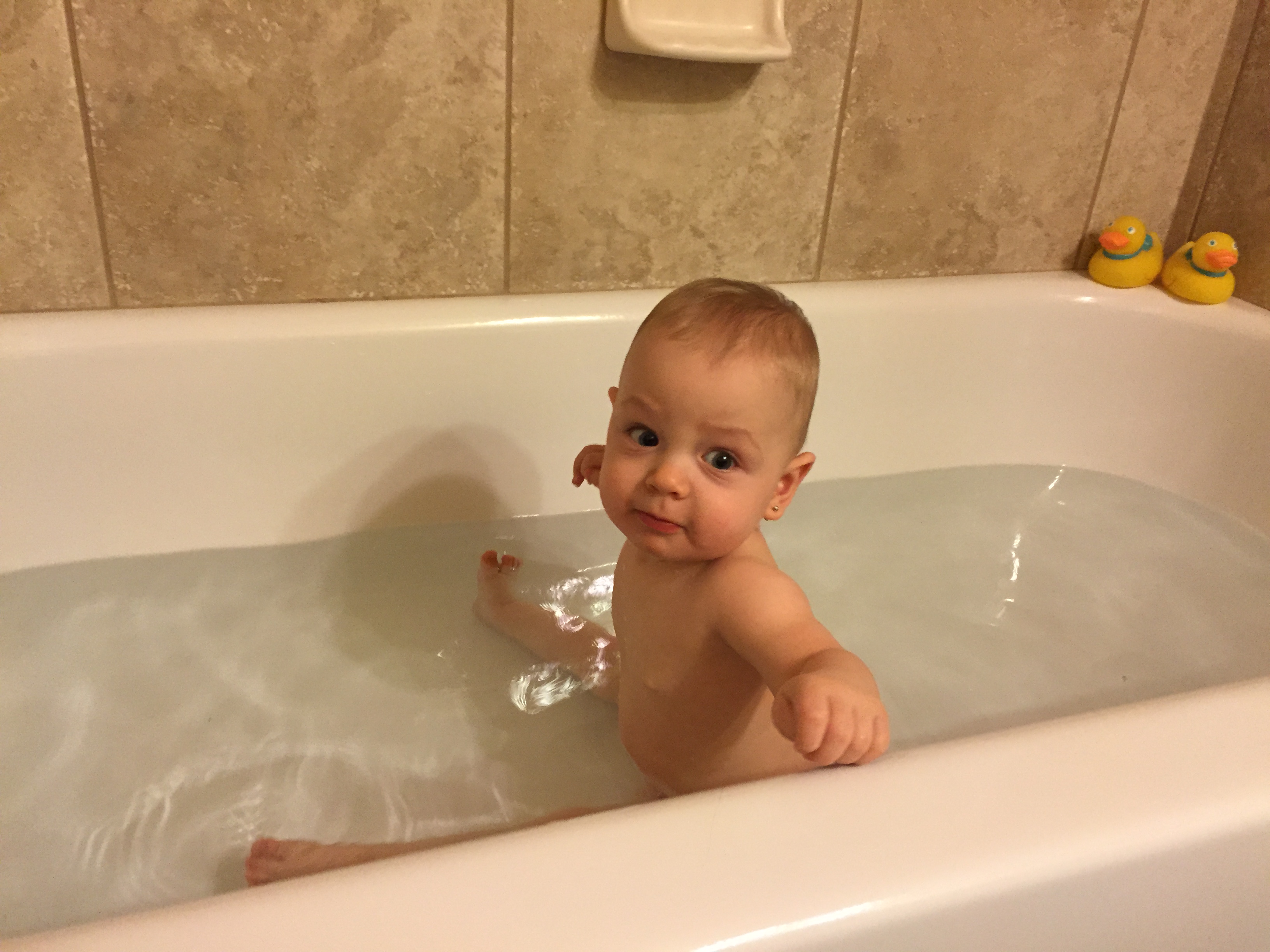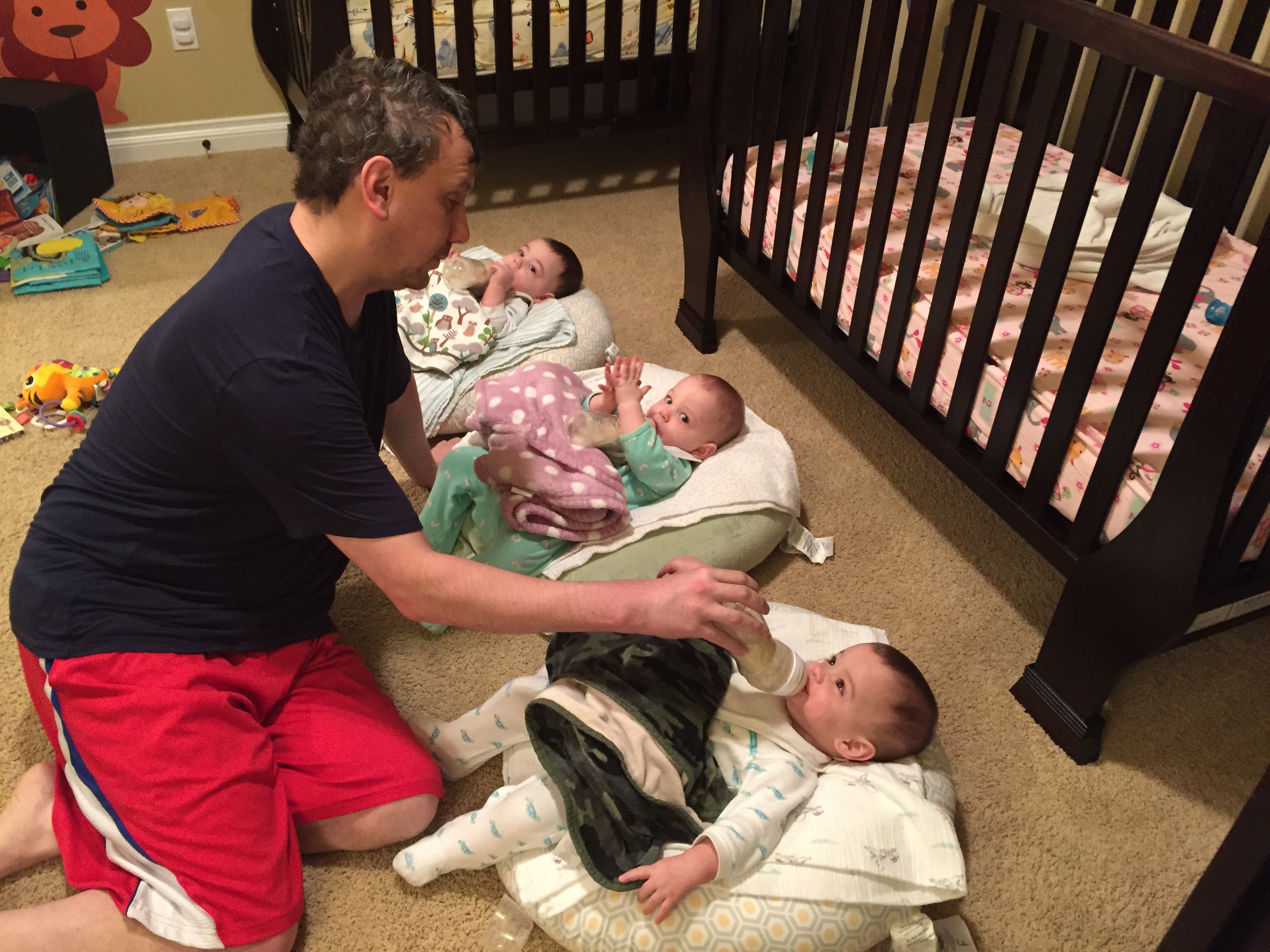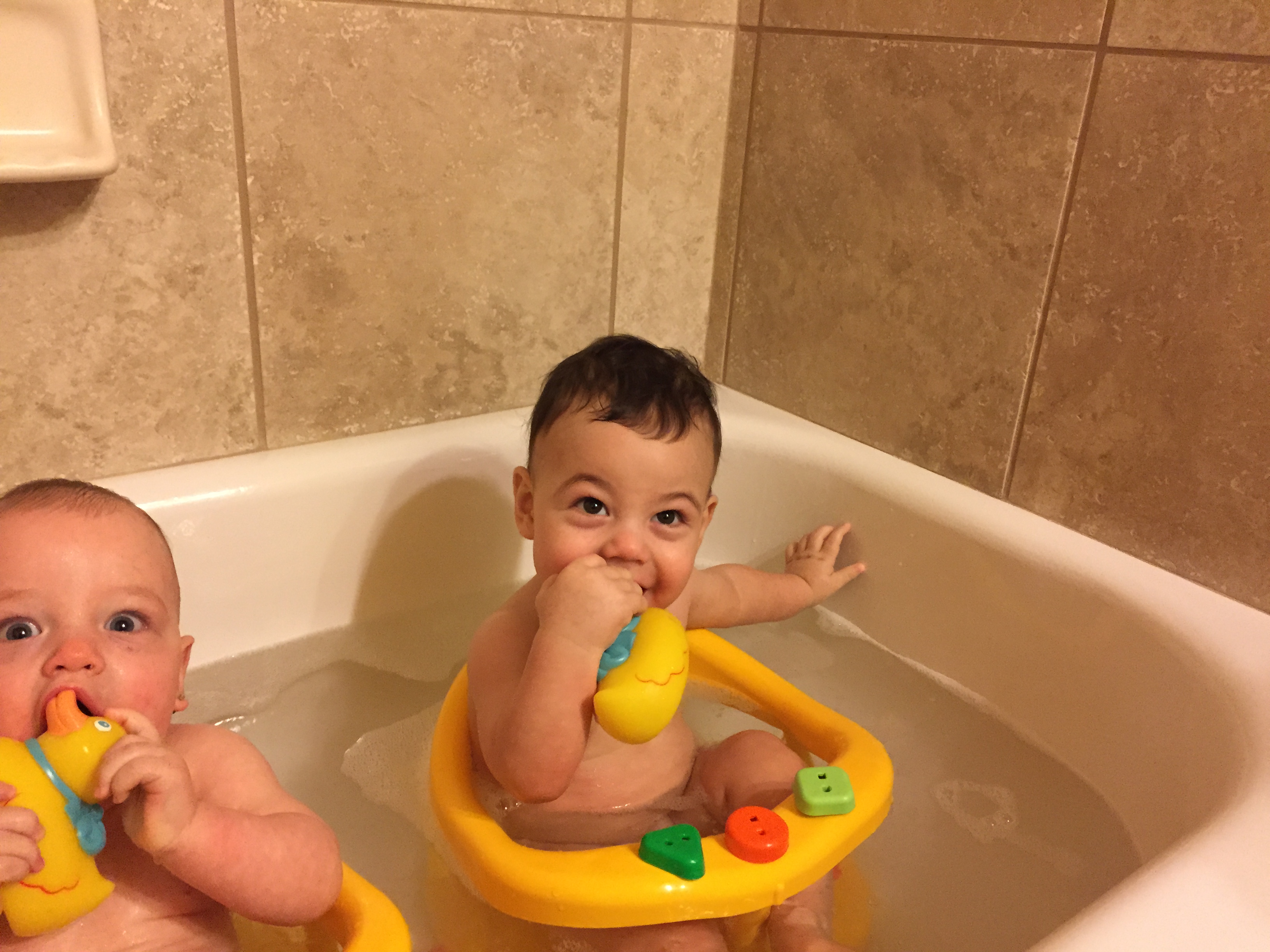 Overall, a big success. SSA are all sitting well enough to make it work but it’s definitely not a situation where I can turn away. I shut the babies I wasn’t bathing out of the bathroom so I could give all my attention to the baby in the bath. It felt more relaxed, though, because I could get each baby dressed outside in the nursery instead of applying lotion and diapering on blankets on the floor of the bathroom.