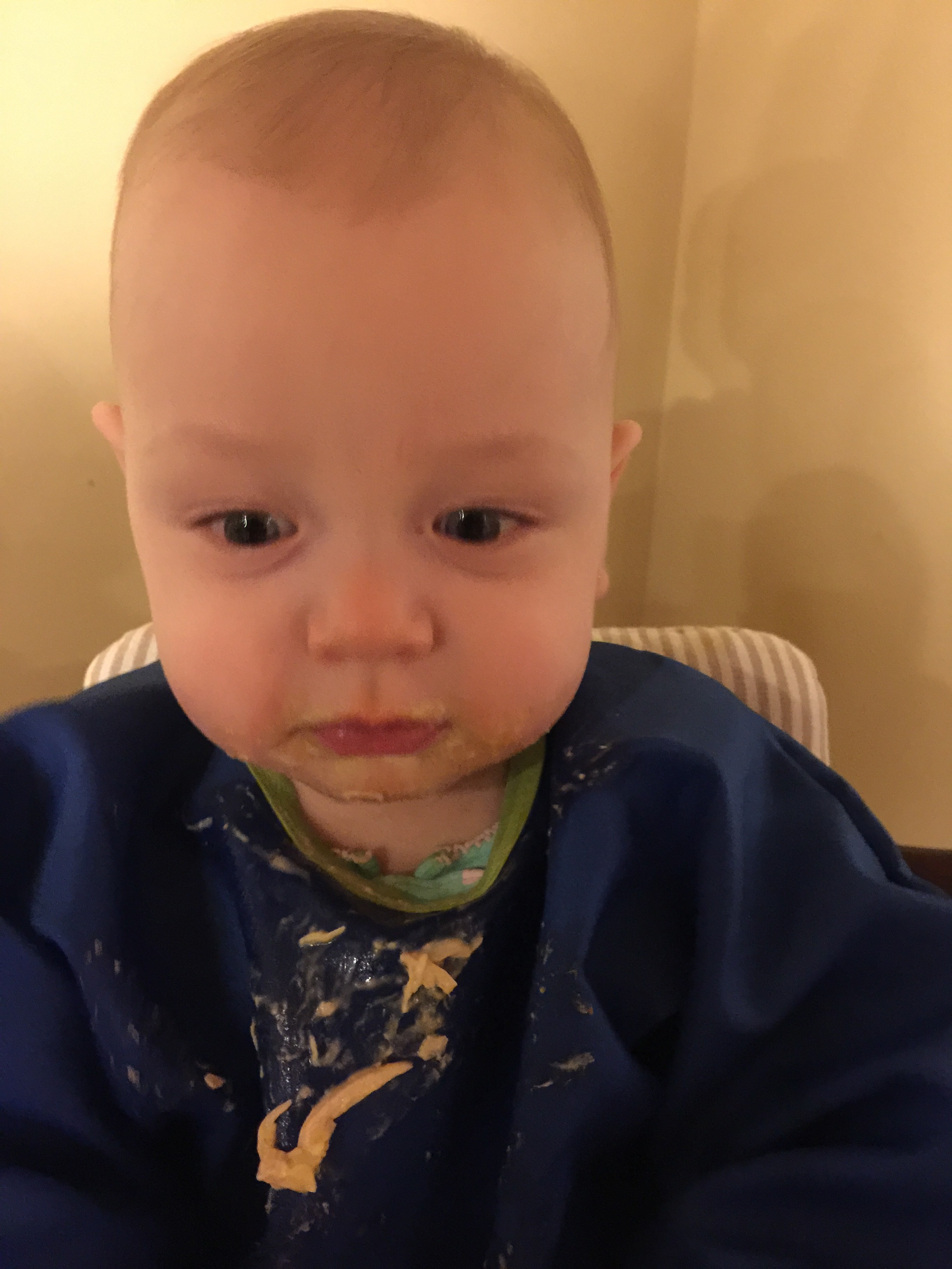 On Saturday evening, Jason shot a short video of me feeding SSA chicken in cream of mushroom sauce. They eat it best when I shred it, though this wasn’t necessarily the most efficient way to serve it. The chicken was followed by broccoli but, right now, I serve their protein before their veggie.