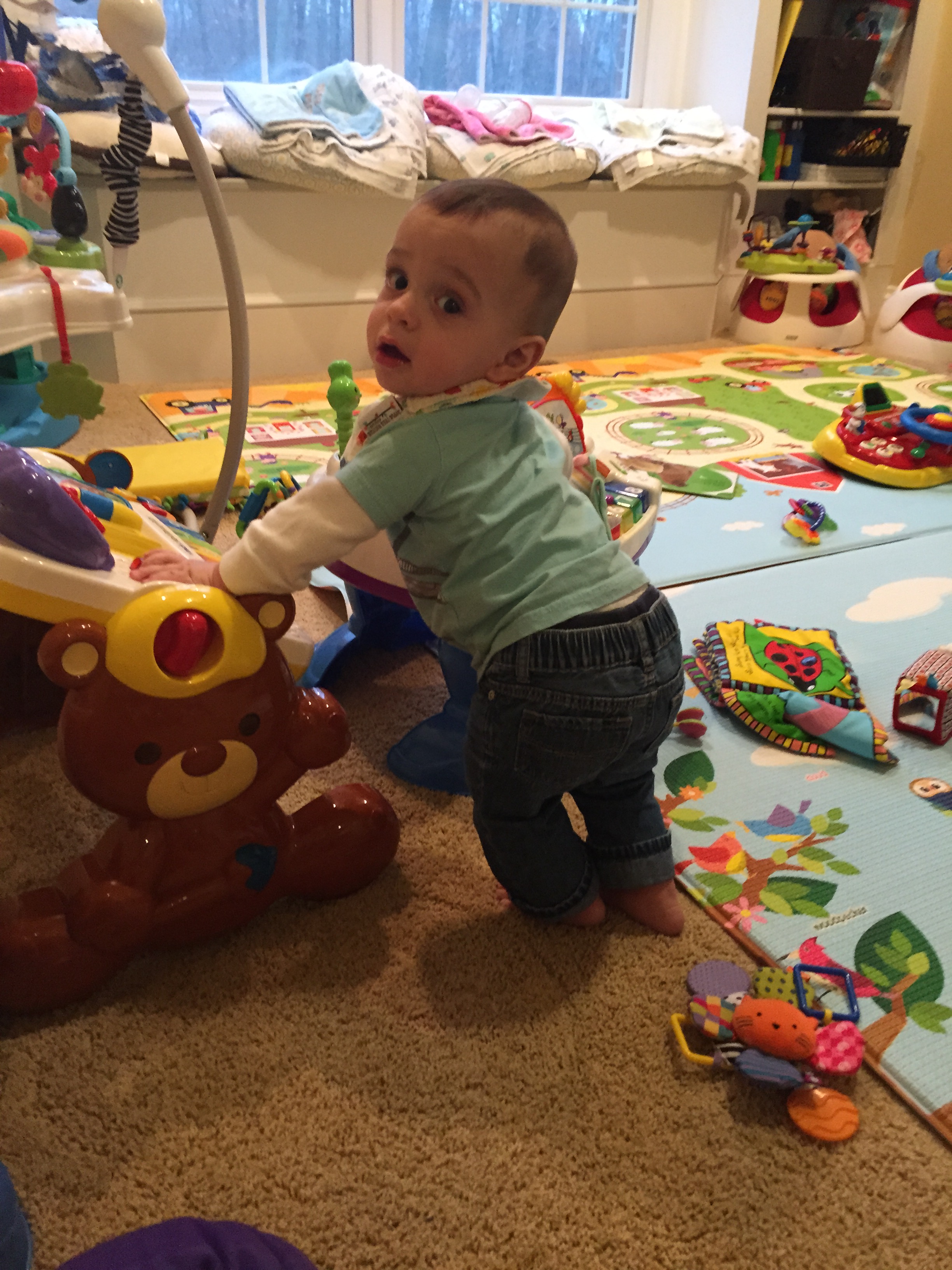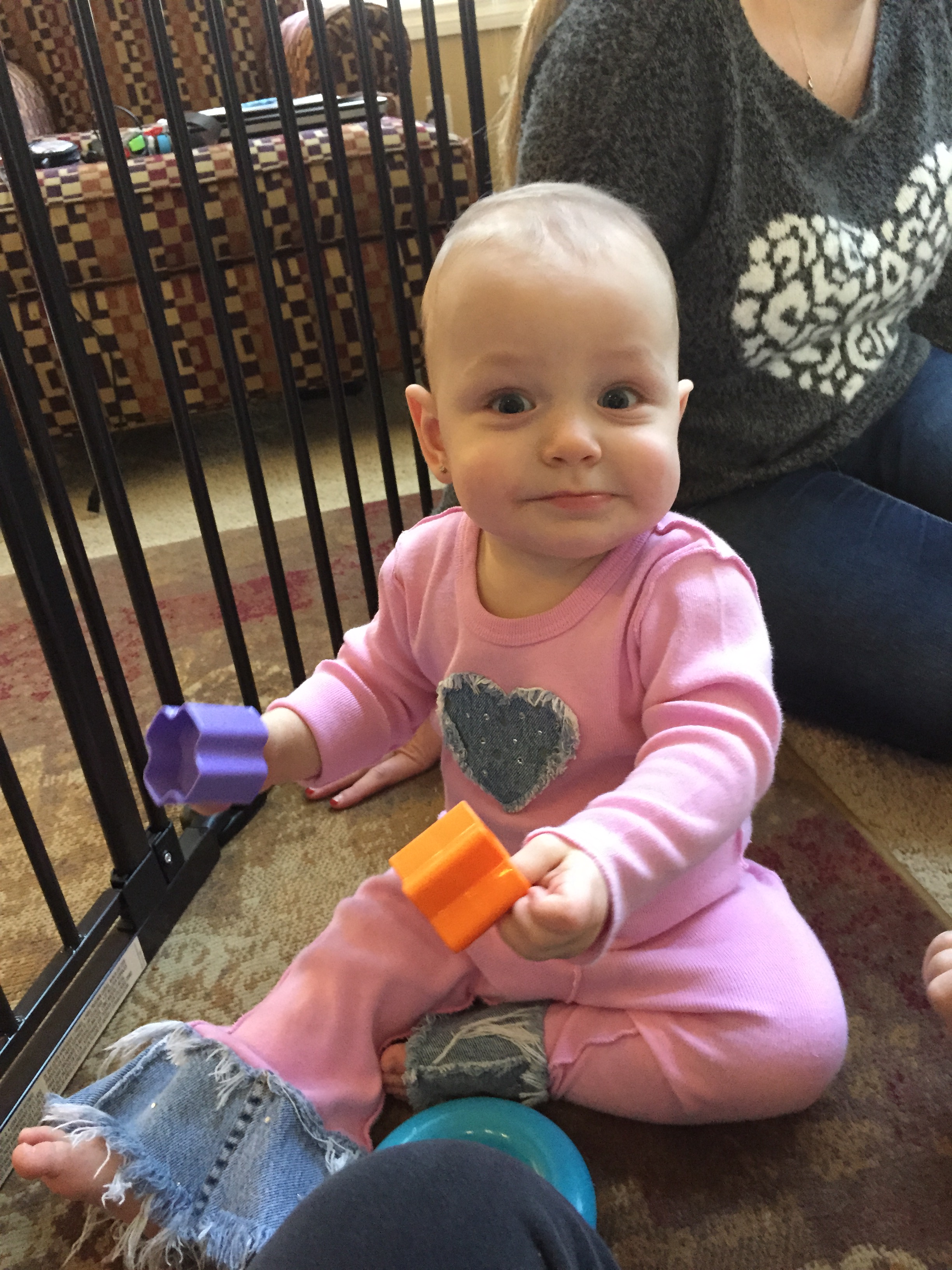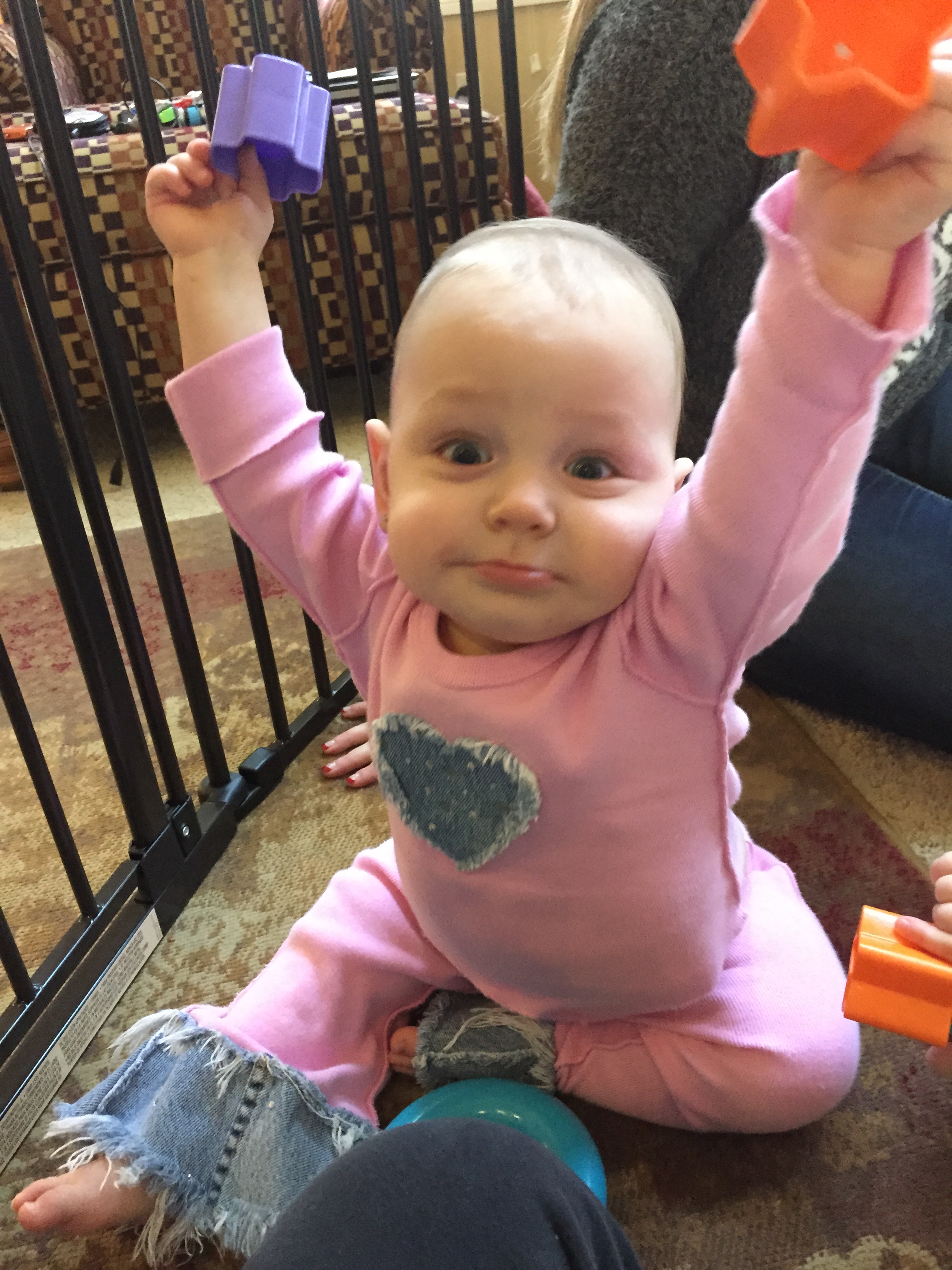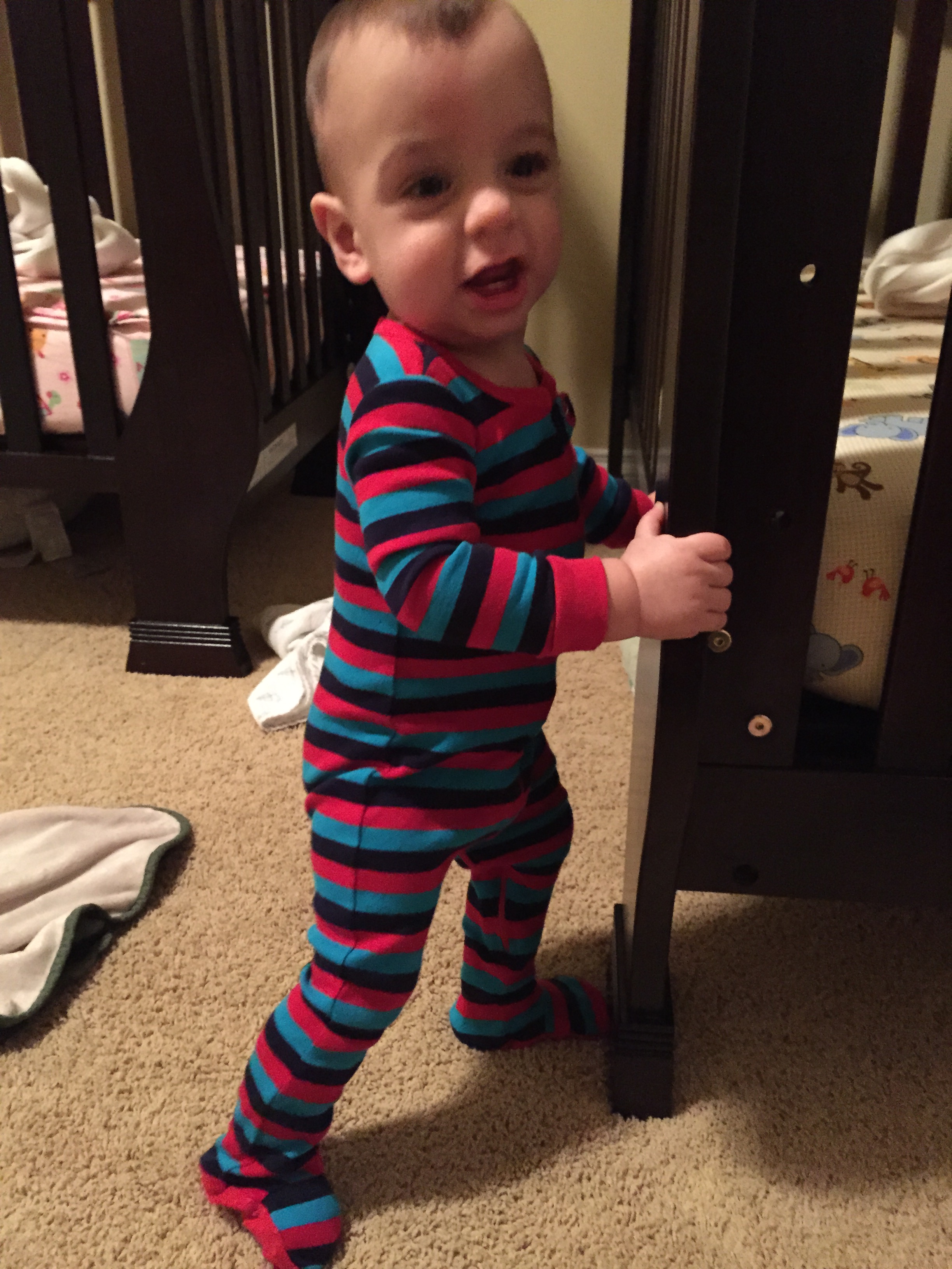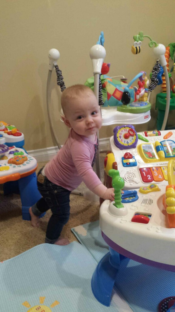 Amaya, on the other hand, is pulling up on anything and everything! And she’s very proud of herself. As she should be! 🙂