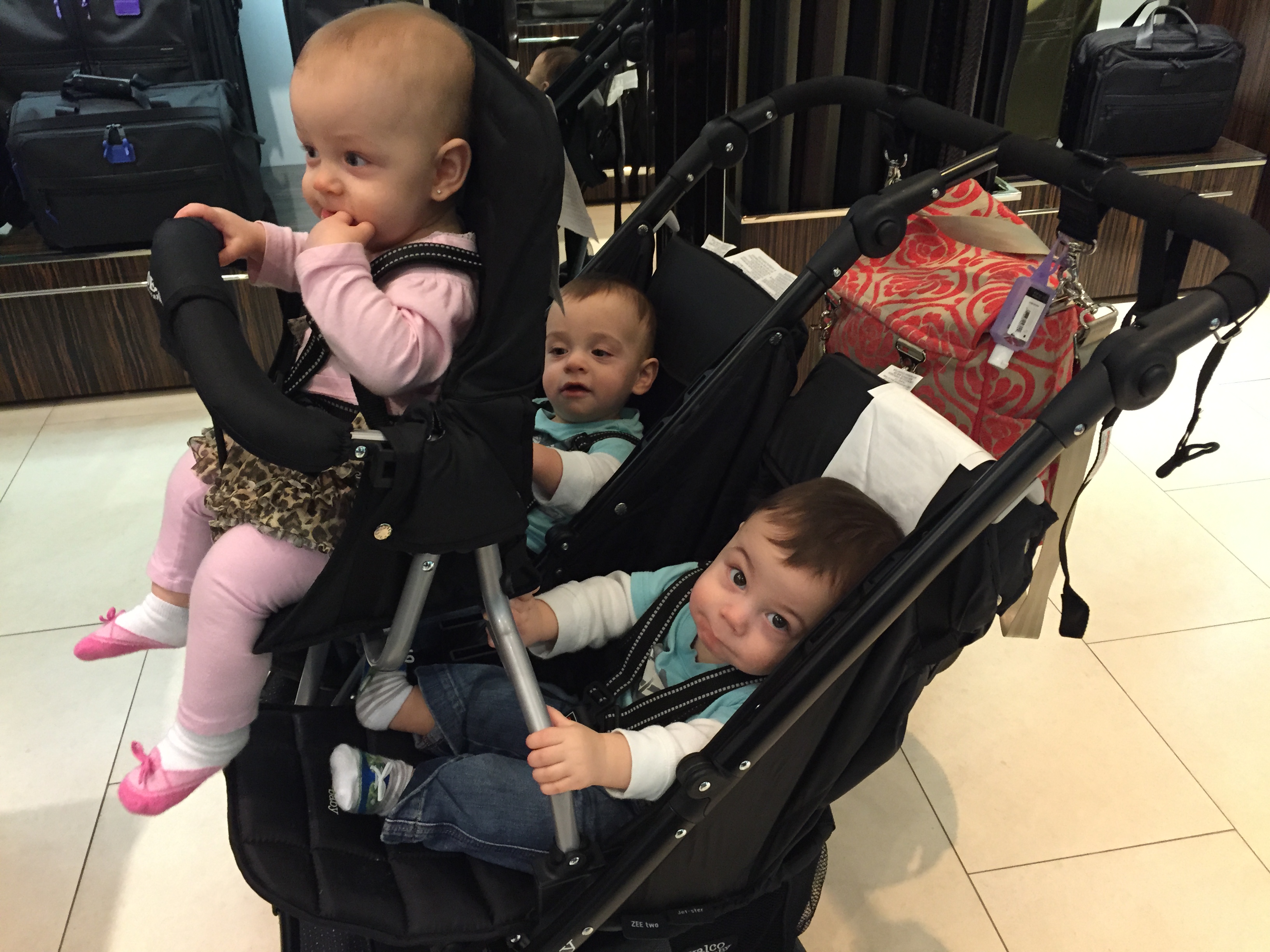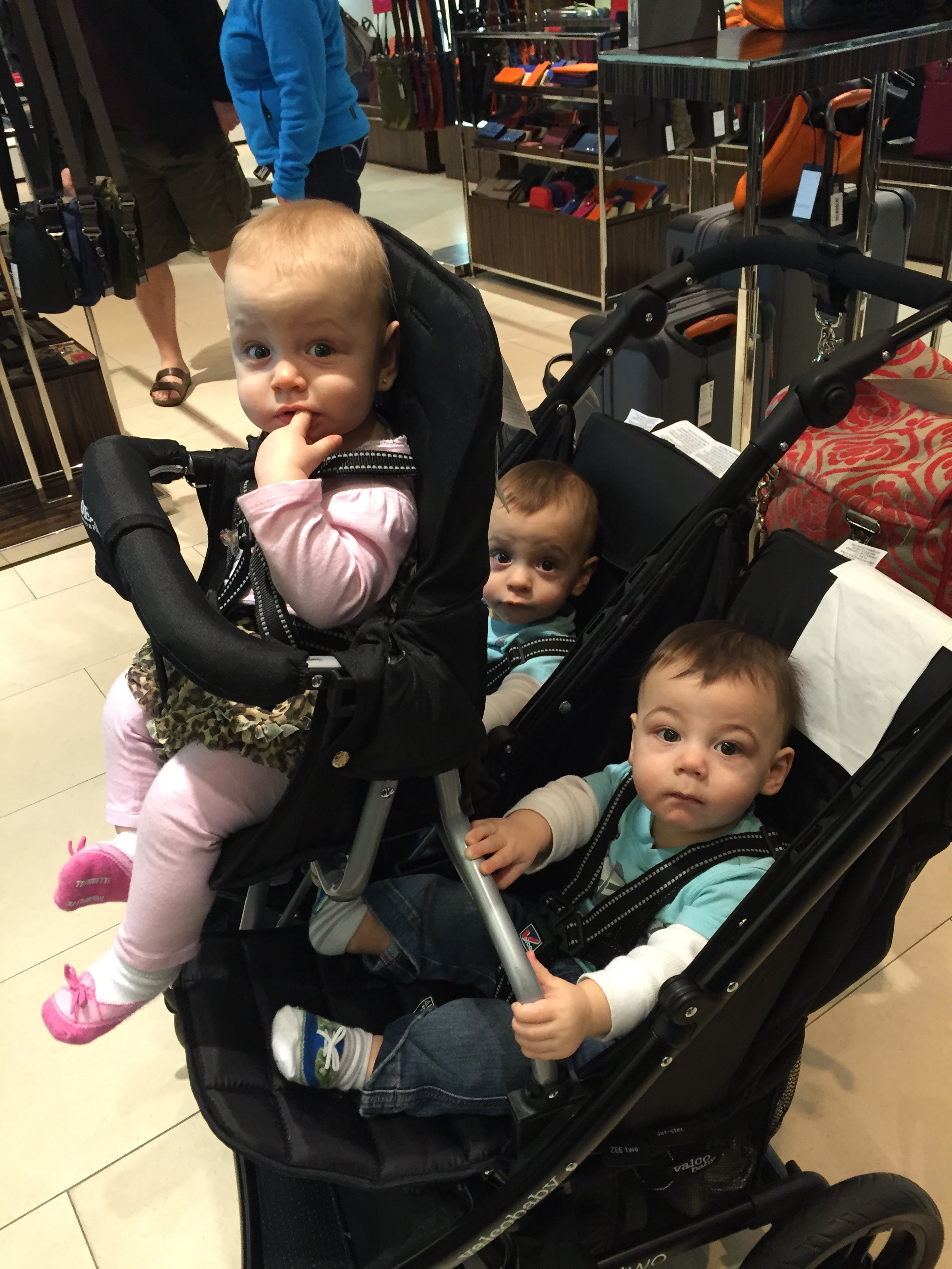 It’s almost better at the mall when it’s busy because people have less time to stop and talk and there are more distractions to divert attention from “OMG THREE BABIES.” I mostly don’t mind the comments, even the random rude ones, but I do hate when people will walk alongside me to talk about my family. I end up diverting into random stores to escape!