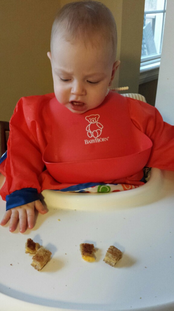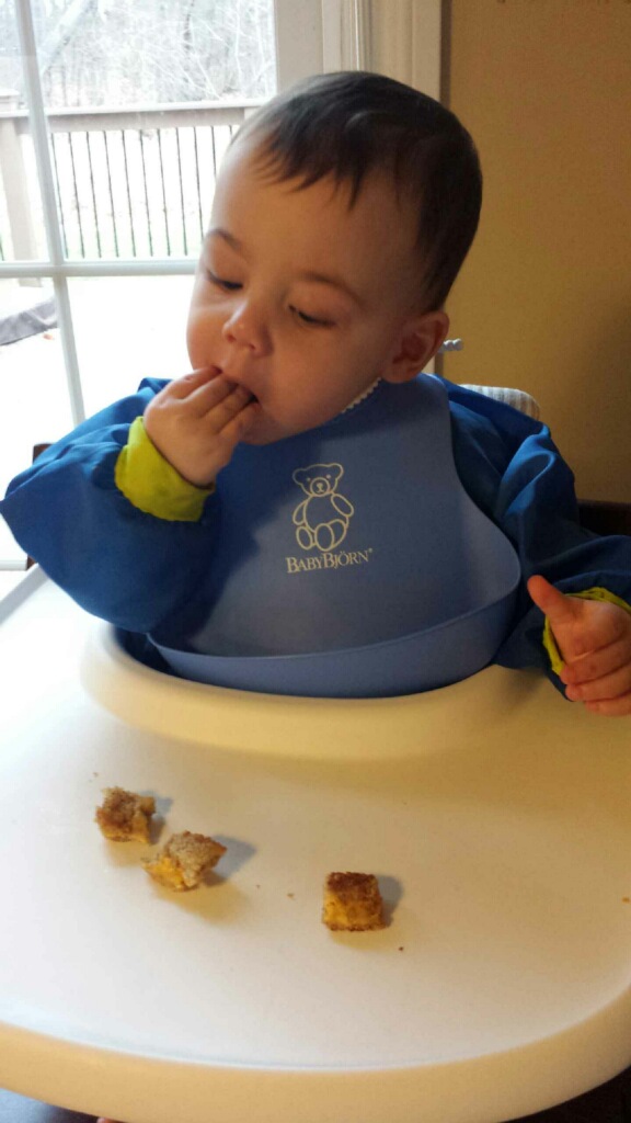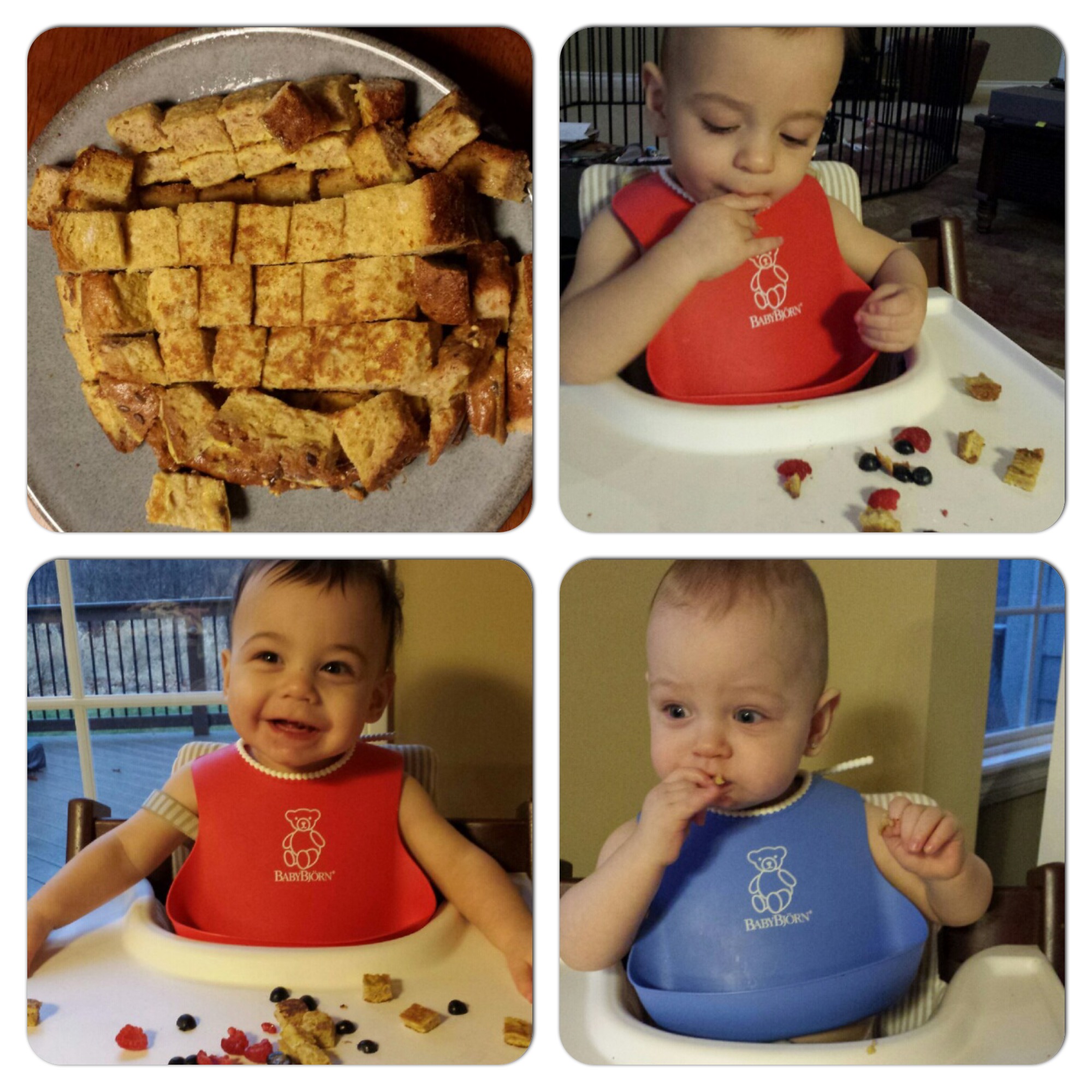 Foooooood! This past week we had french toast for the first time. Mmmmm, mmmm good. I’m sure it would be even better with sugar or syrup but they’ll have to stick with cinnamon for now.