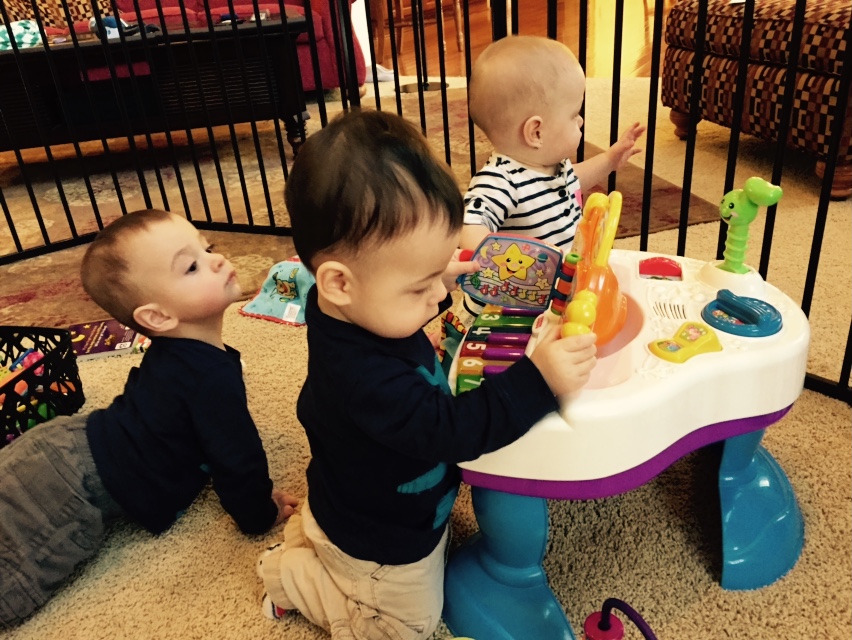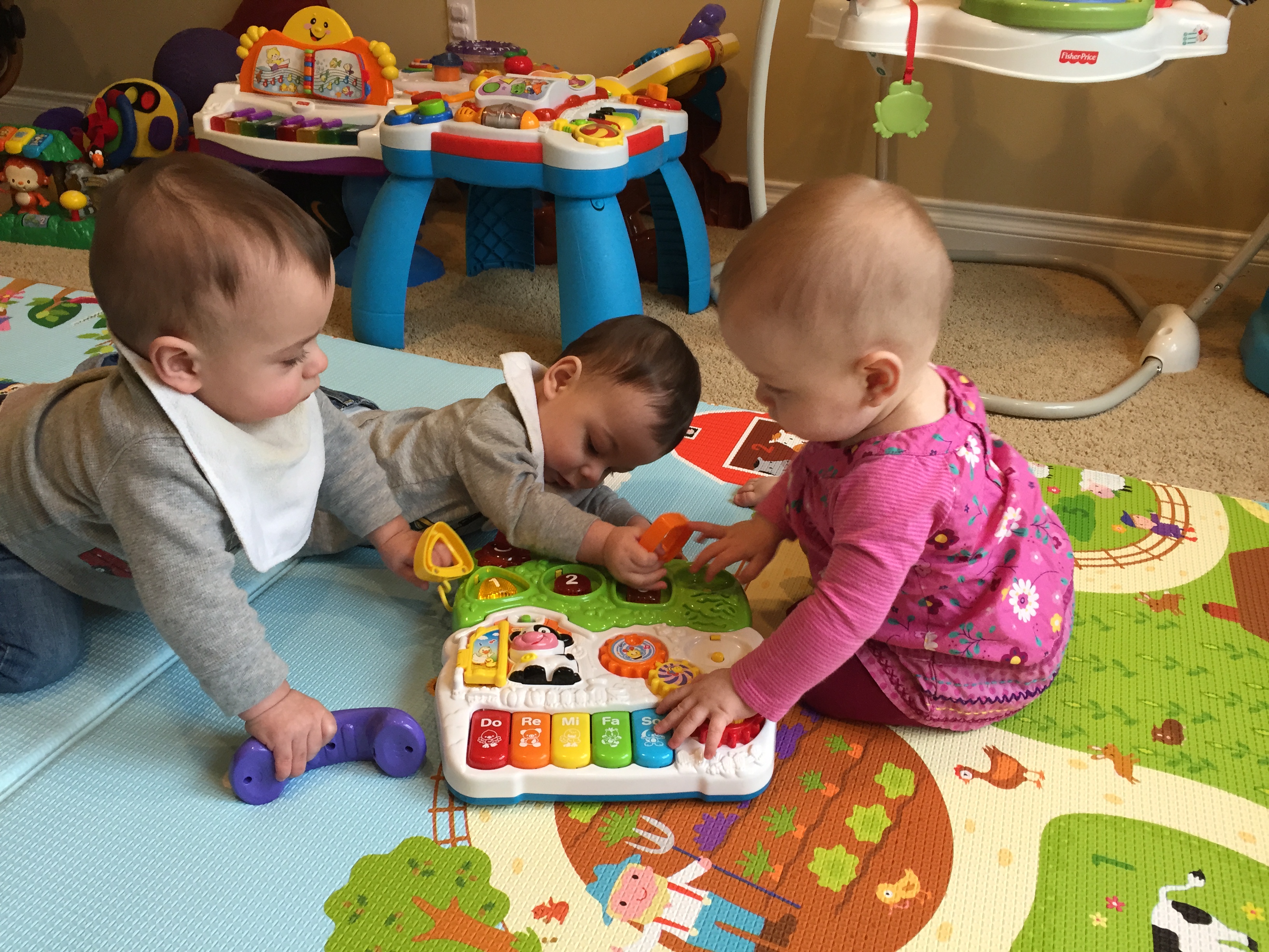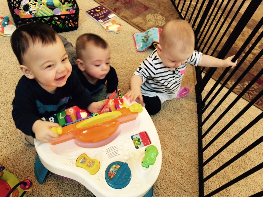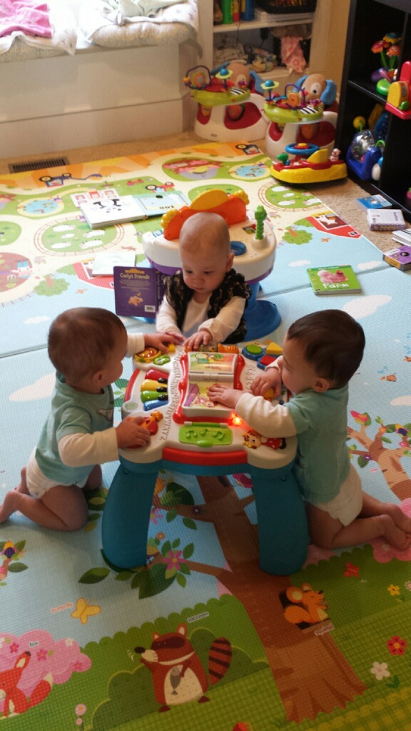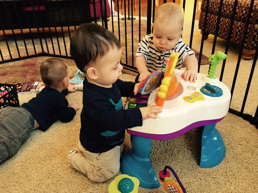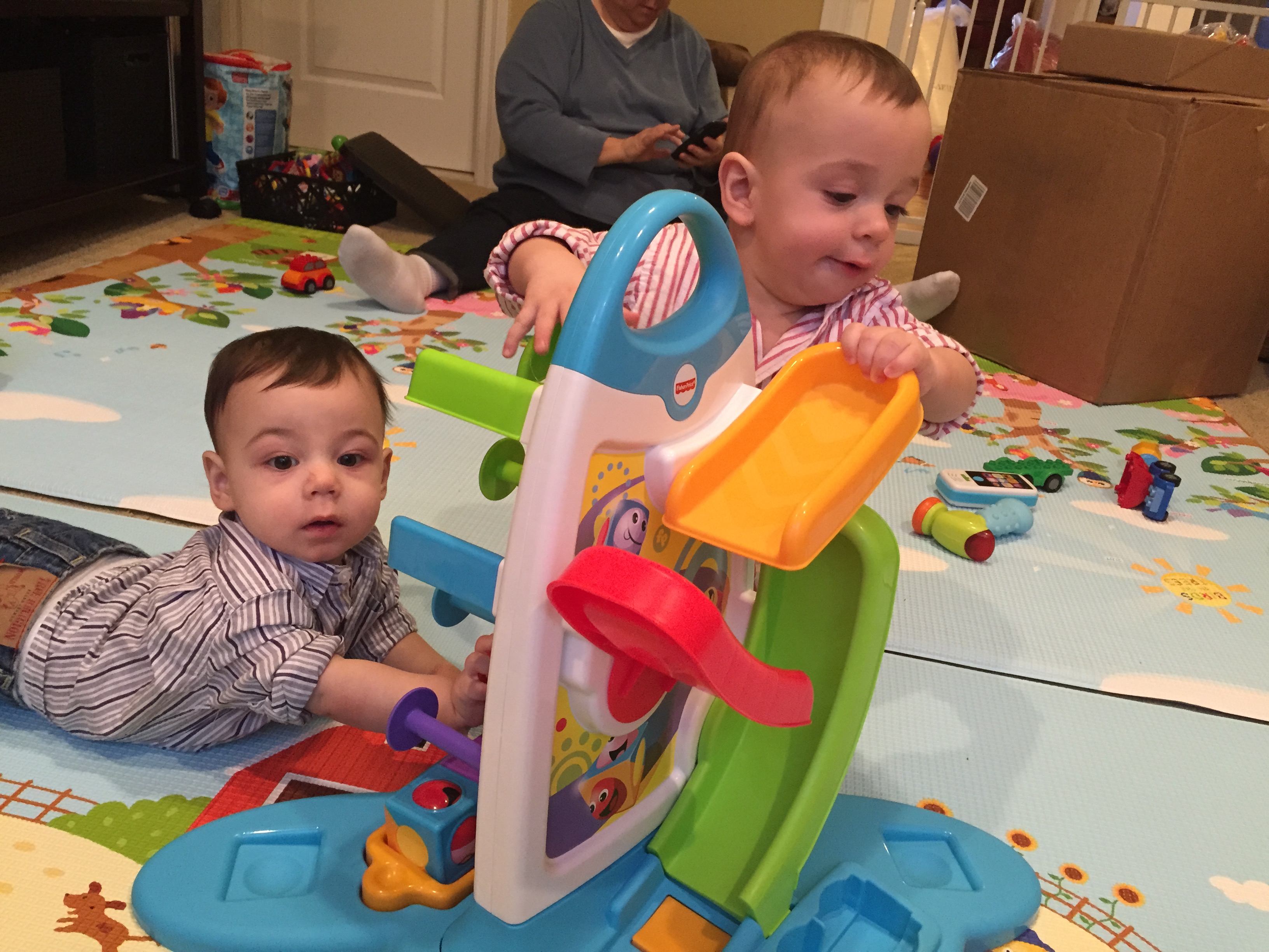 We had lot of fun this weekend. These kids are starting to get into everything and nothing gets in their way, not even each other.
