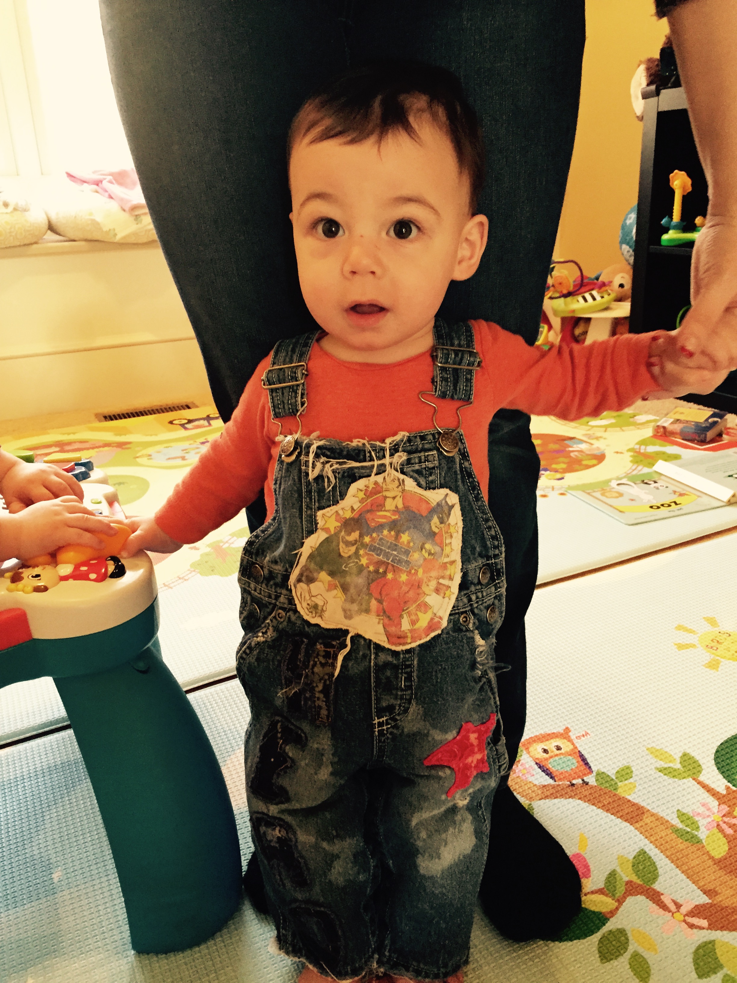 The boy’s had this longsleeve onesie with patches on the elbows and I finally realized that it went with these overalls. Hahaha. How awesome is this? Sammy wears it well.