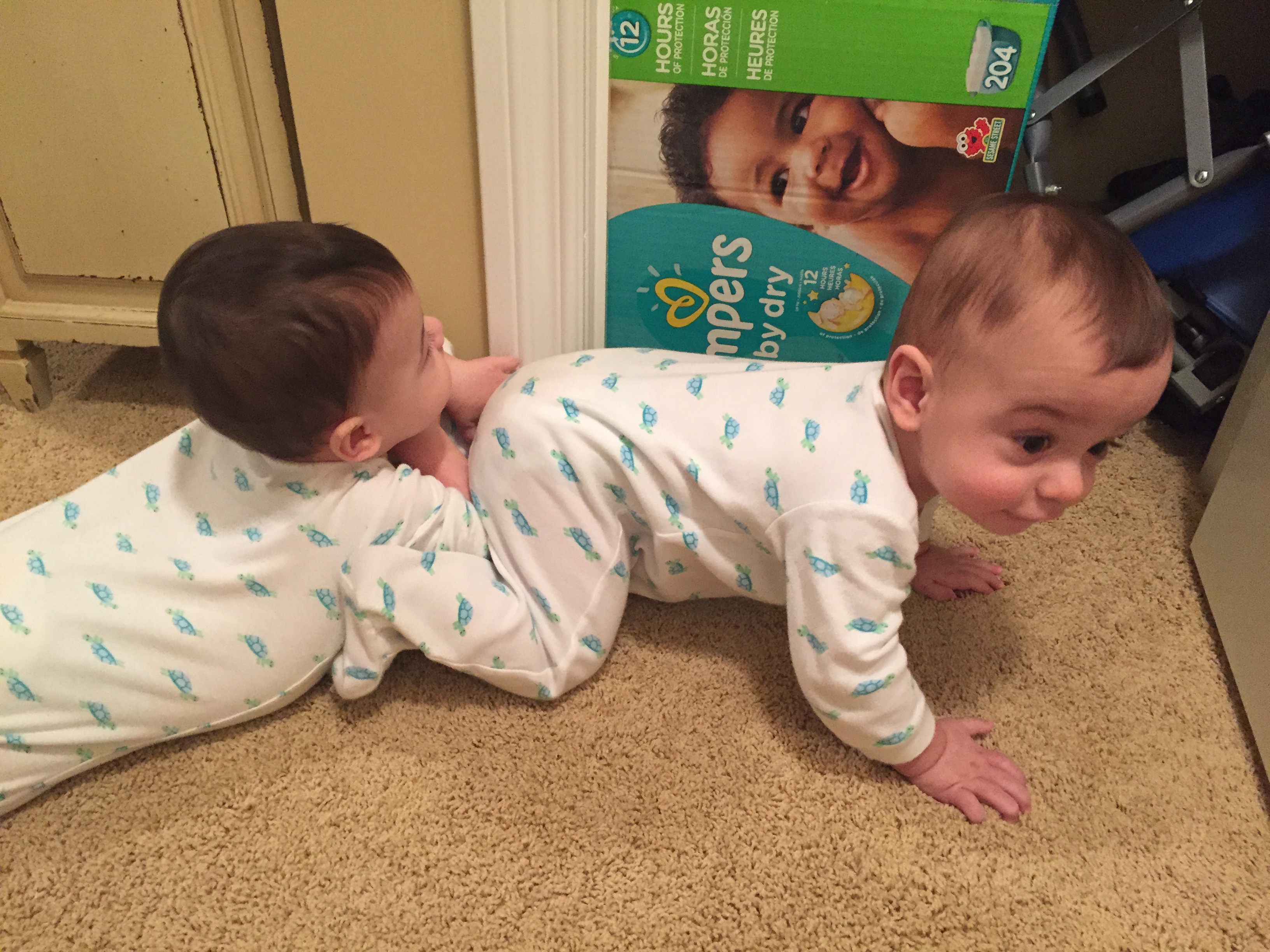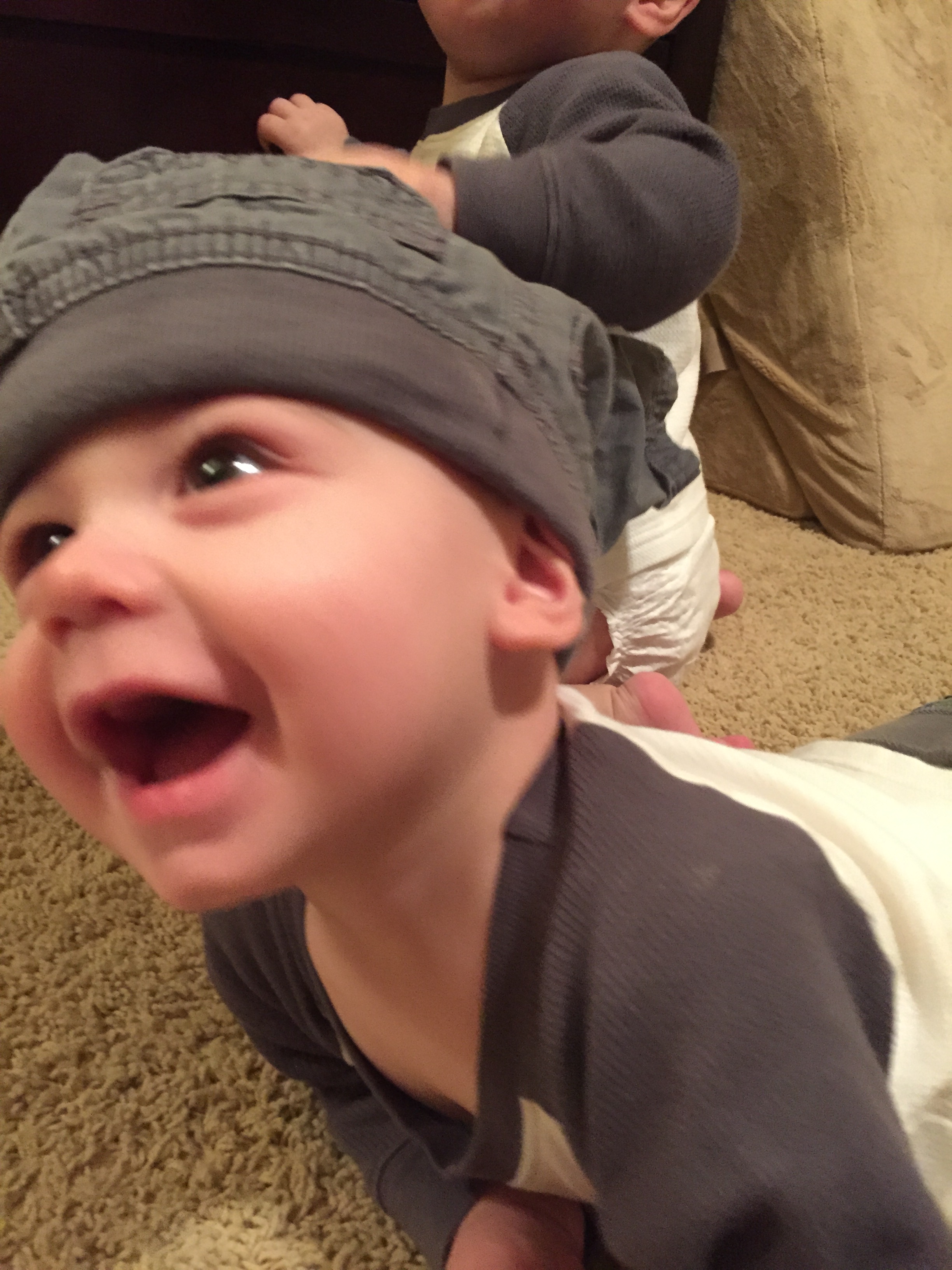 Steven is still working on transitioning from army crawling to crawling regularly. It’s good to see him on his hands and knees. (Sammy, too!)