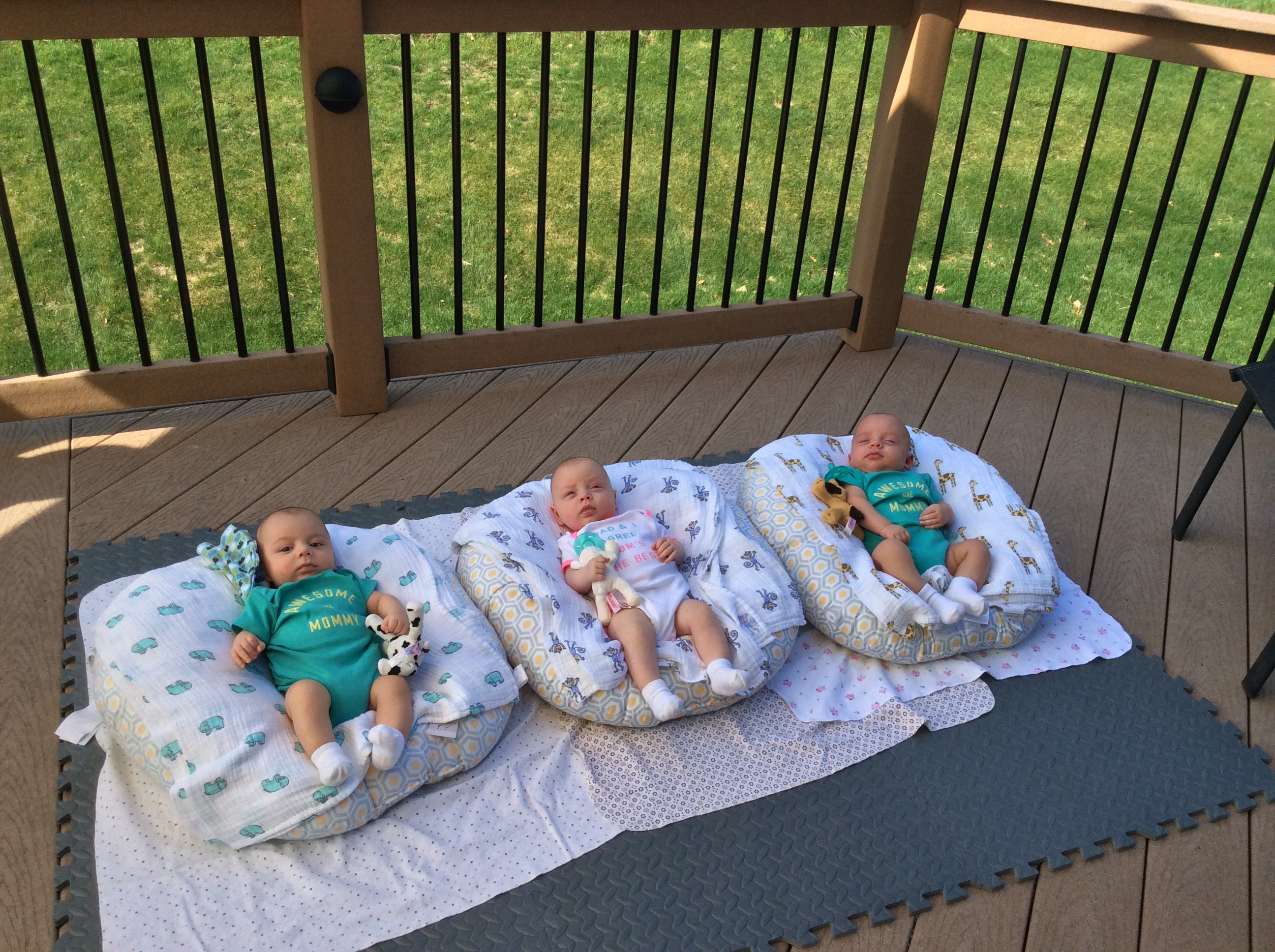And finally! We made a BIG change in the house! Over the course of 24 hours we (Jason, really) baby proofed our entire family room and kitchen so that Steven, Sammy and Amaya have more opportunity to really get around. Their playroom is great and the staple of their activity but they all loooooooove to go! go! go! and to explore and now they have the chance to do it regularly, instead of just when we happen to have 3 adults around. It’s a great set up!