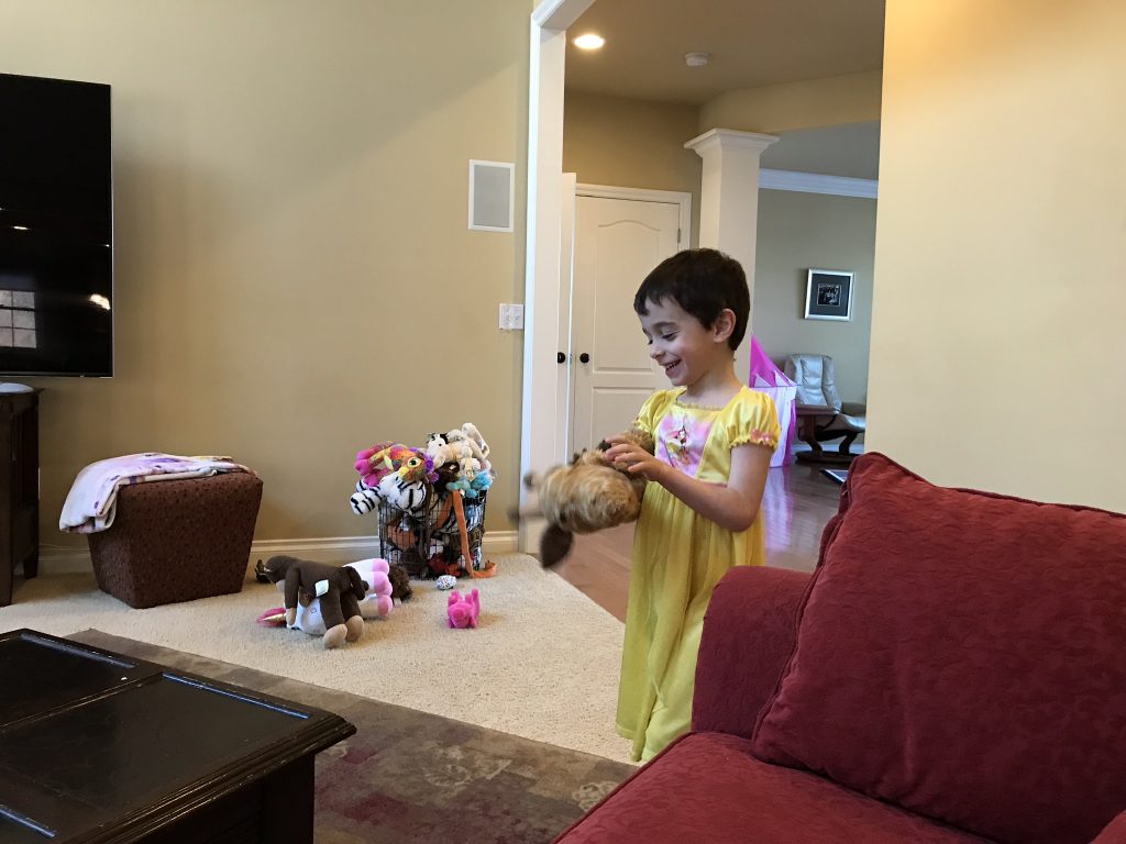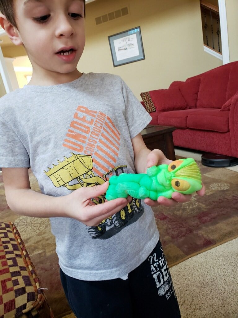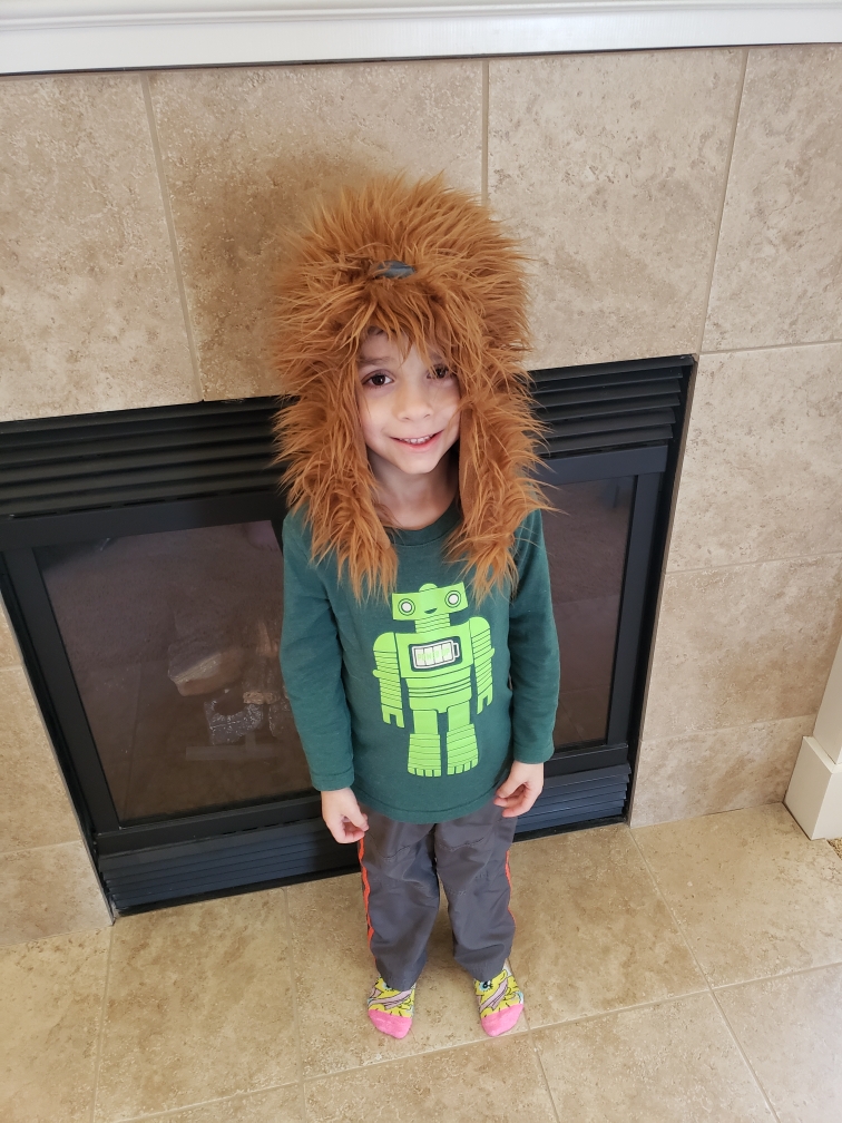 Usually he’ll say that he’s her daddy, though her age varies. The other day, Steven told me something was “Sheep-a-rific!” “That’s what I say when something makes me happy!” (Later he told me that Saturday would be “Family-rific” because he’d get to spend the day with his family.) And, yes, she’s a monkey except that Steven designated her a “sheep” ages and ages ago so that’s just how it is.