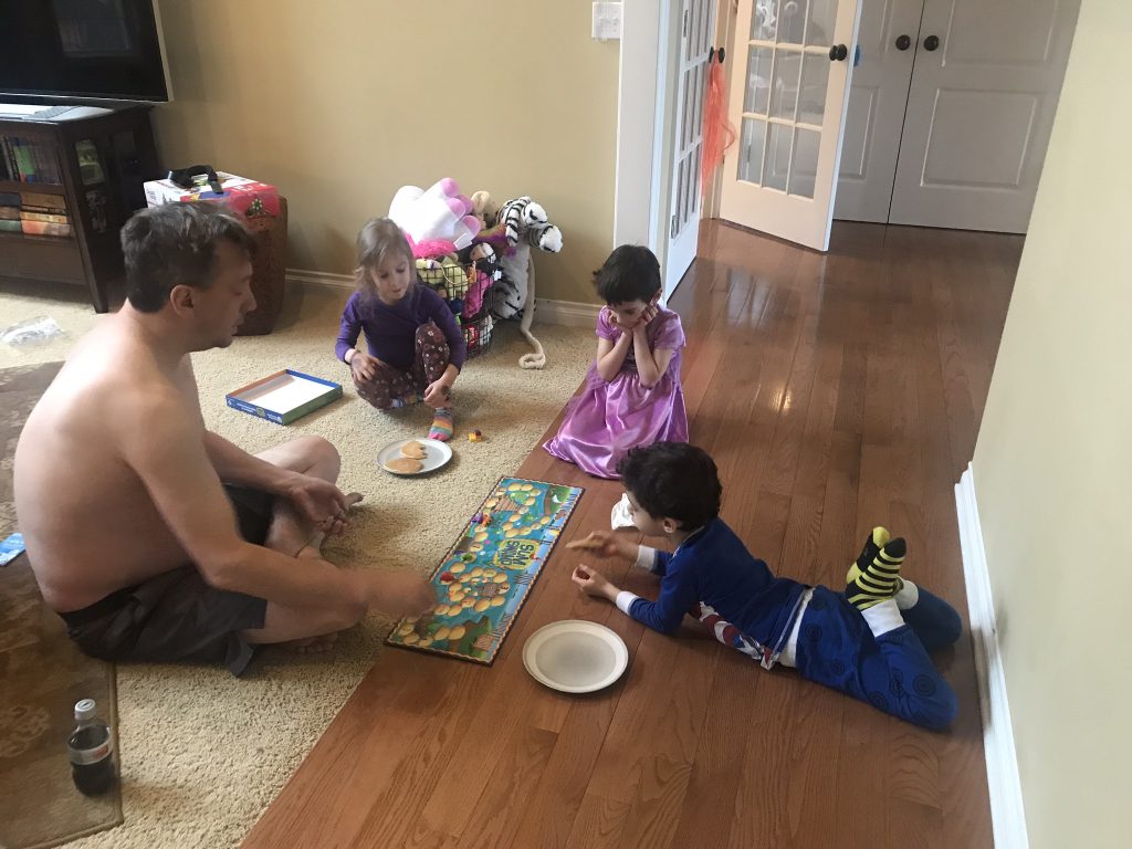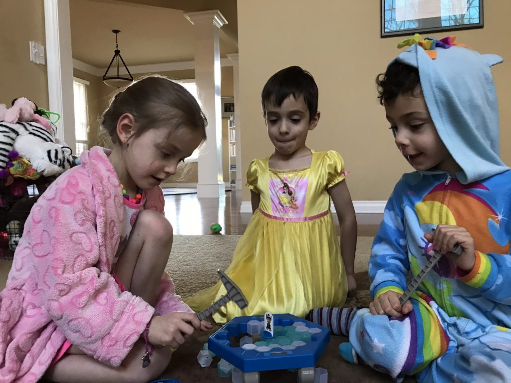 Don’t Break the Ice. This is one of Steven’s staying-in-bed prizes so he tries to make up his own rules like “Skip-a-turn” doesn’t apply to him.
