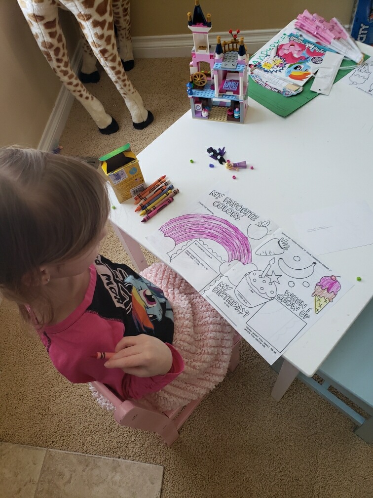 Amaya is so dominant at home but she’s not an alpha girl at school, which is interesting. But the teachers have shared that there are some very strong personalities in their classroom. Amaya plays with all of the other girls in the class and is extremely independent, just like at home. While Amaya can be quick to cry when upset at home, she’s less inclined to cry at school but she will sulk and give her teachers the silent treatment (with a glare) if she isn’t happy with what’s going on. Amaya is the the first one to the table when there’s any art to do and she has phenomenal fine motor control.