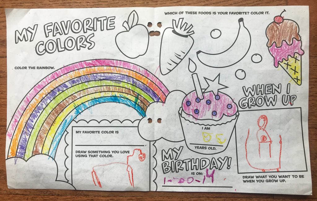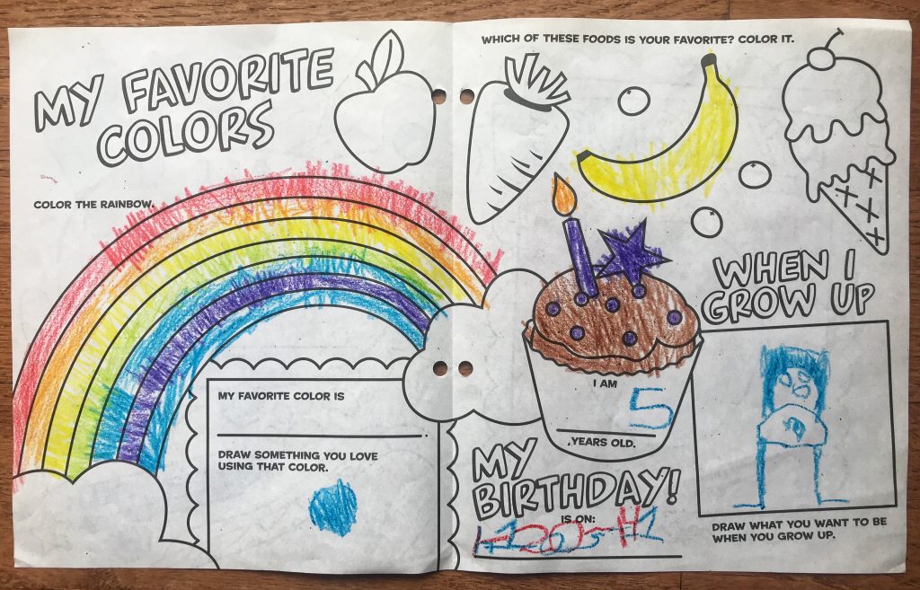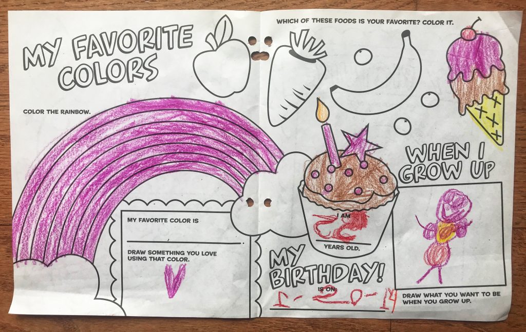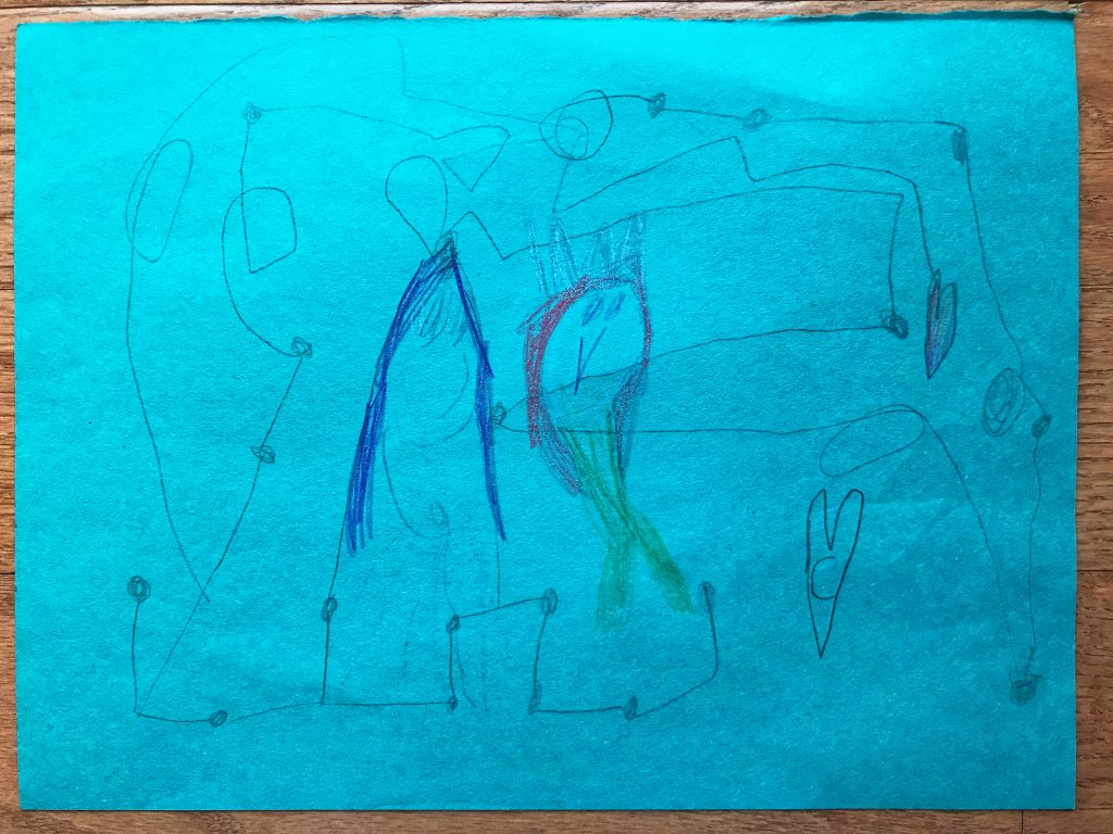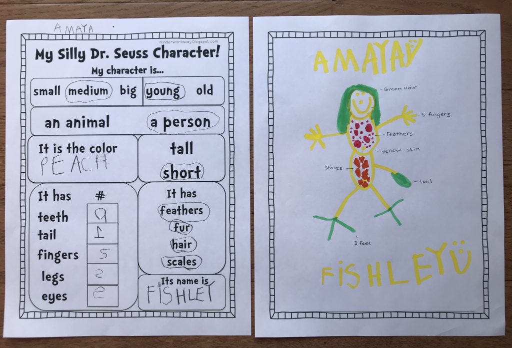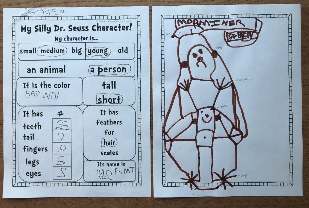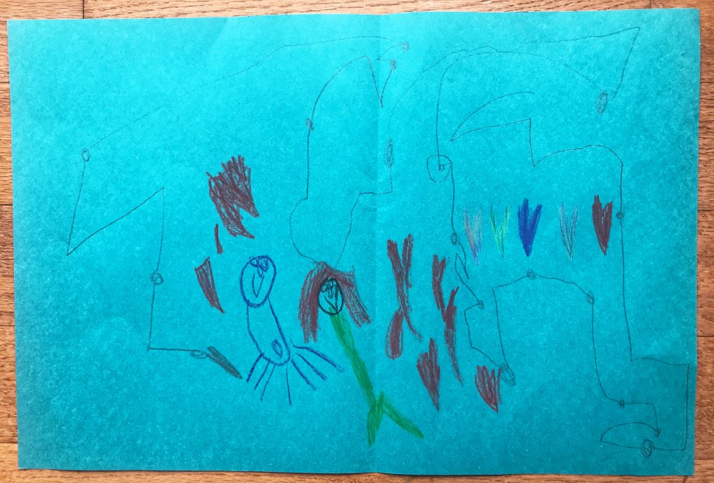 Steven is the engineer in the classroom. He builds cities with blocks all over the classroom and is first to head toward the building materials. He’s great with independent play but sometimes his energy can create distractions in large group play. Steven gravitates toward the more outgoing kids in the room and his teachers said he’s one of the kids most likely to follow his own path rather than be swayed by peer pressure. He’s been working on managing his temper and there have been a few times in recent weeks where his teachers saw him get angry but he was able to collect himself and reign it in before exploding. I’m so proud to hear that! Steven’s teachers also know all about his sheep friend, Morminer, and artwork of her has been a regular theme in the classroom this year.
