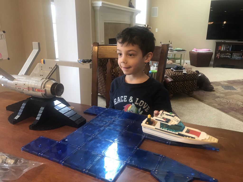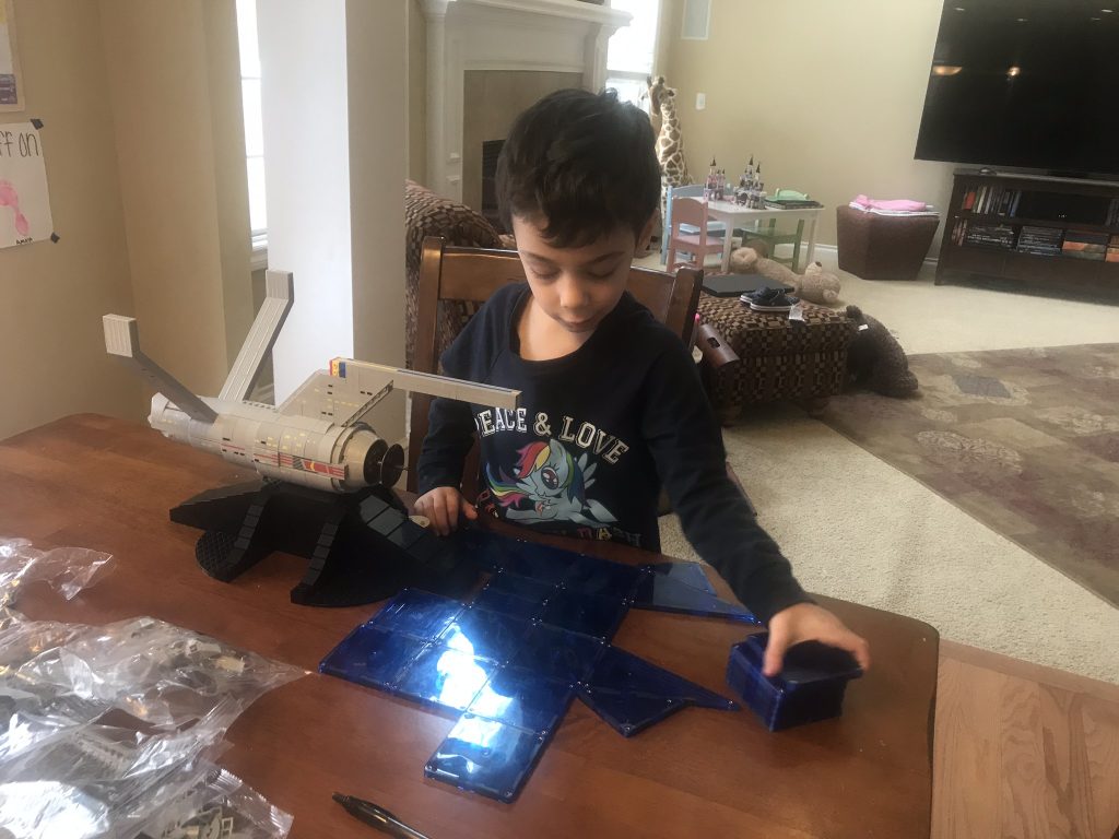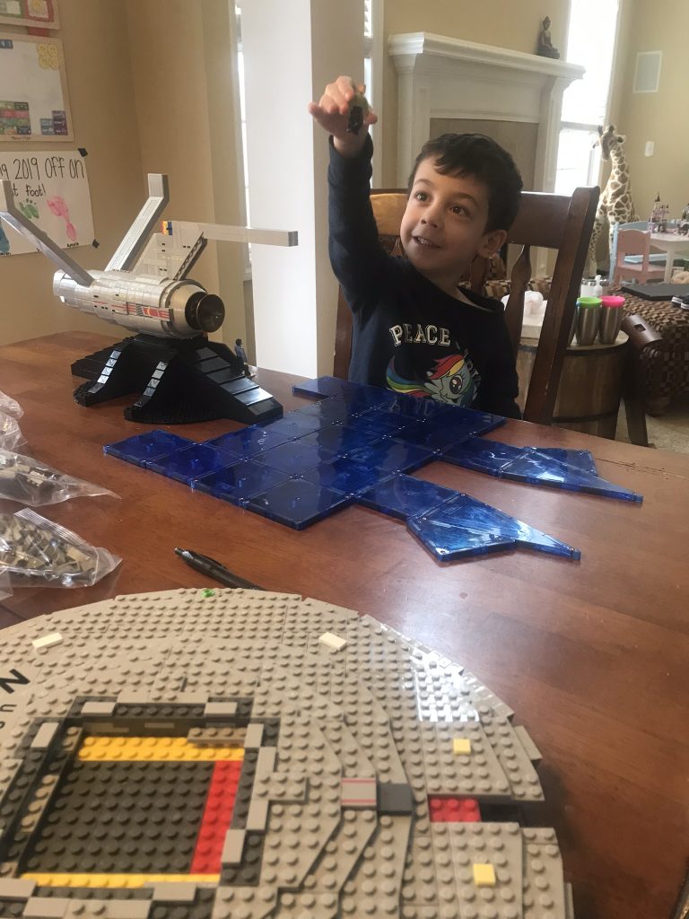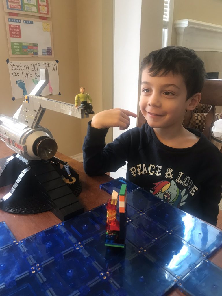 While some parts were still lying around, Steven made this geometric design. He has fantastic spacial relations skills. He’s great an envisioning both 2D and 3D designs.