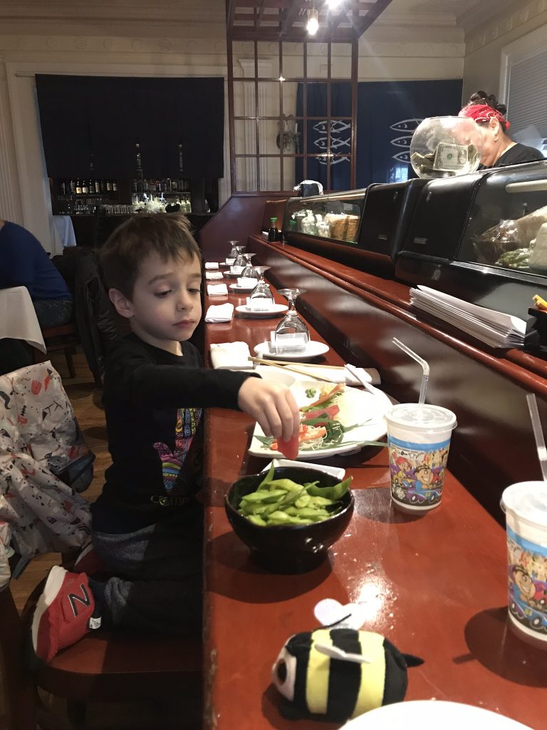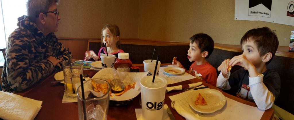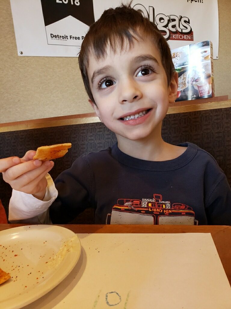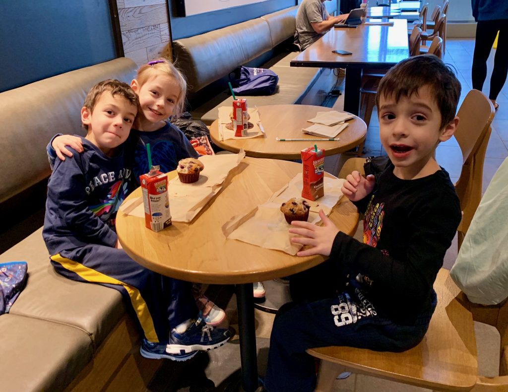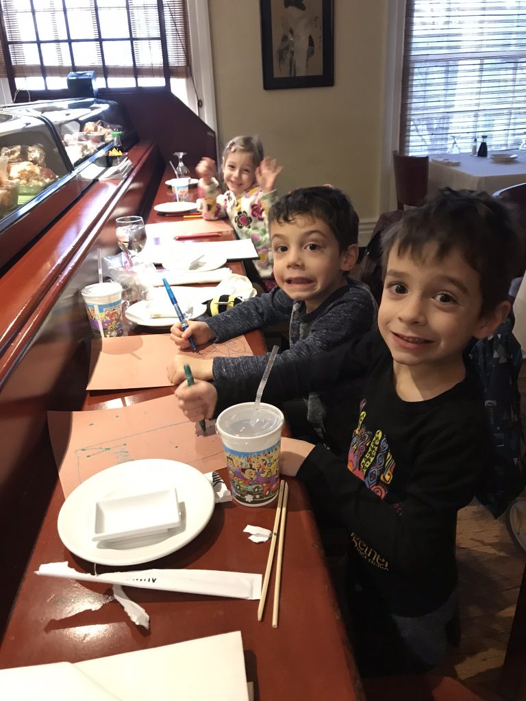 Our adventure today was a playdate for Amaya with my friend Nina and her daughter, Sarah. (Sarah just turned 5 last week and was one of the triplets who had the Chuck E Cheese birthday party.) It’s a big step to start 1:1 play dates so I was relieved to see the boys roll with it. We went to a ceramics place in downtown Northville and painted pottery together. So much fun!