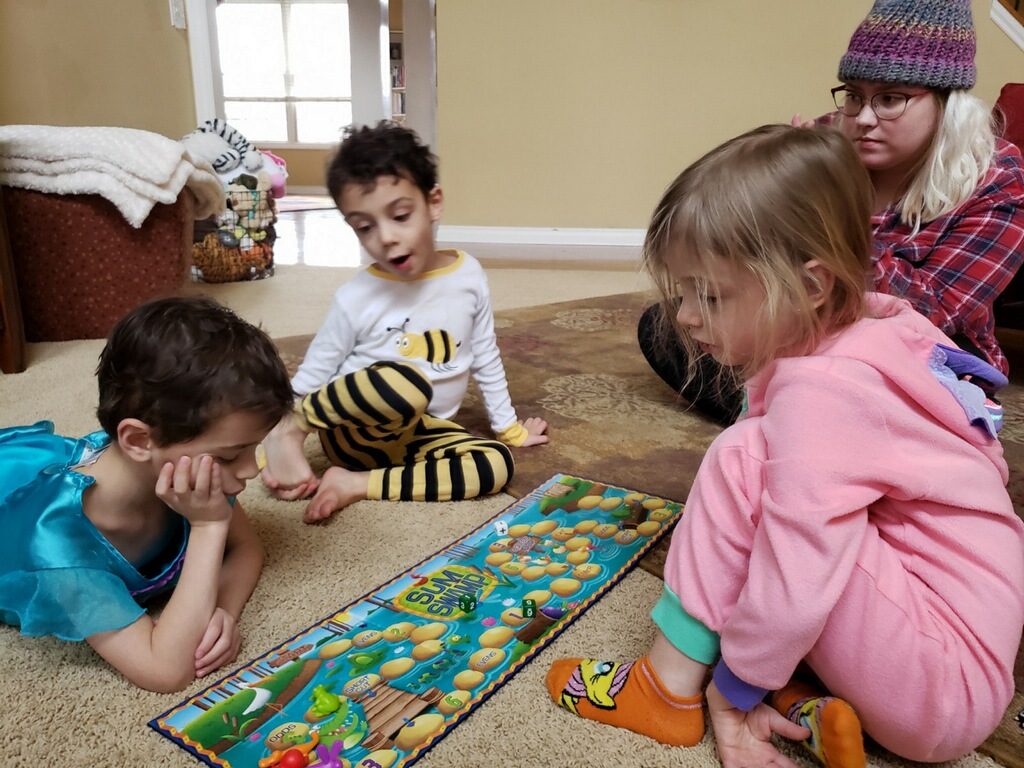Go Fish with Madison. SSA still love games and they’re managing emotions better when they lose. Amaya still has the hardest time when she doesn’t win but she’s getting better.
