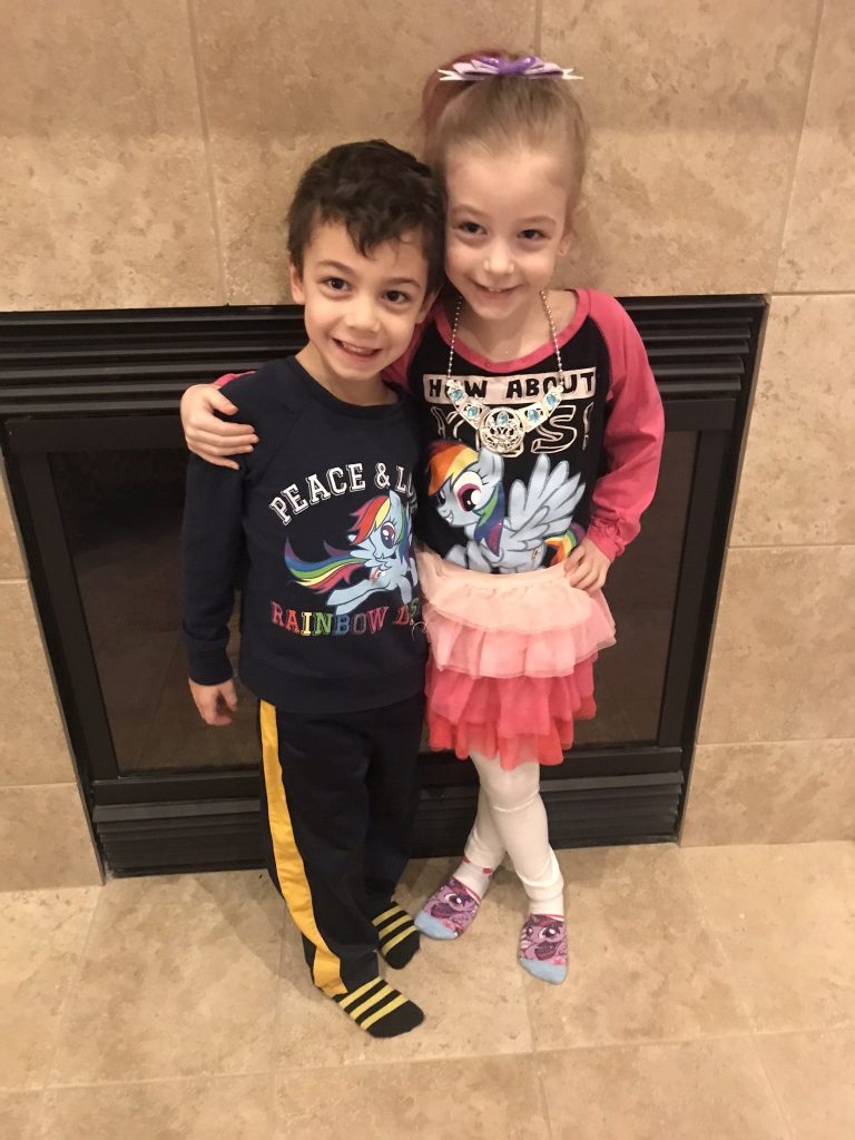 Thursday was Dress Like Your Favorite Character day at school. Here they are with Ms. Jena. We’ve been dressing up all month and I was kind of done with it so we went with their character themed sweatshirts – Twilight Sparkle, Ryder and Marshall.