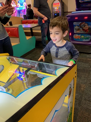 These photos take us back to last week but I can’t pass up the opportunity to share them. Nana and SSA at Chuck E Cheese, while she was holding down the fort for Team Cline! I love these!