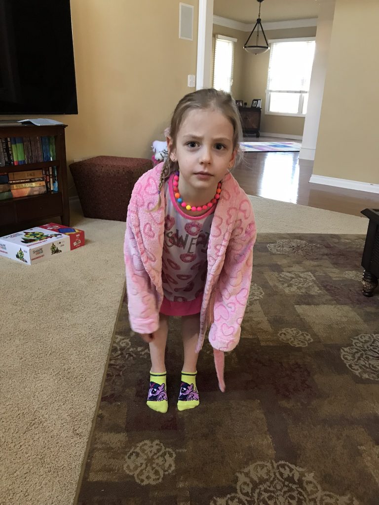 This child loves to pose. She’s also in love with this doughnut (donut?) nightgown from Charlie.