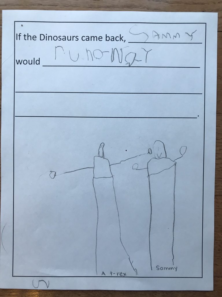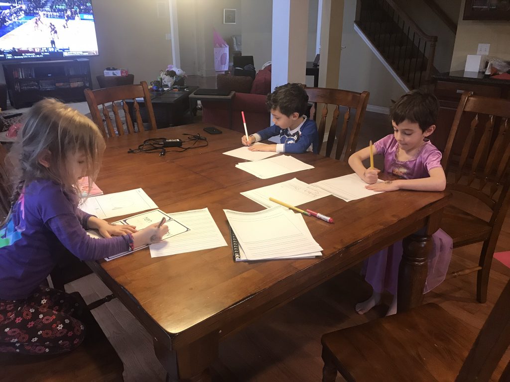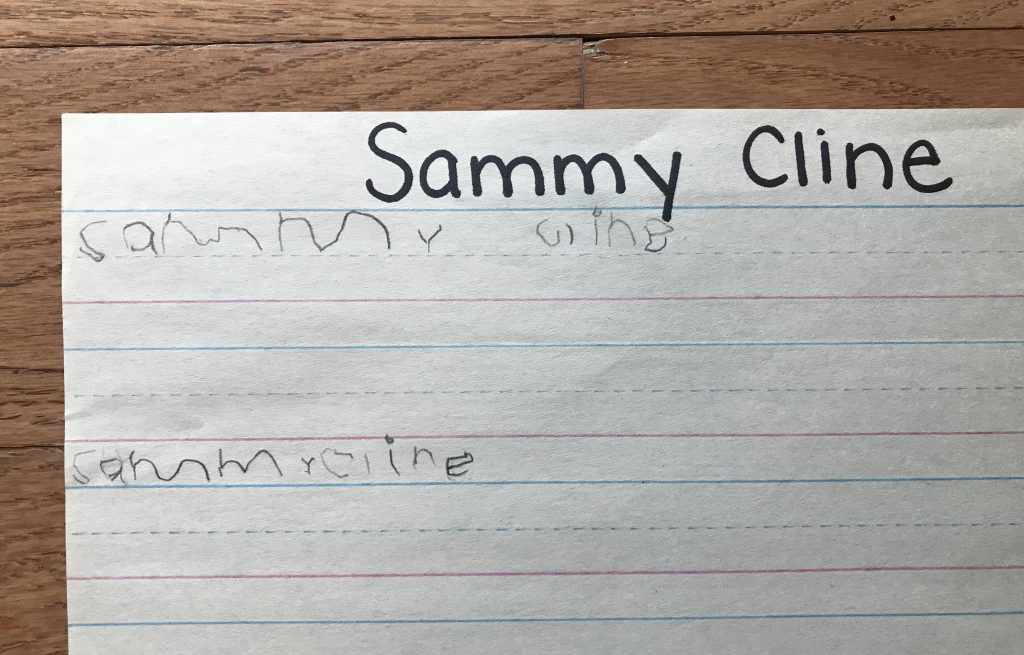 Practicing our writing. (You can see where the pencil grip will be helpful for Sammy.)