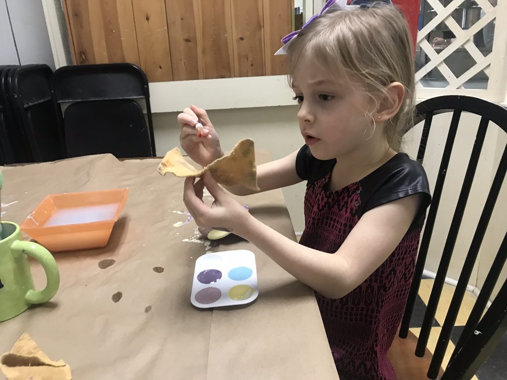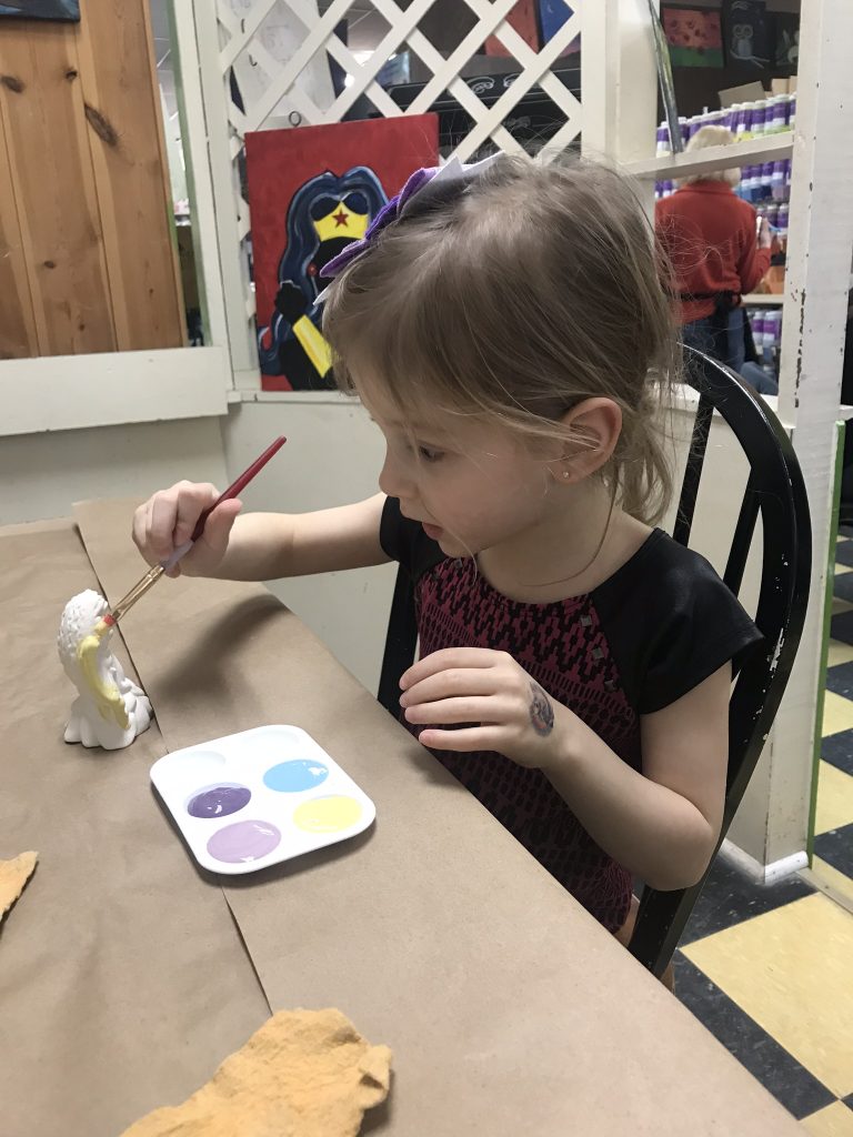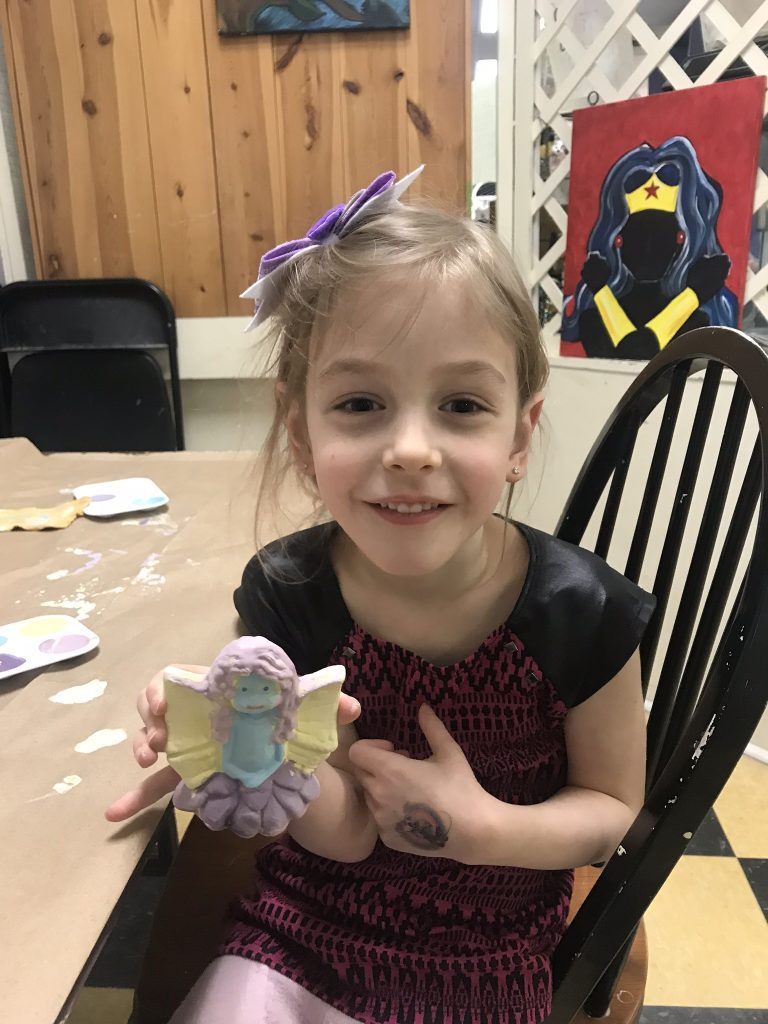 Amaya really got the hang of it – three coats per color, lighter colors first, wipe the brush dry between colors. She picked a fairy to paint.