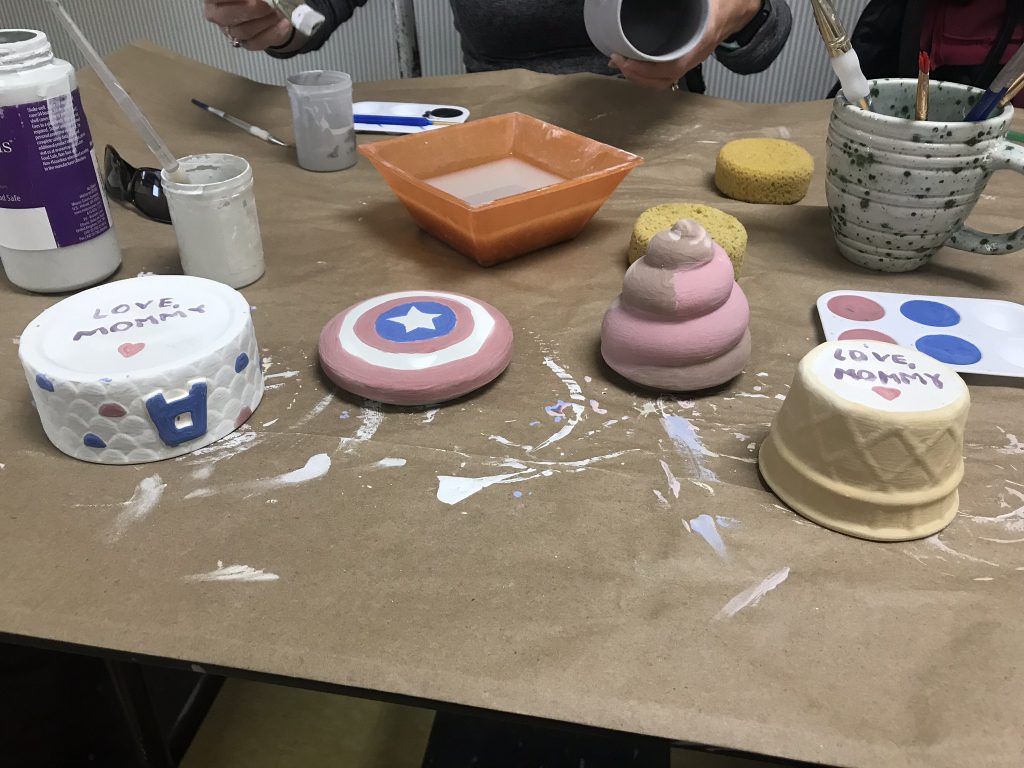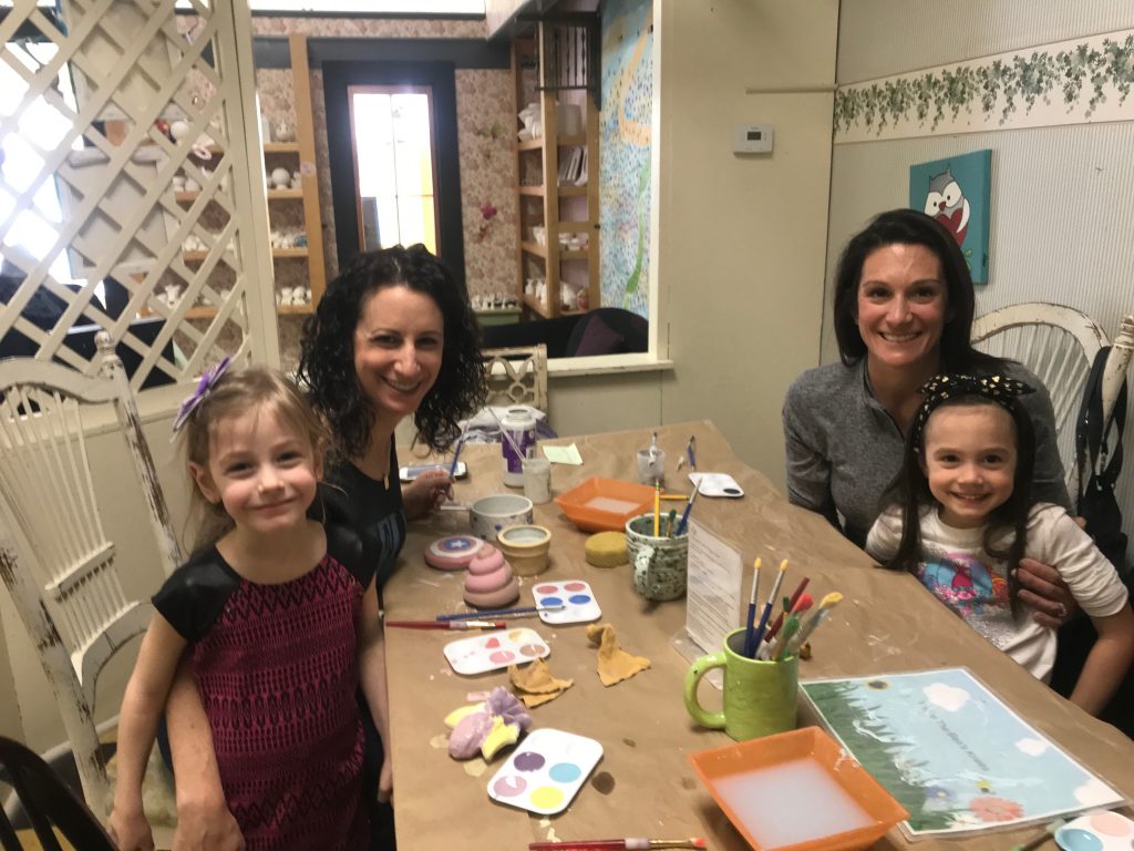 The whole gang! Nina painted a beer stein for her husband for their anniversary and I painted pieces for Steven and Sammy.
