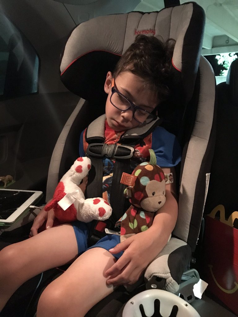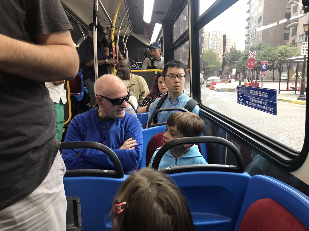 Steven panicked at first and insisted on a seat. Fortunately, another passenger kindly gave up her seat for him. Once we got going he was totally fine and even made friends with the lady sitting next to him.