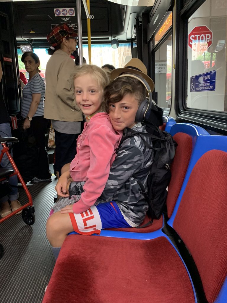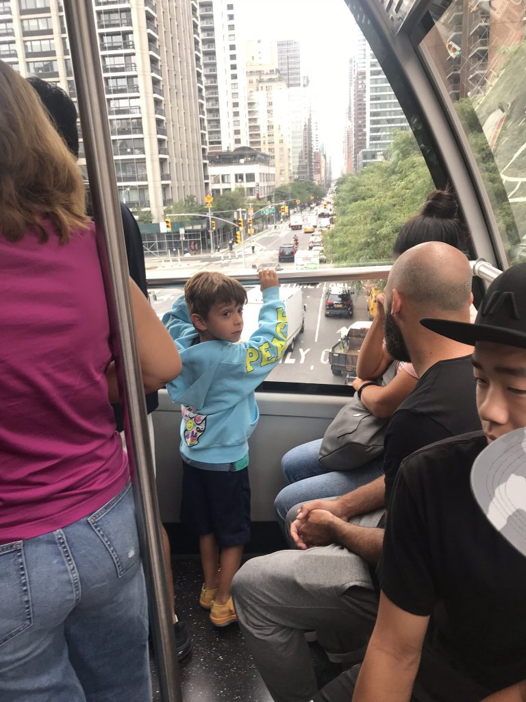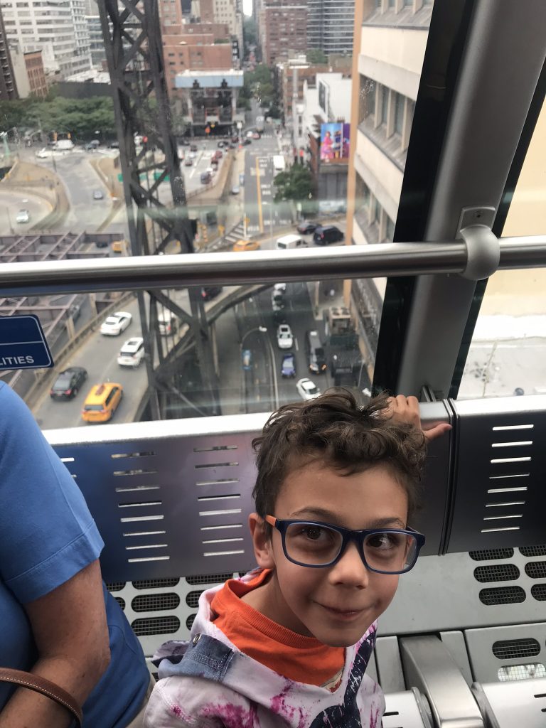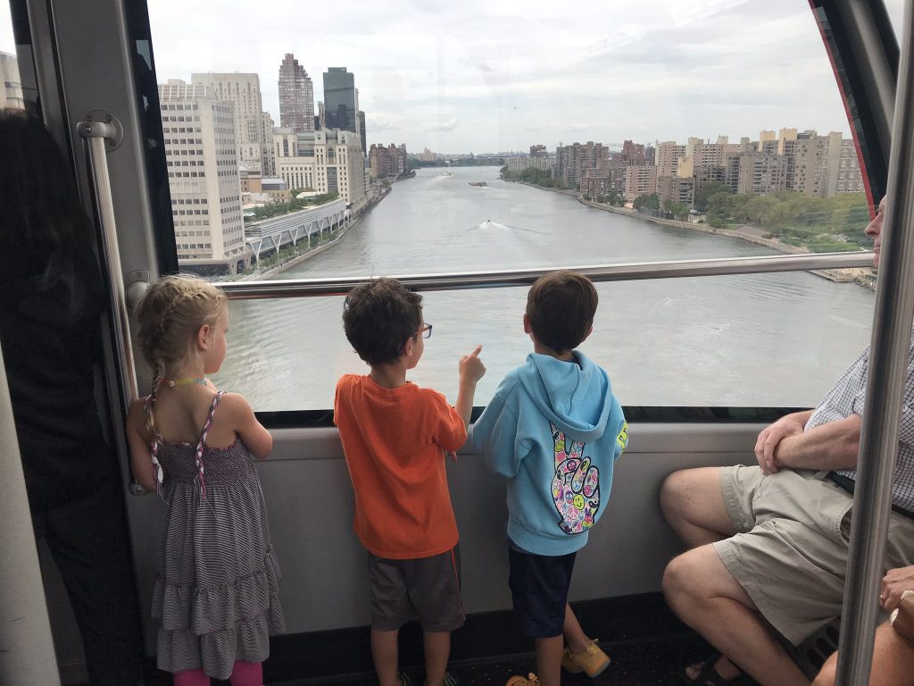 On Friday Aunt Sara didn’t have to work and we took a break from the beach to head into Manhattan. This time, our plan was to take the tram to Roosevelt Island. I’d sent the kids a video from a tram in Norway and it peaked their interest so this was a relatively easy way to let them experience a tram ride.