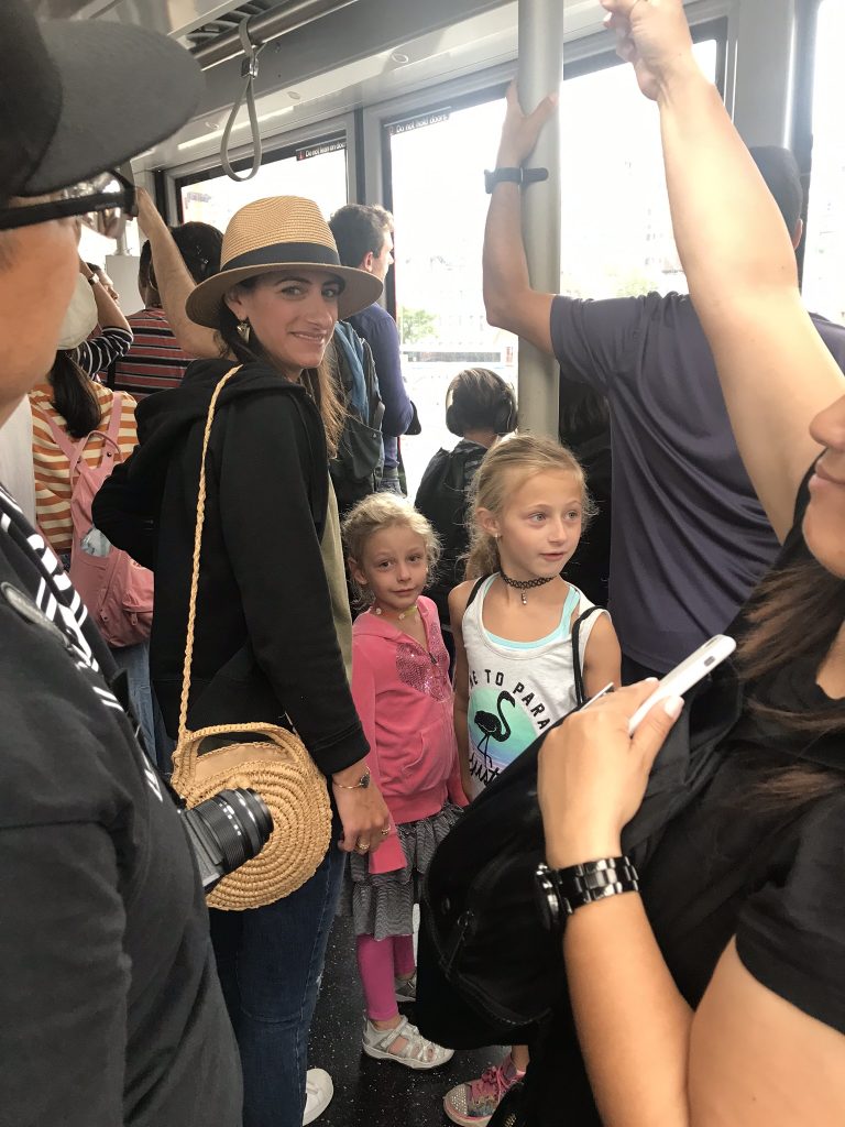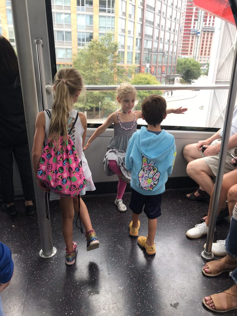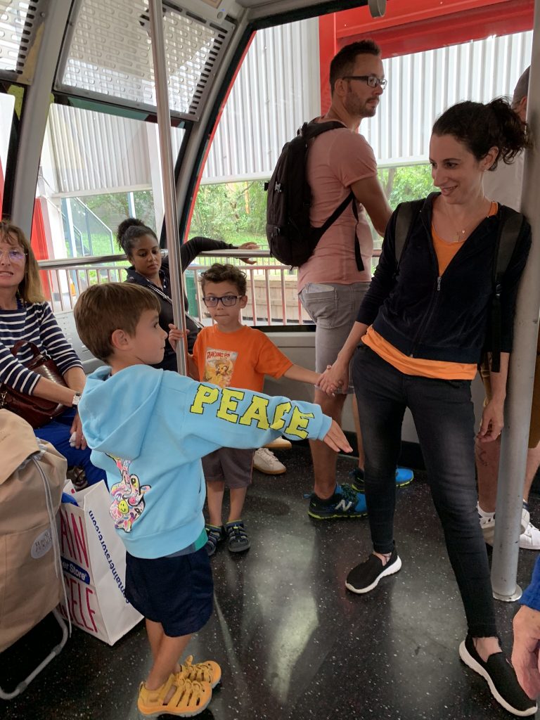 Riding the tram back, Steven was ready to stand and Sammy and Amaya tested their balance.