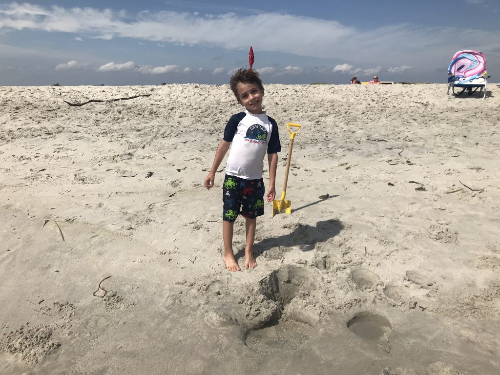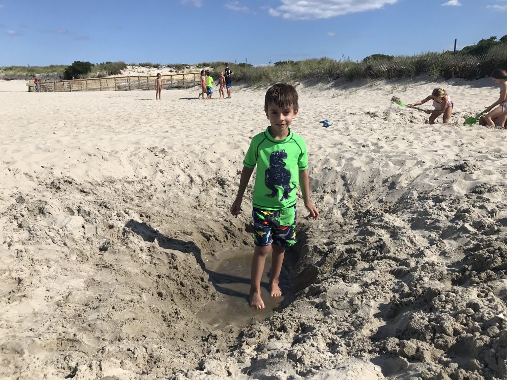 A huge source of beach fun is digging huuuuuuge holes. This was the first of many throughout the week.