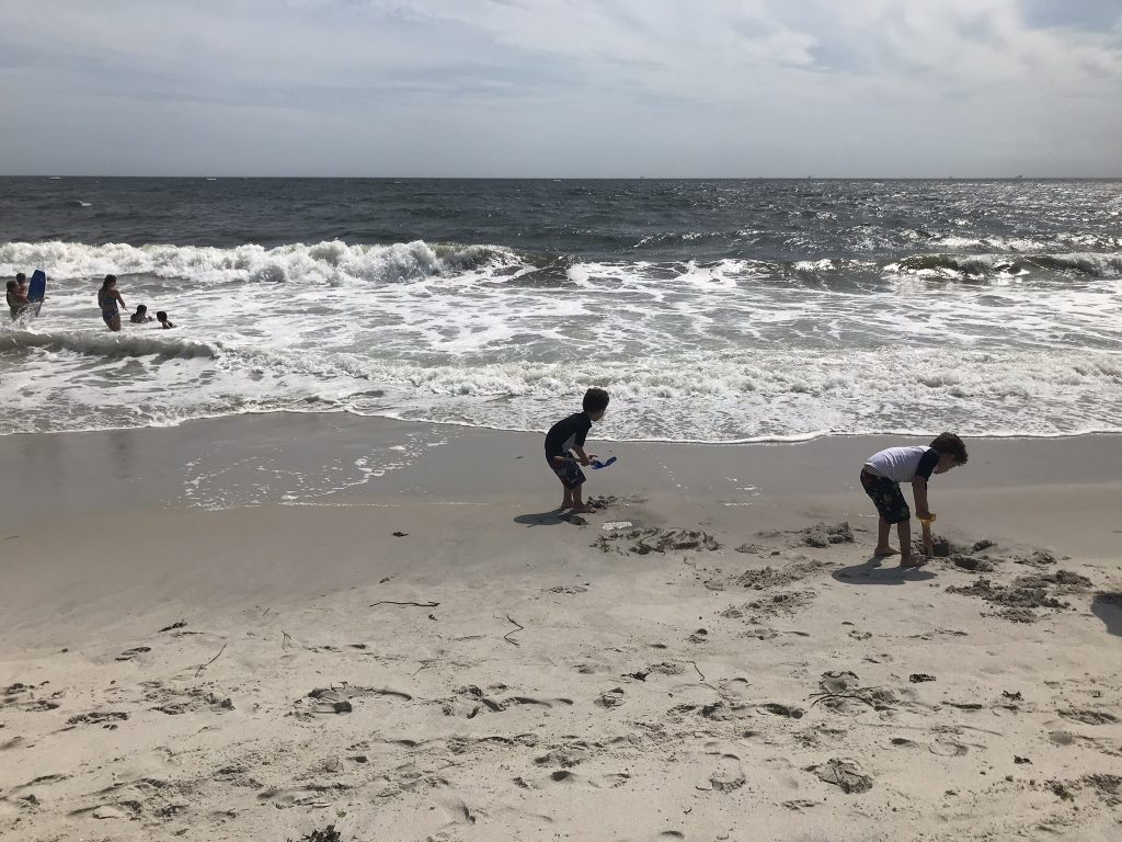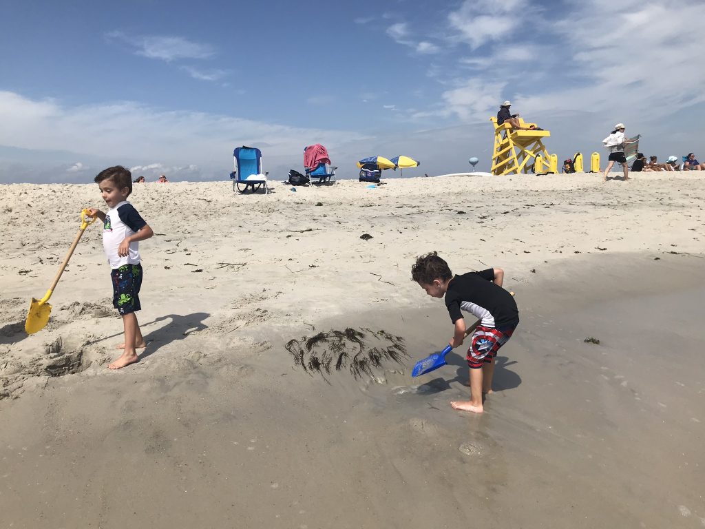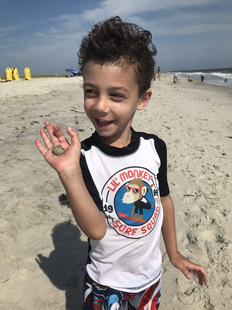 Wednesday’s ocean time involved a lot of digging for sand crabs. Steven even found (a dead) one. He was thrilled.