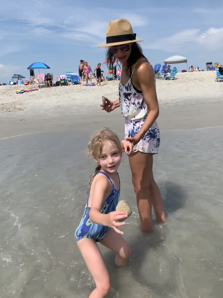 The water was calm again and there were shells everywhere. Nana took one for the team and got wet, wet, wet helping everyone find shells.