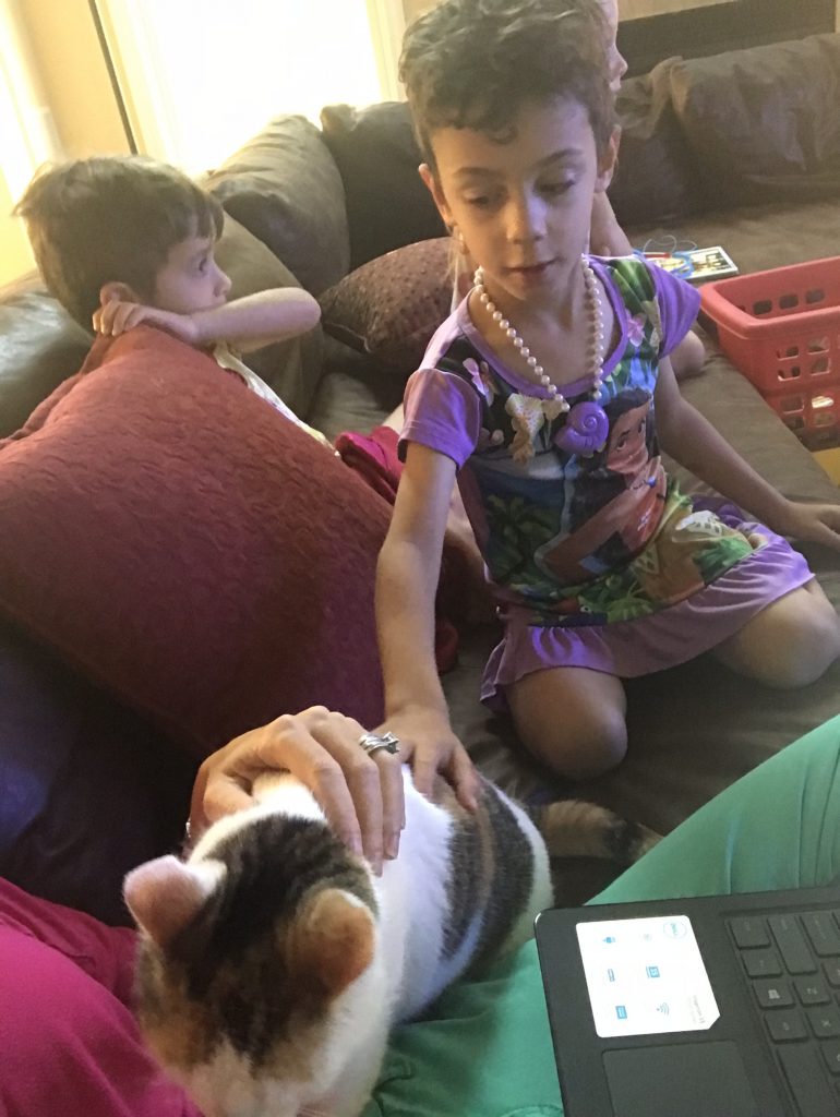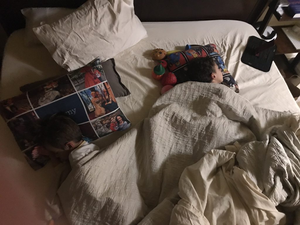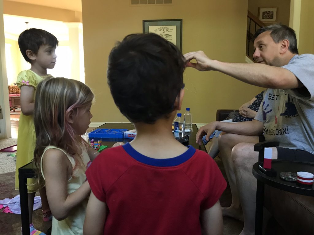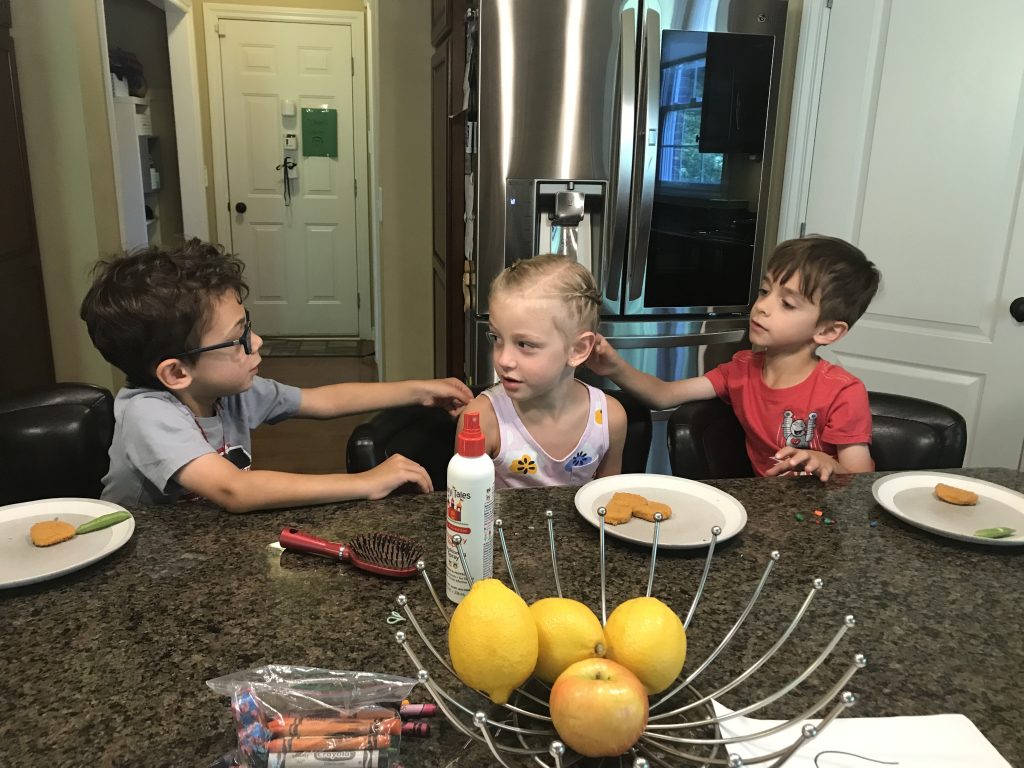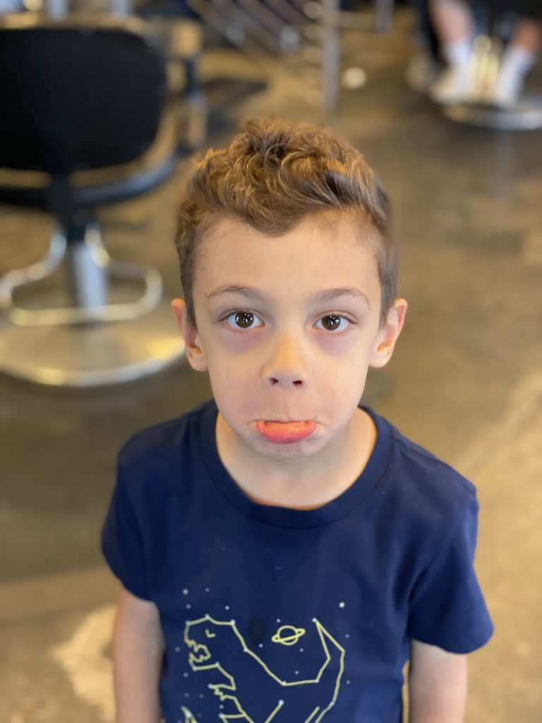 Poor Steven was totally worked up and ended up with a nose bleed. I’m so glad Sammy was settled enough for me to disappear with Steven for a bit. Eventually he was calm enough to get a haircut sitting on my lap, scissors only – no clippers.