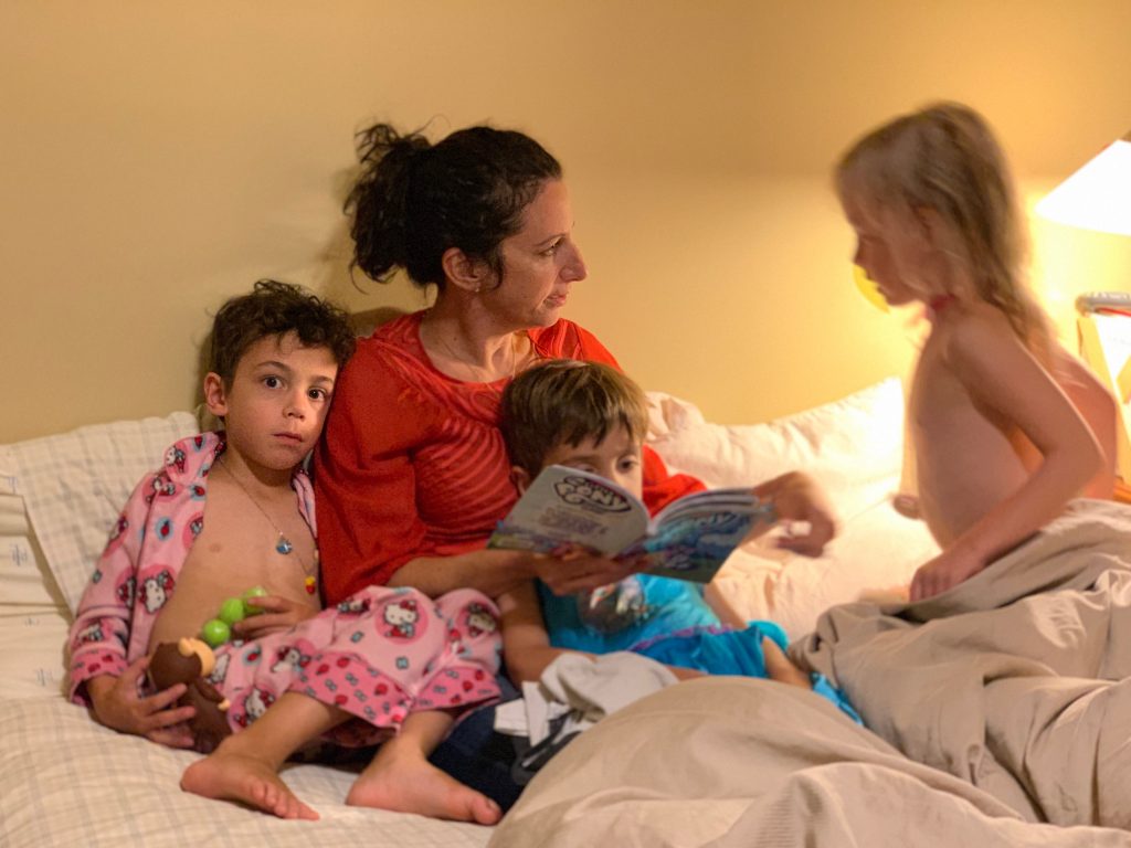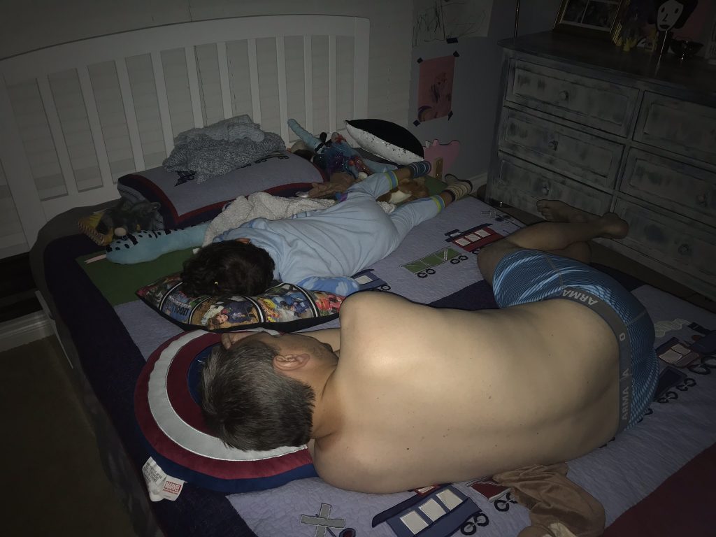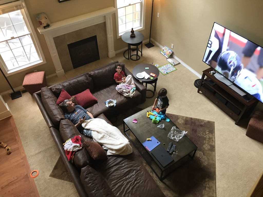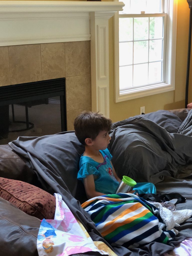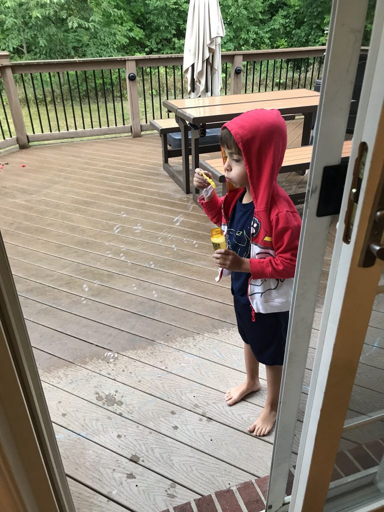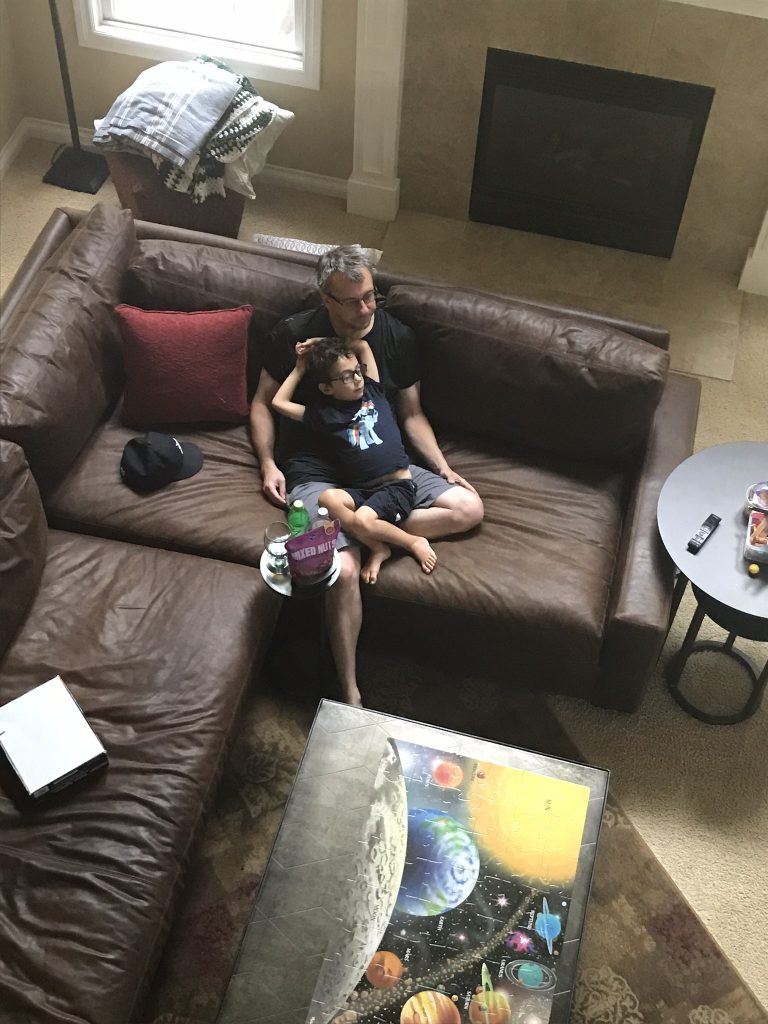 Poor Steven was totally worked up and ended up with a nose bleed. I’m so glad Sammy was settled enough for me to disappear with Steven for a bit. Eventually he was calm enough to get a haircut sitting on my lap, scissors only – no clippers.