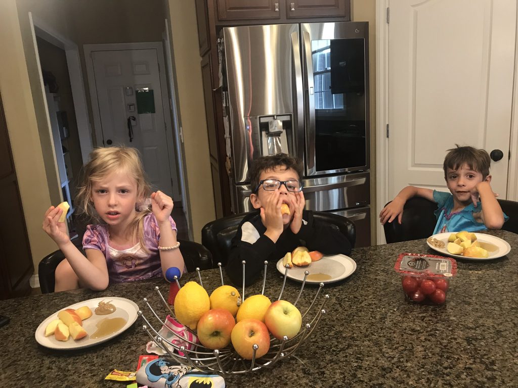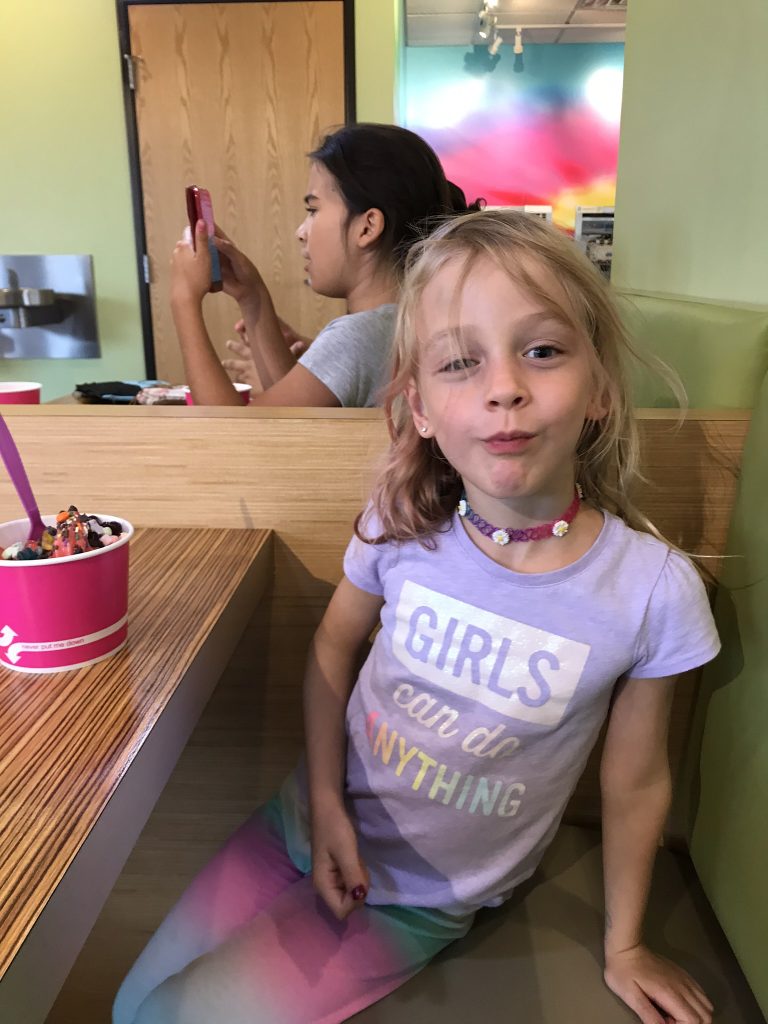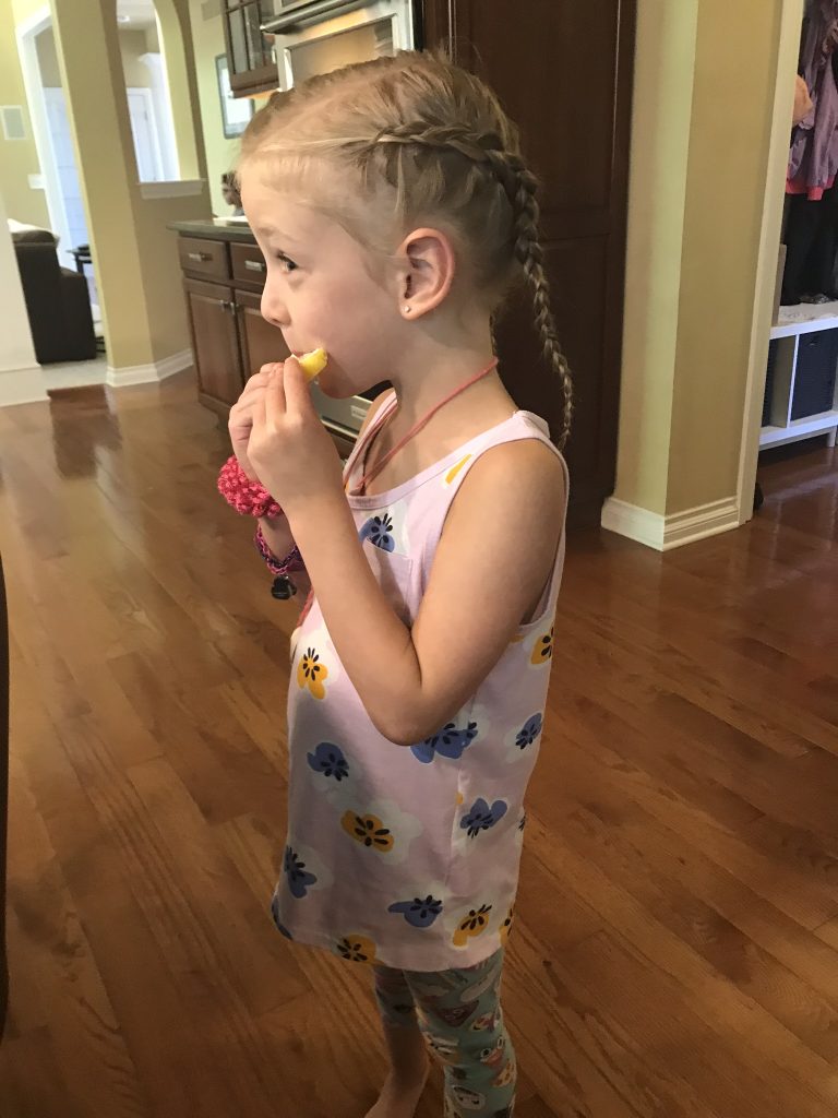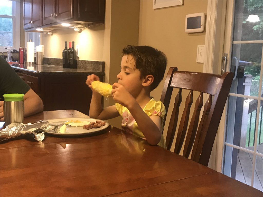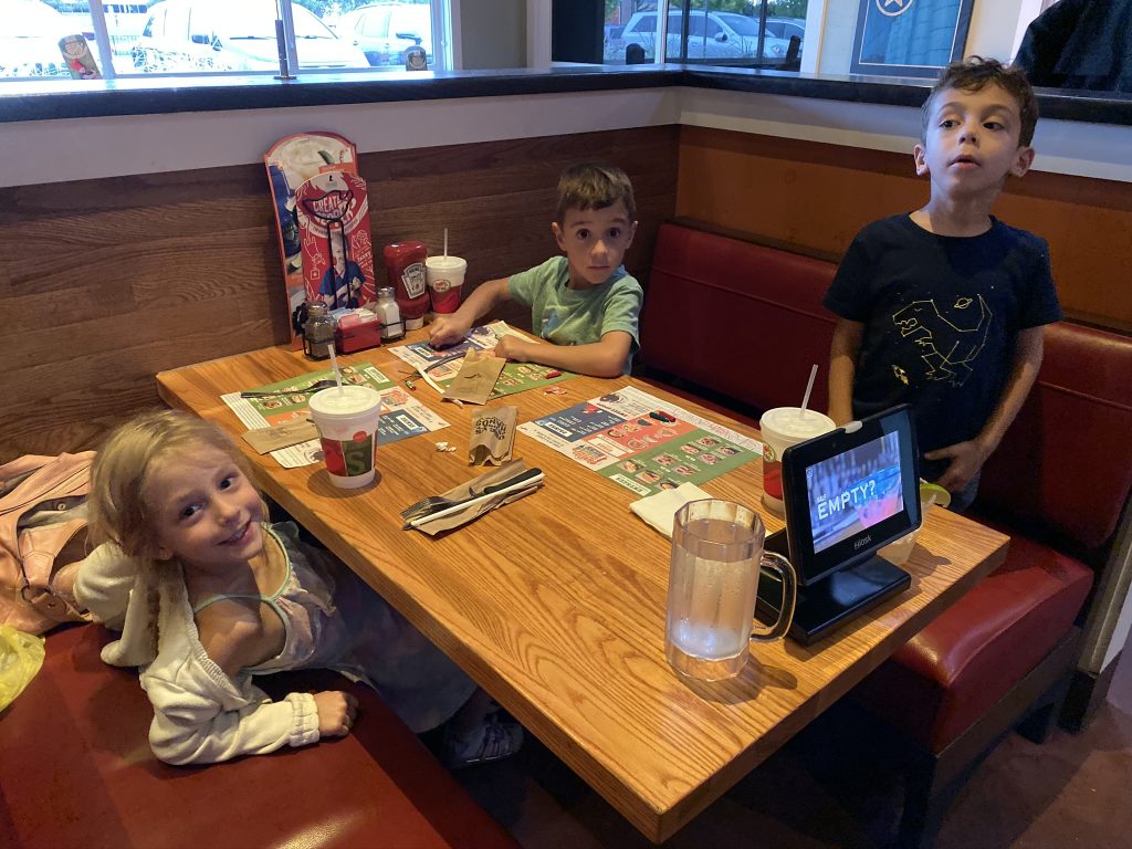 We wrapped up the day with a late dinner at Chili’s, at Steven’s request. We made it through with just four trips to the bathroom. Sometimes I’m amazed at what these kids can put back. Sammy at 2 kids cheeseburgers, an ear of corn, one of Amaya’s chicken tenders and a serving of mandarin oranges. Plus milk! I wonder if a growth spurt is coming.